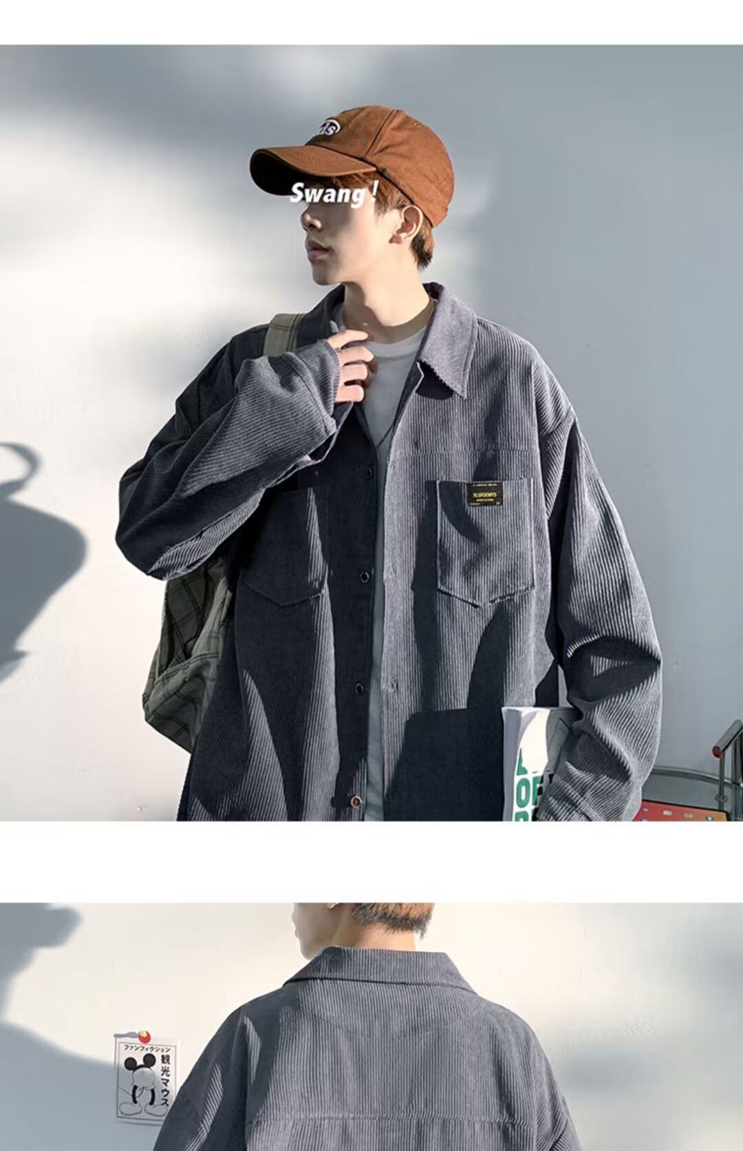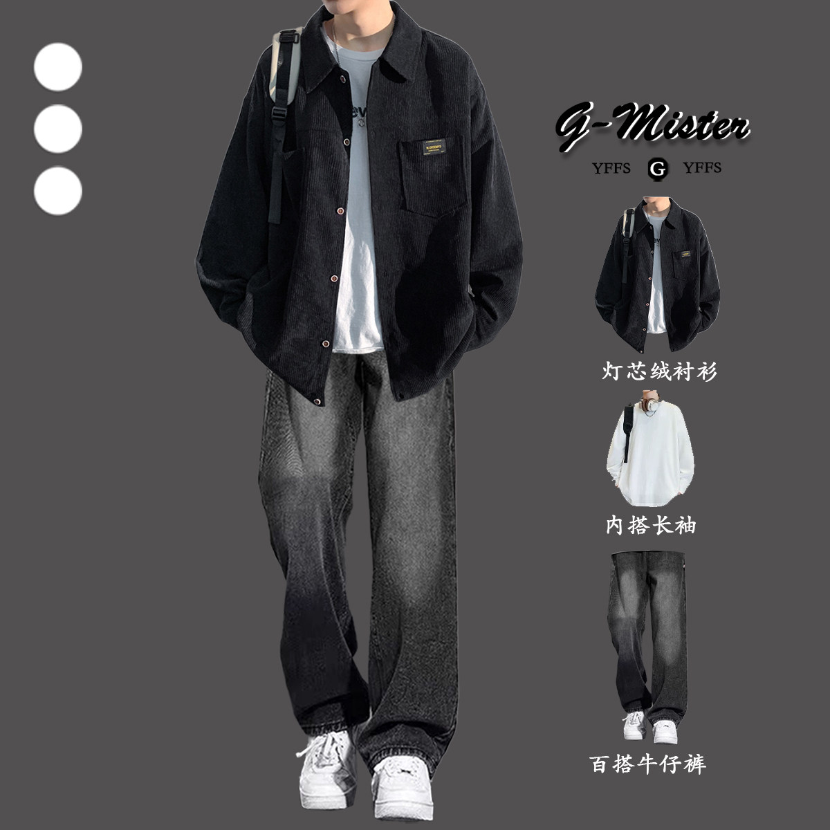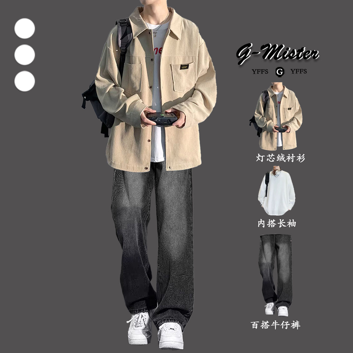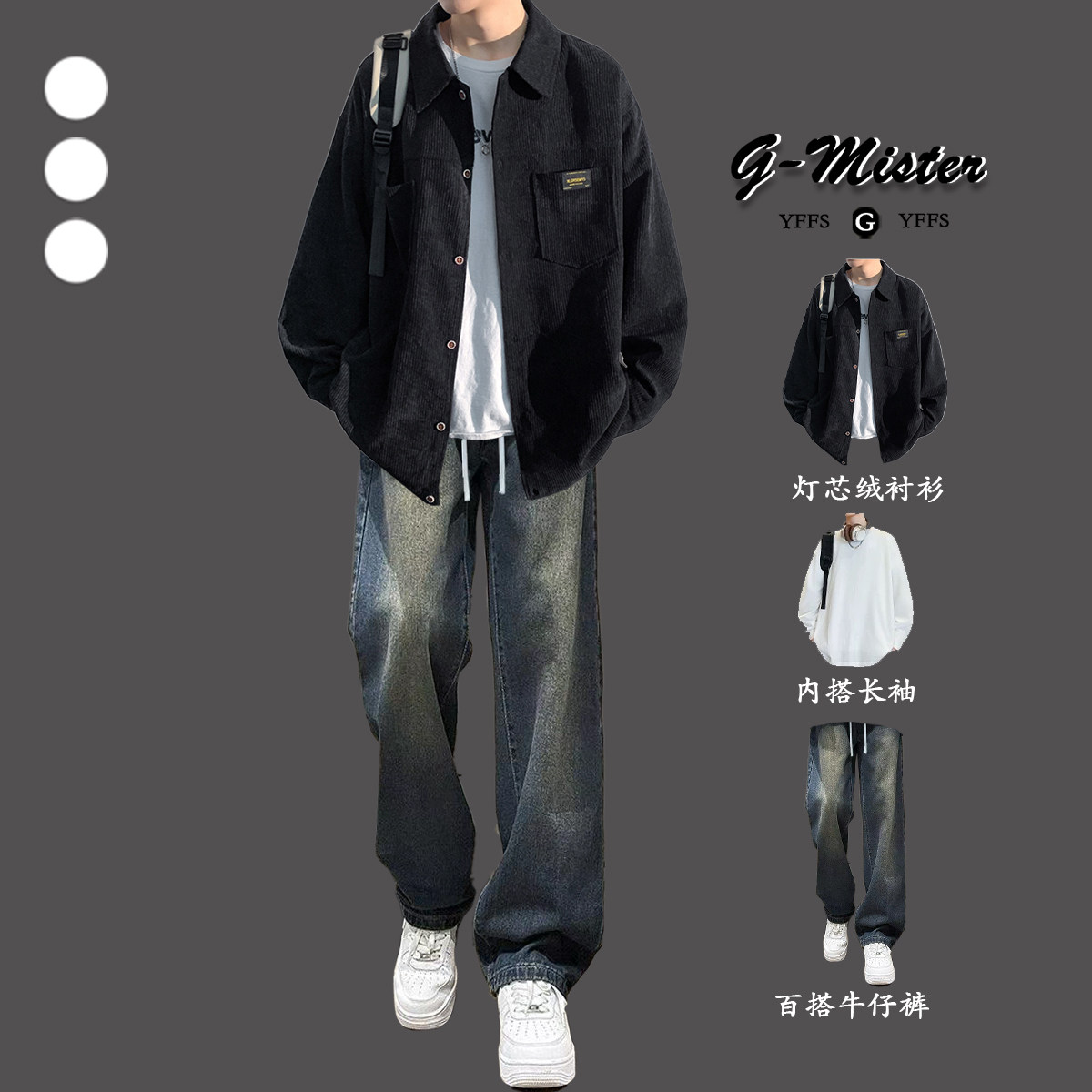 Playboy Corduroy Fleece-Lined Long-Sleeved Shirt Men's Autumn and Winter Suit, Cool and Stylish Casual Outfit Set