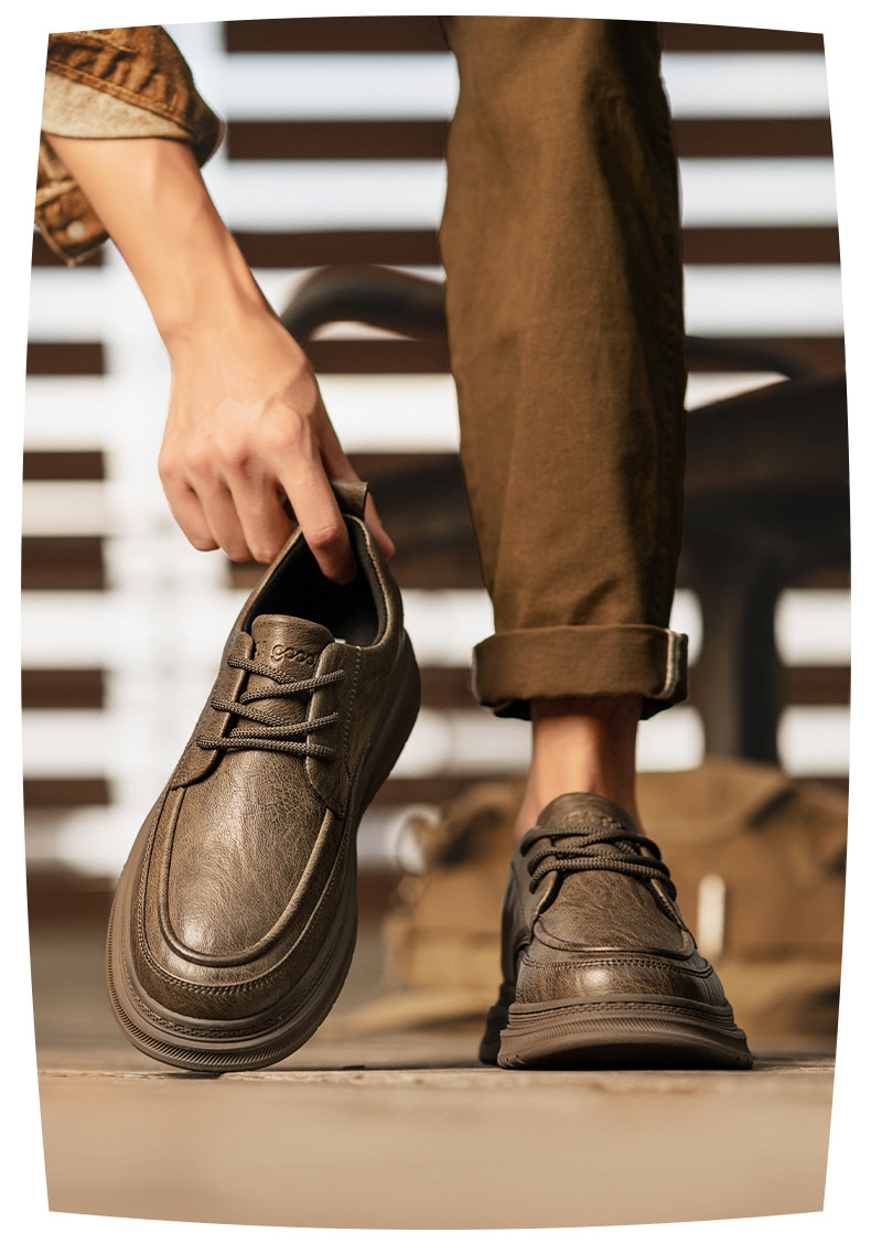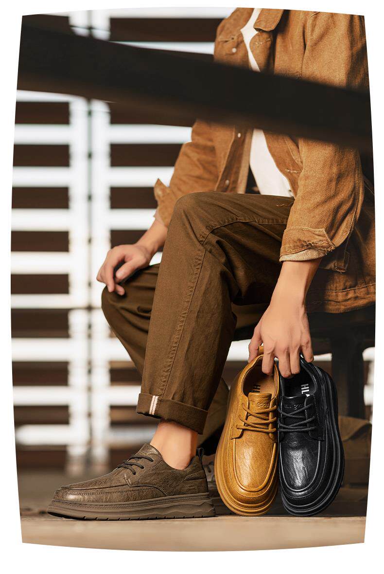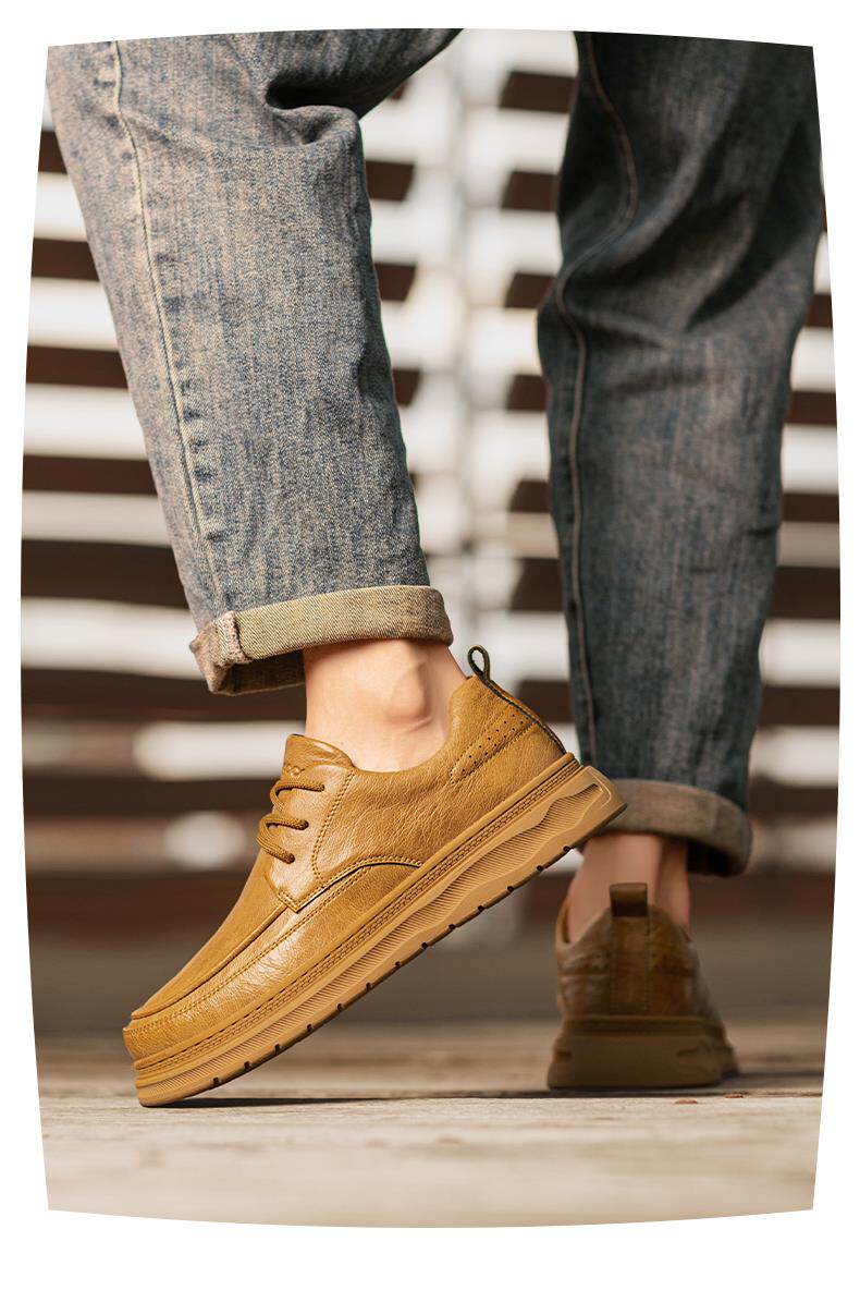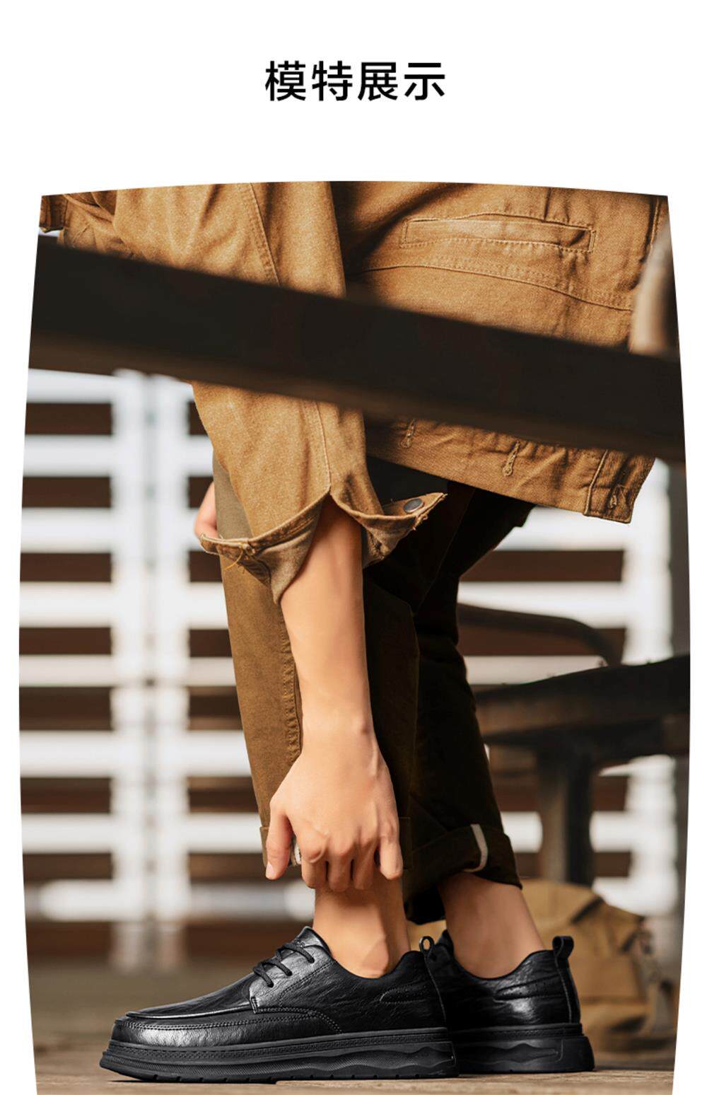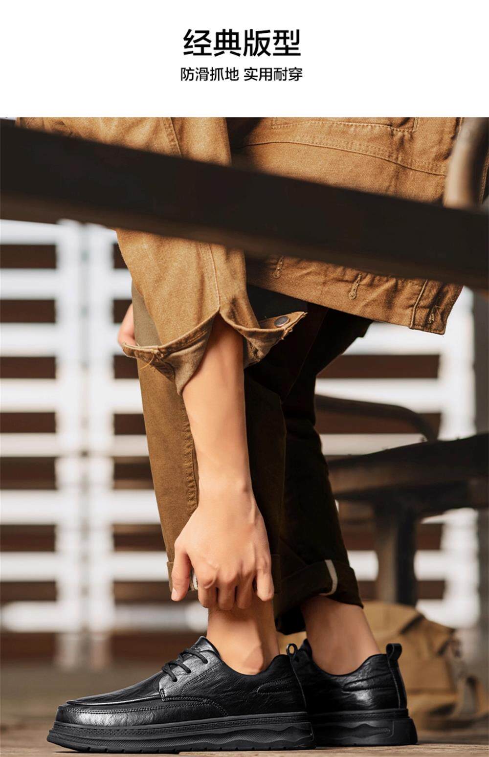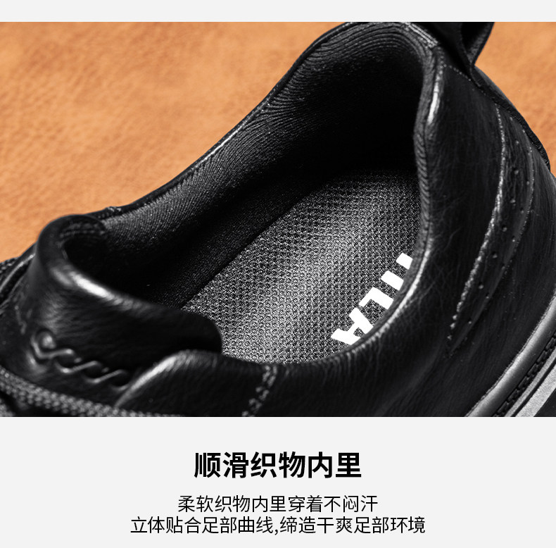 Heilan Home Men's Shoes Spring and Autumn Leather Casual Shoes Black Soft Sole Business Shoes Men's British Style Low-Top Dad Shoes