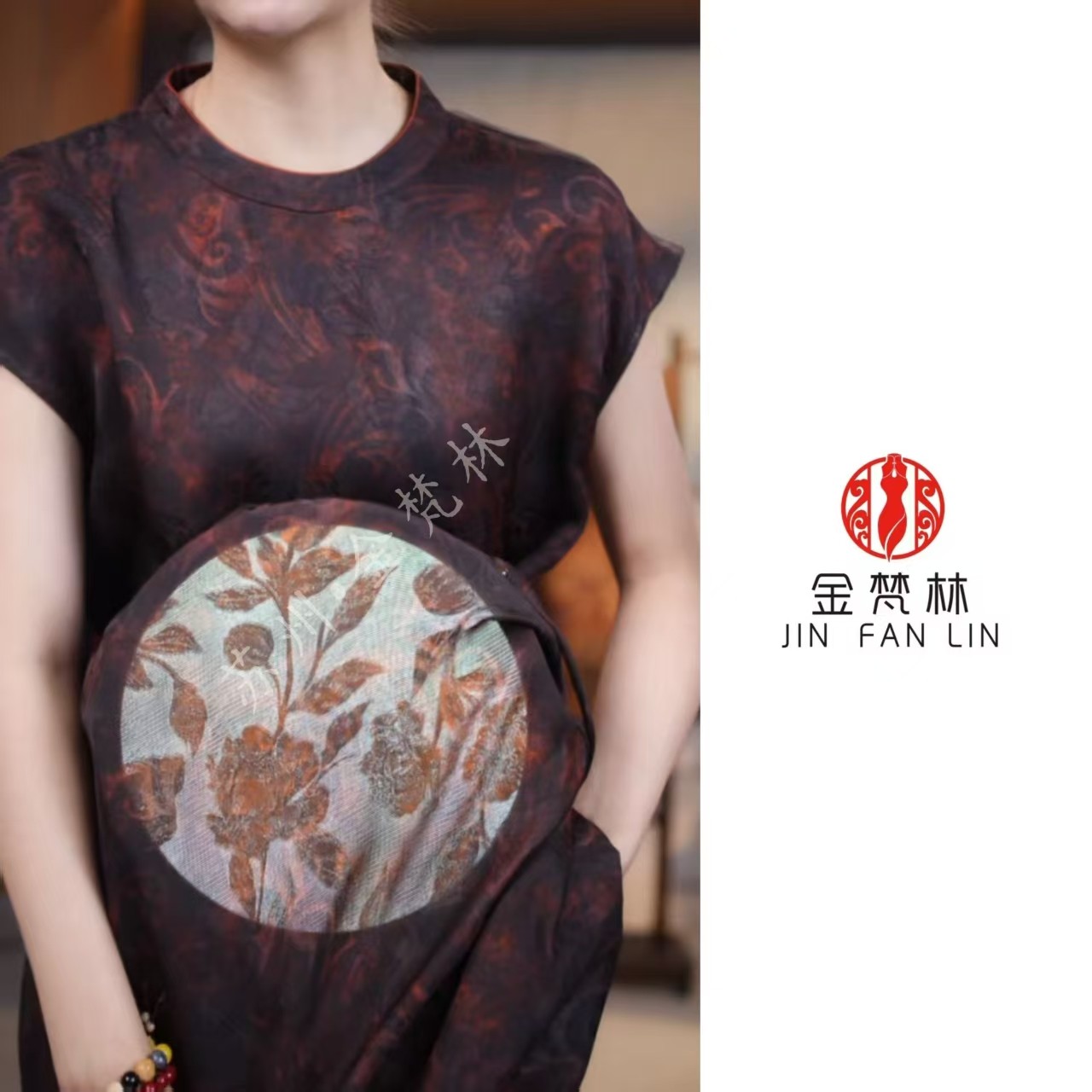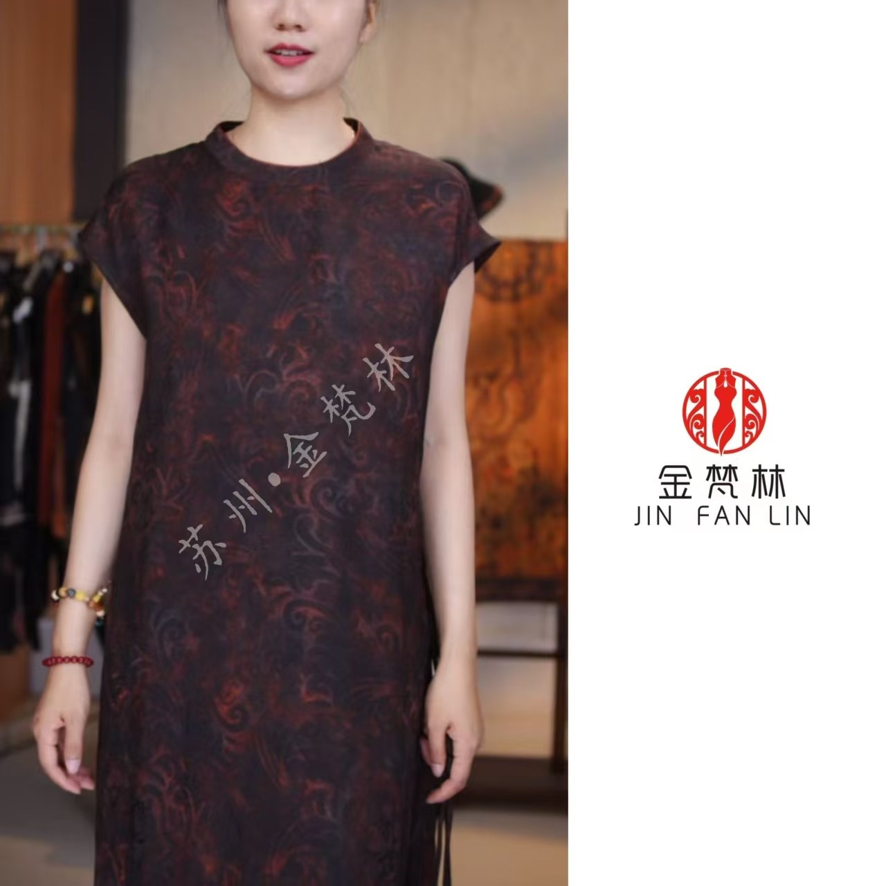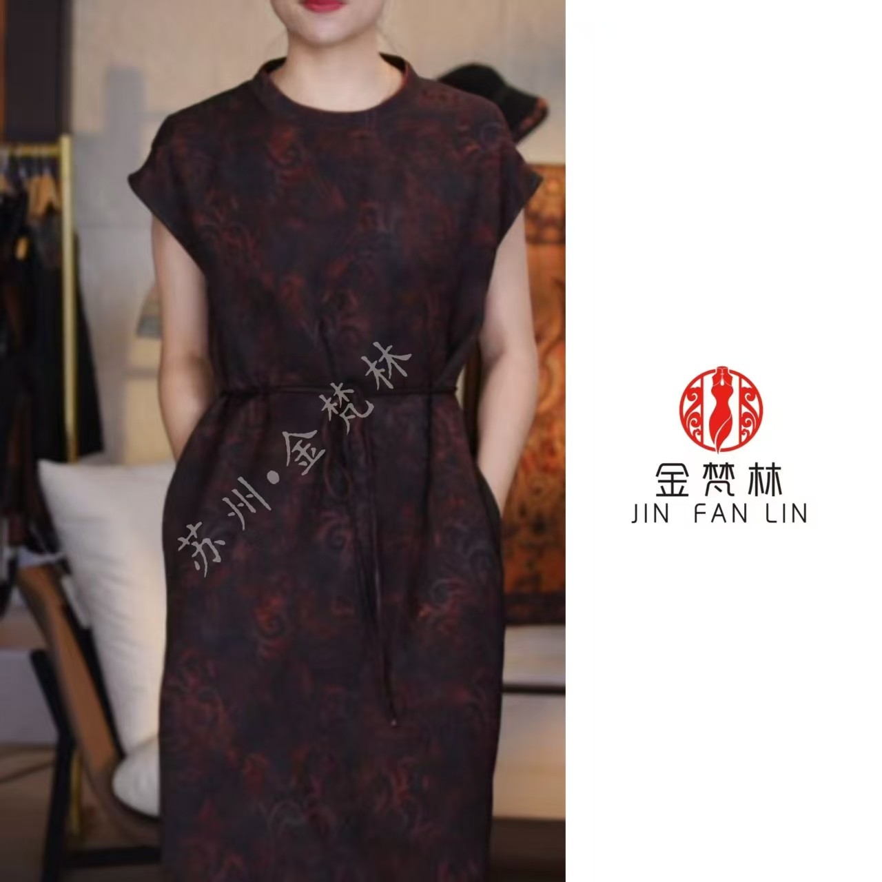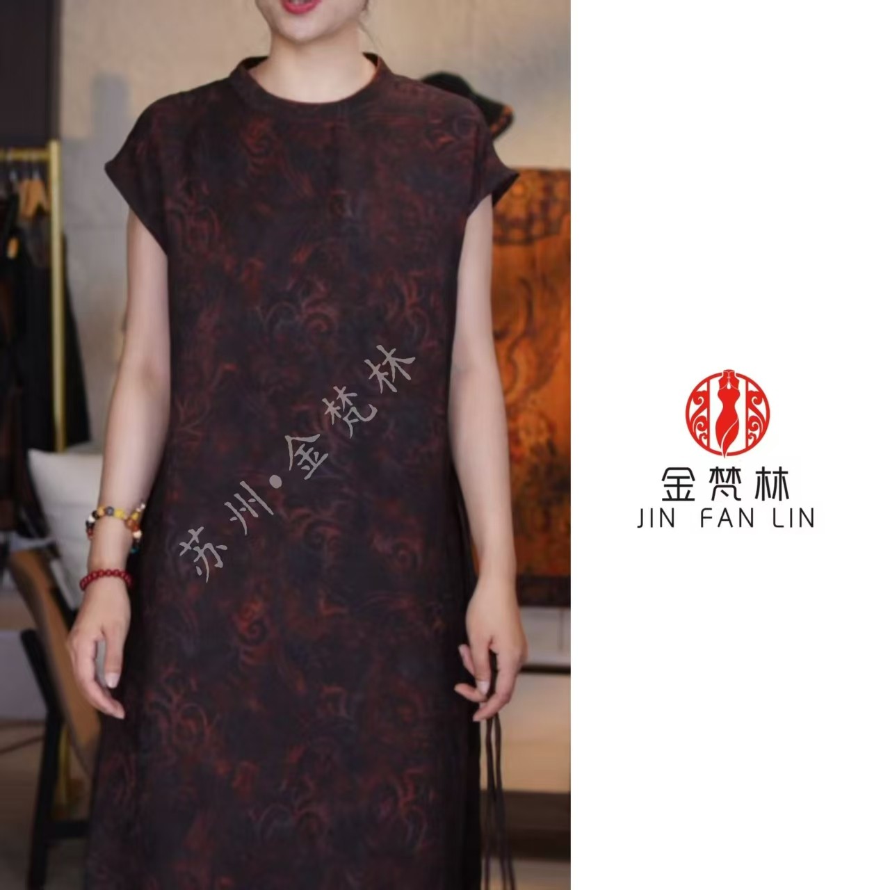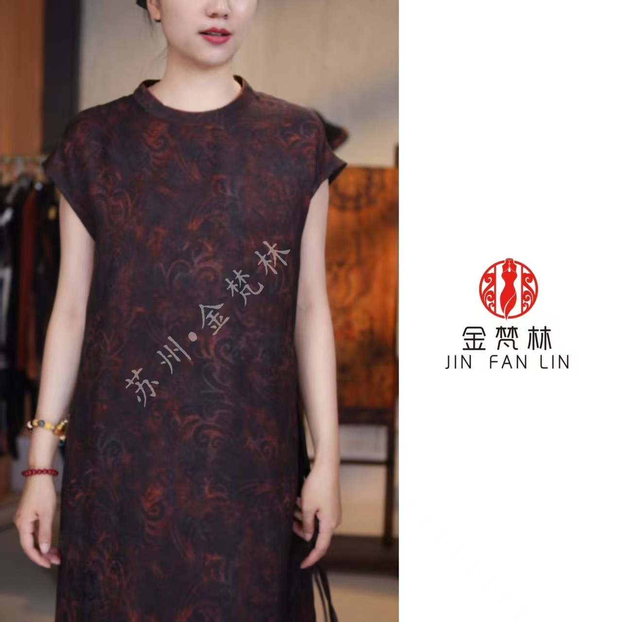 【Canghai Mingzhu】High-End Traditional Style Antique Silk Cloud Yarn New Chinese Style National Style Twisted Lace Stand-Up Collar Small Flutter Sleeve Dress