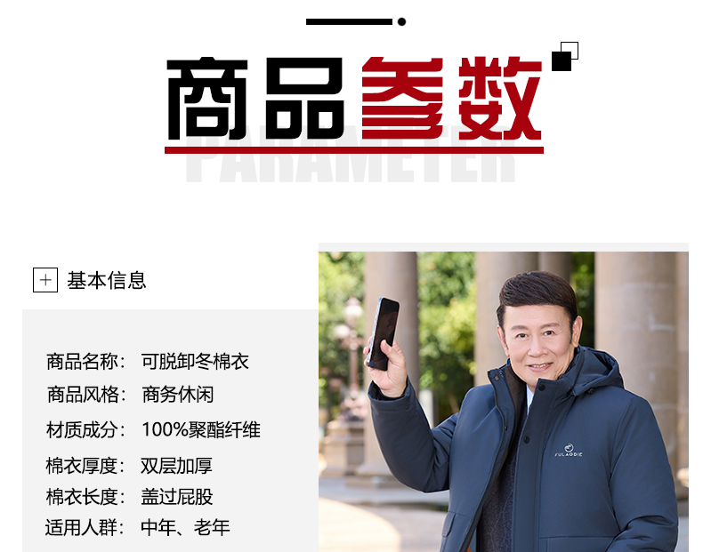 Men's Cotton-Padded Jacket for Middle-Aged and Elderly People, Winter Coat with Extra Fleece and Thickened Cotton, New Style Cotton Clothing for Men, Grandpa, and Dad, Detachable