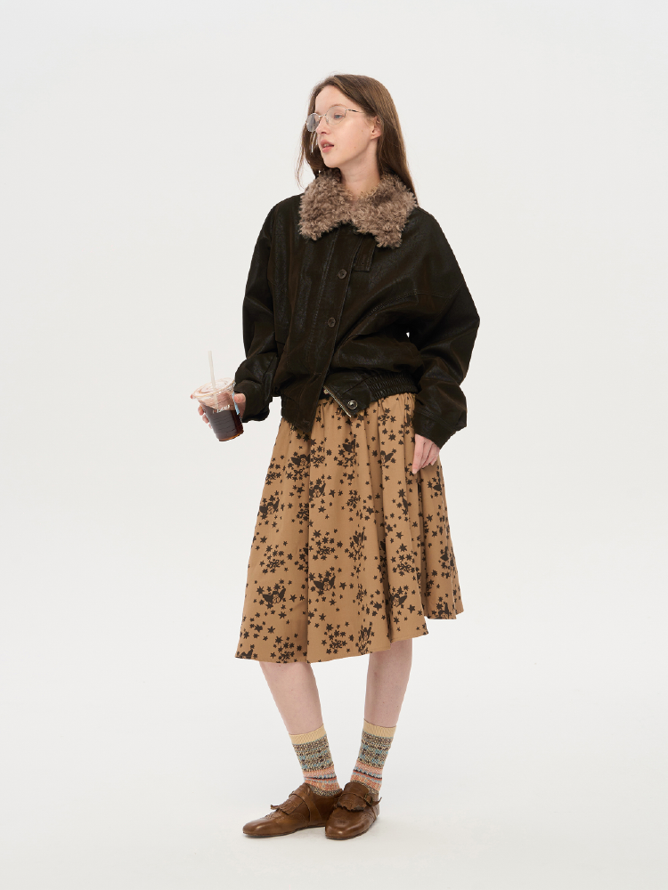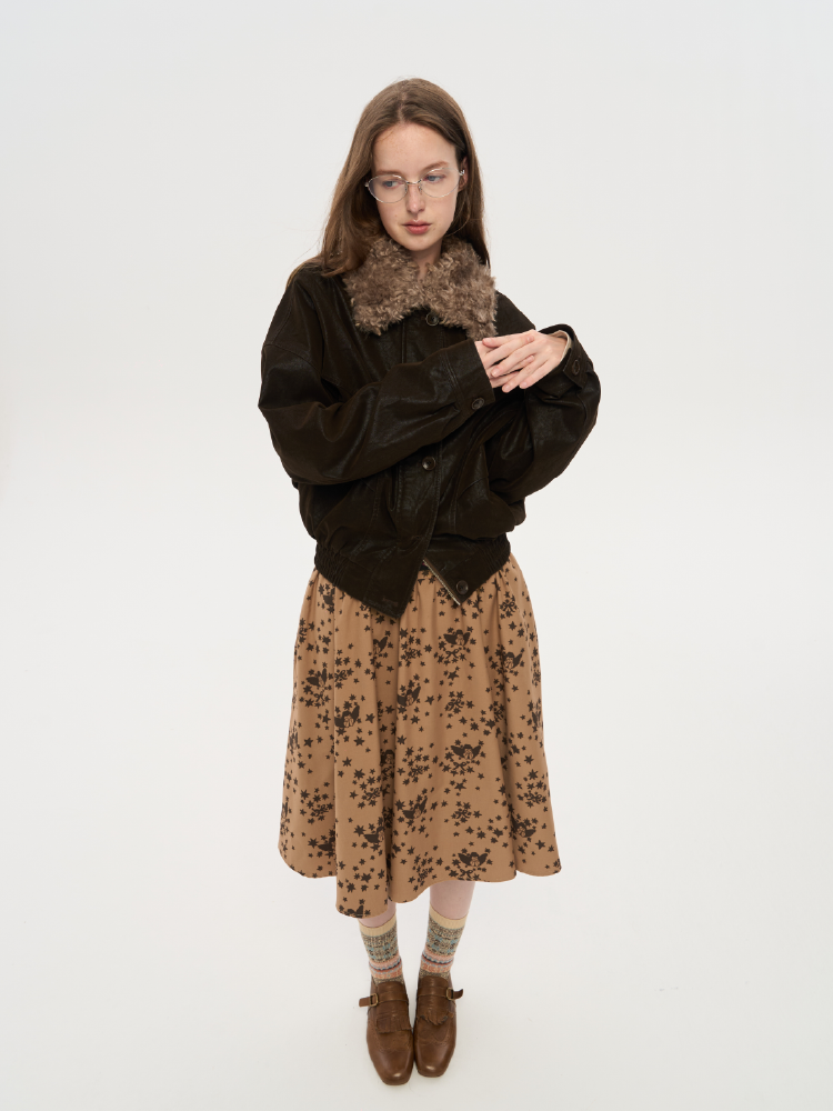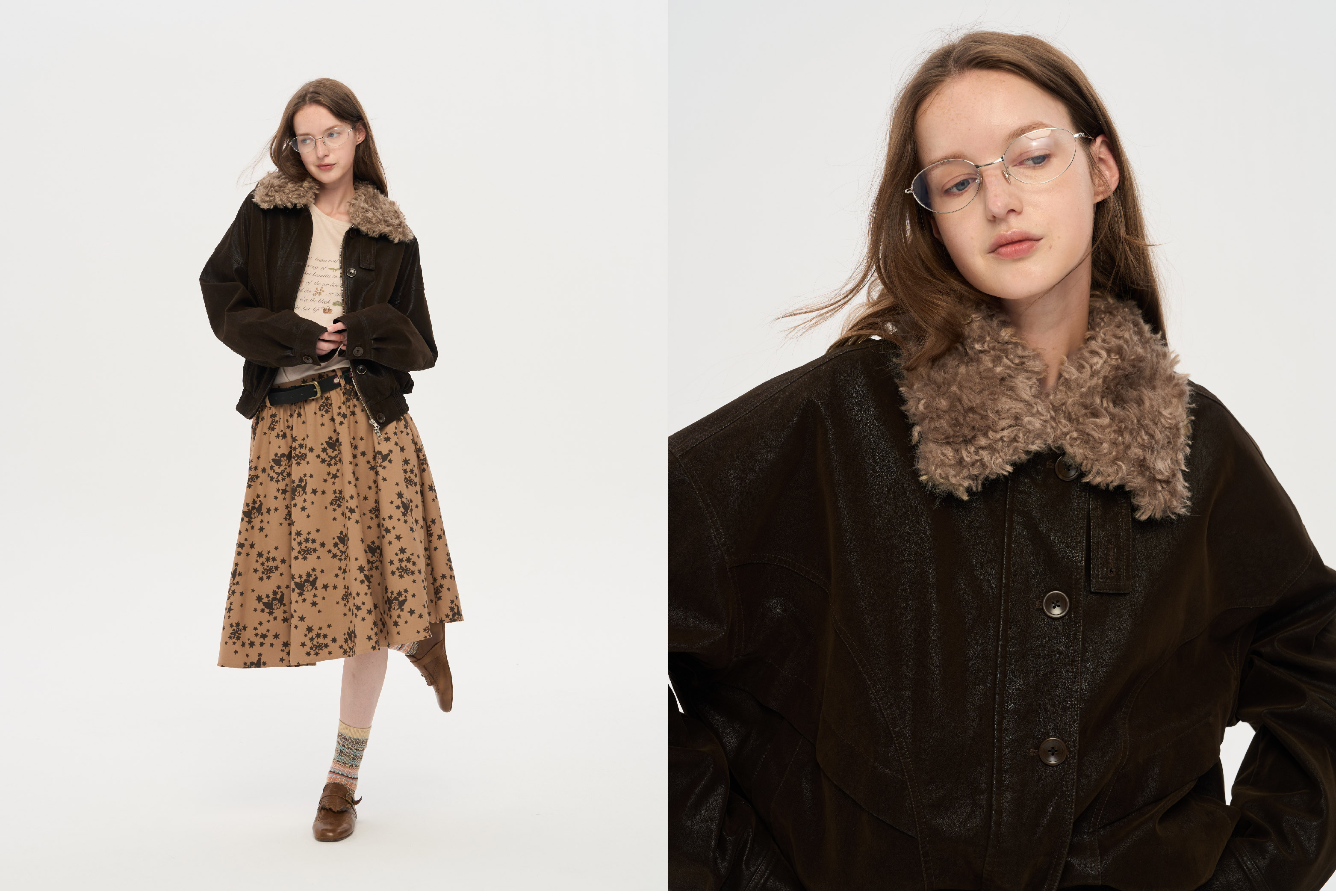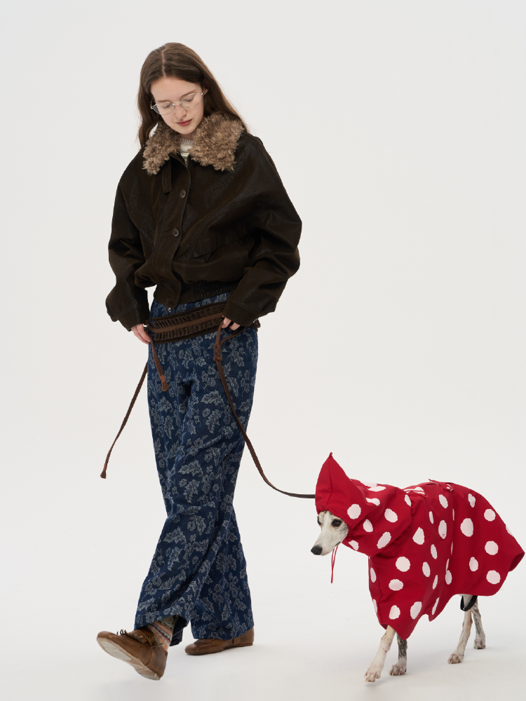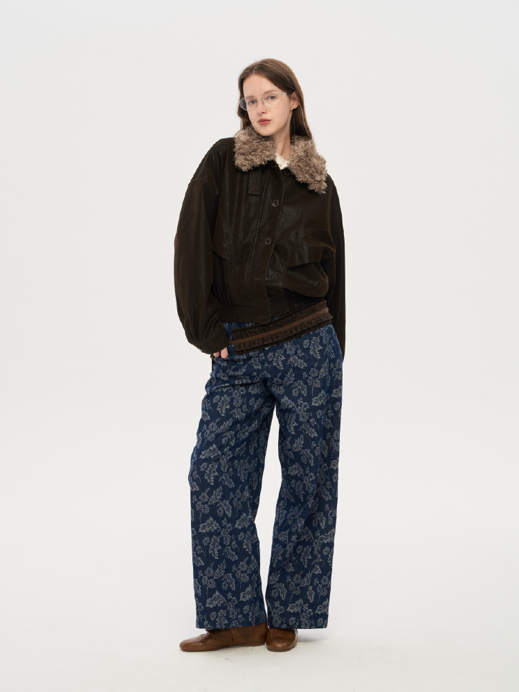 { Local Tag } Bol Farm Detachable Fur Collar Washed Leather Jacket Heavy-Duty Distressed Lapel Coat