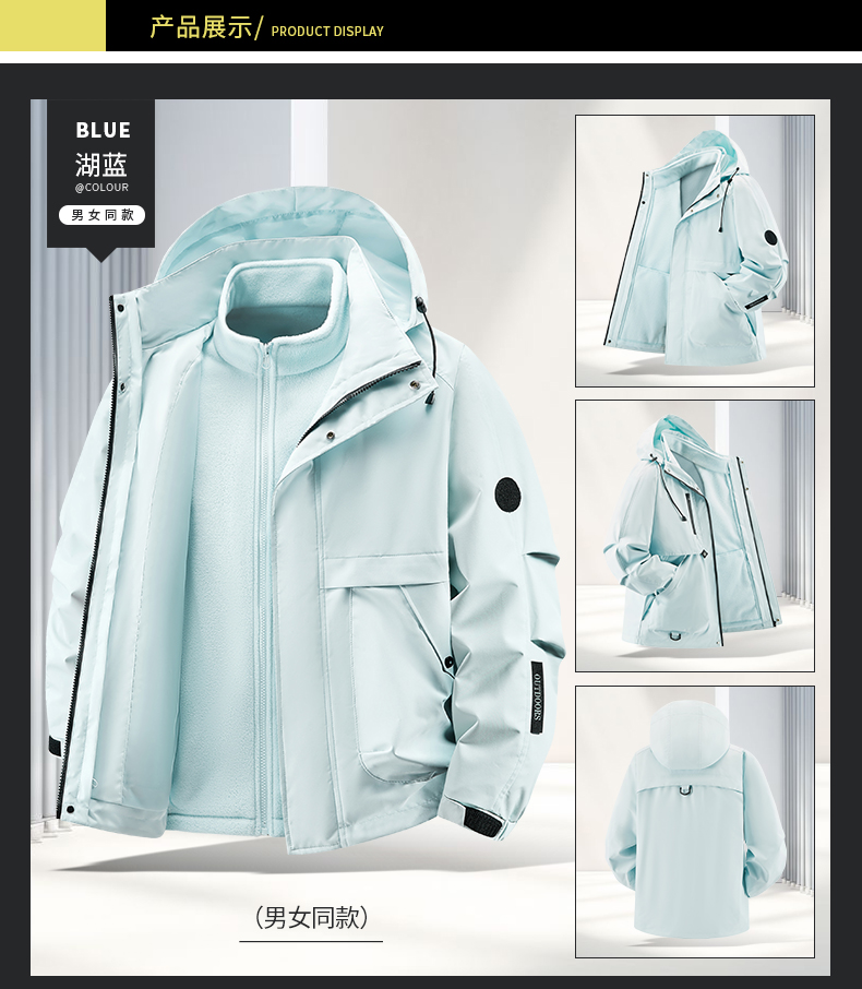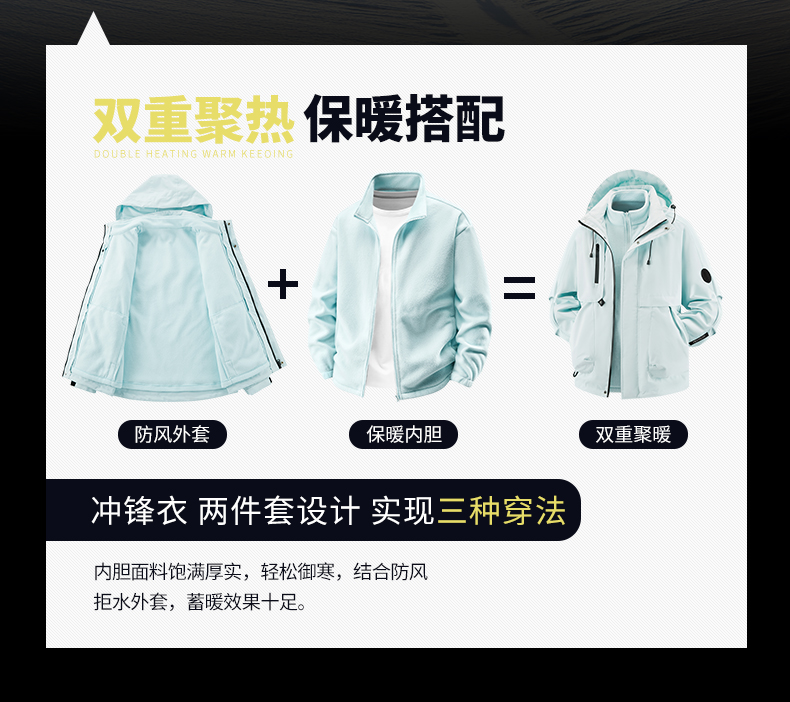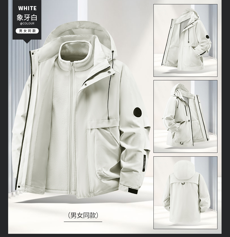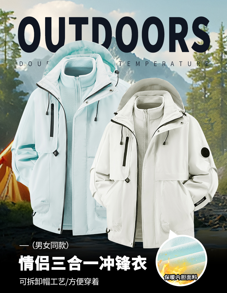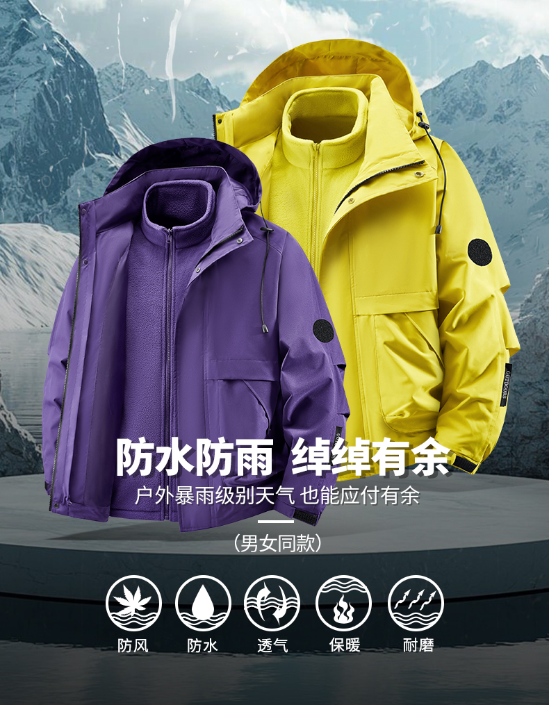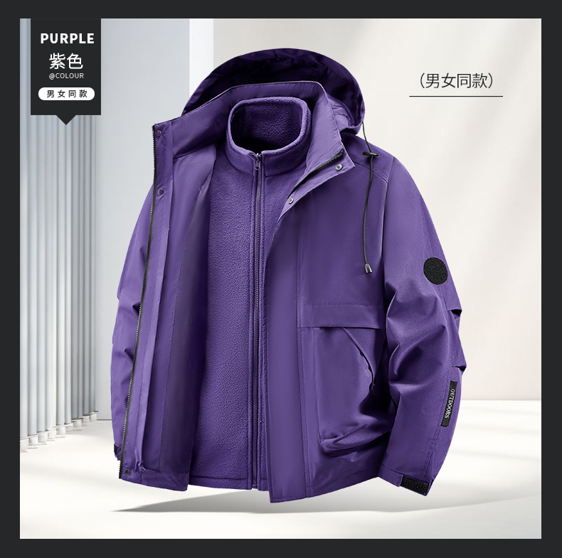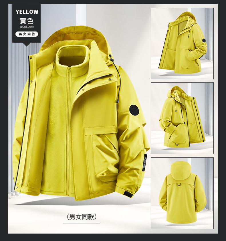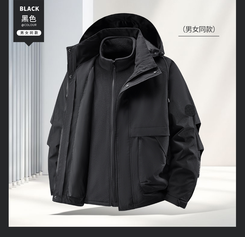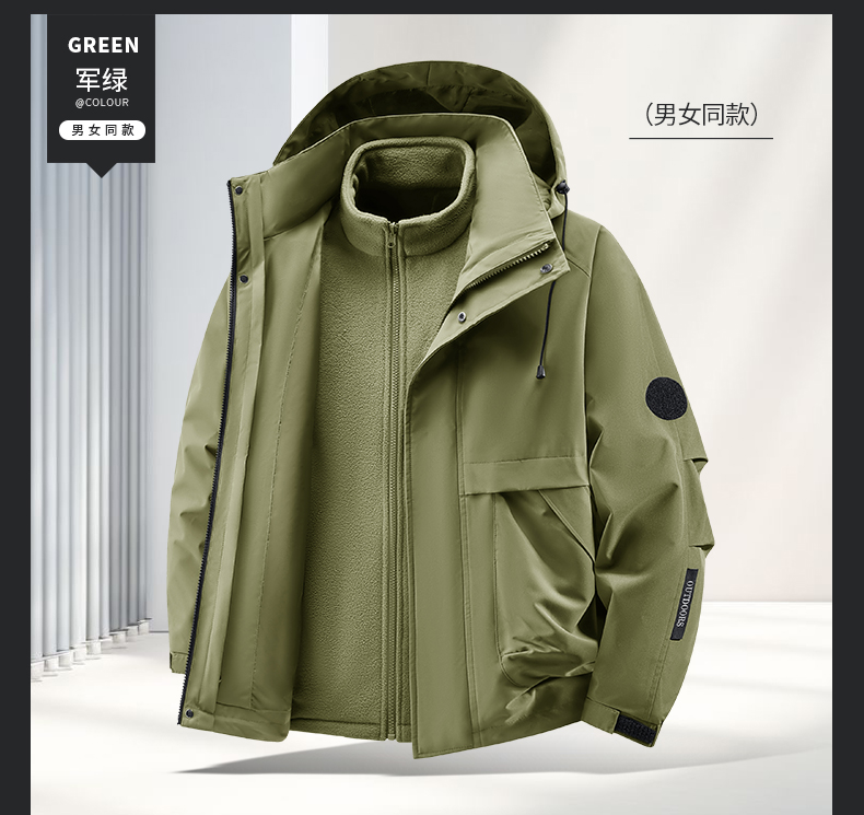 Woodpecker Outdoor Jacket for Men and Women, Autumn and Winter Three-In-One Windproof, Waterproof, Fleece-Lined and Thickened Mountaineering Jacket