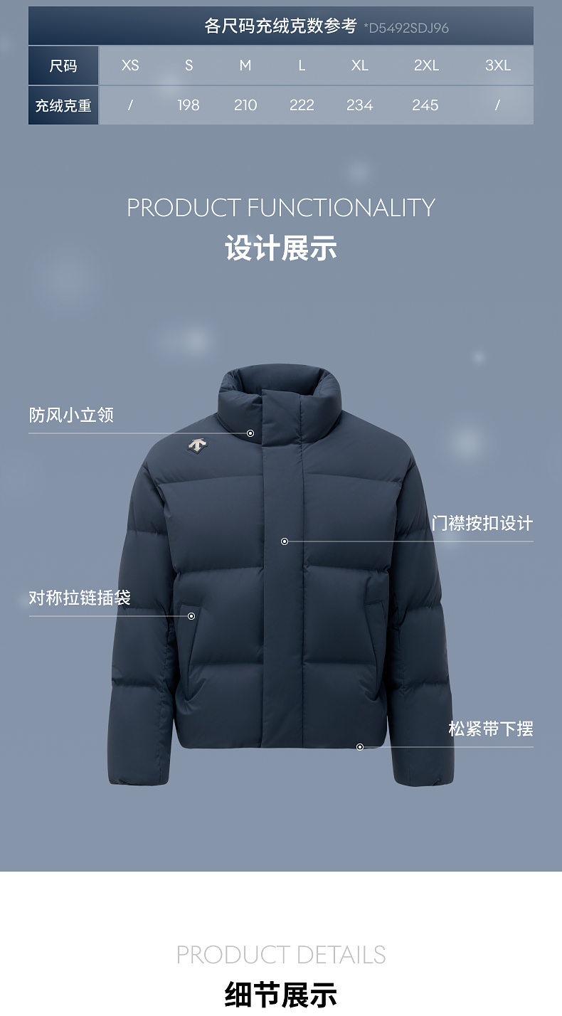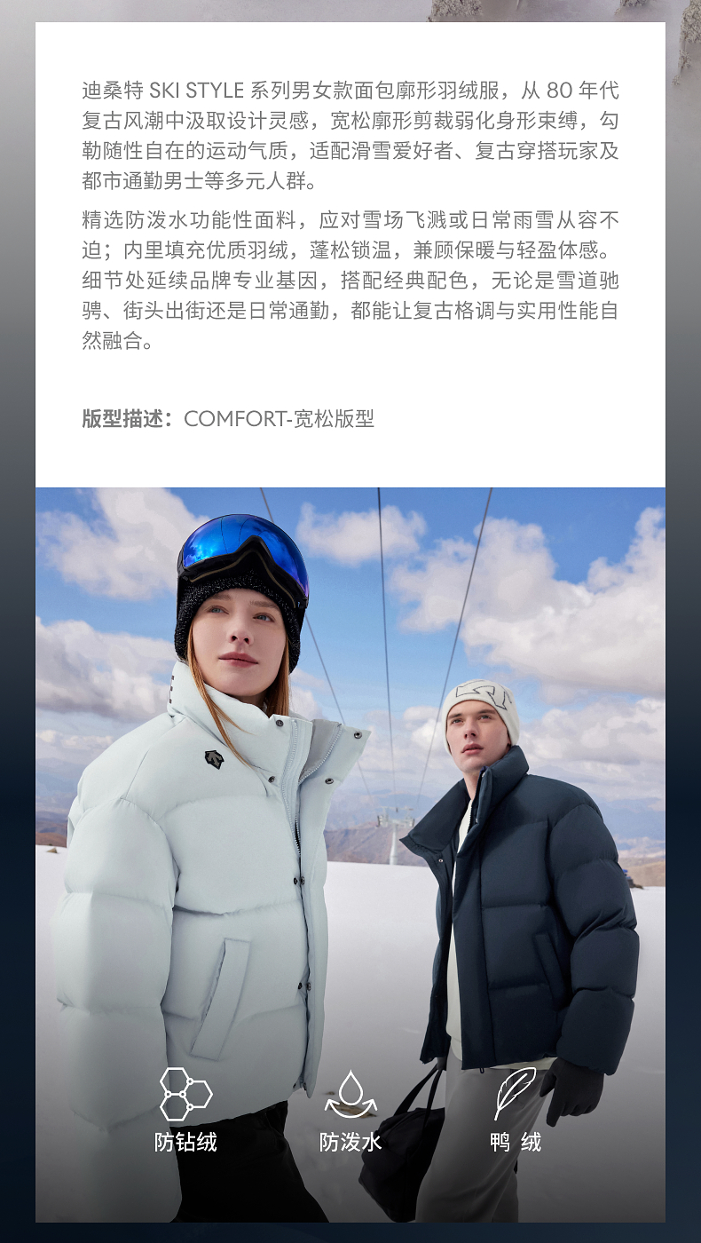 Descente Desante Men's and Women's Anti-Pilling, Water-Repellent Heat Navi Warm Short Puffer Jacket