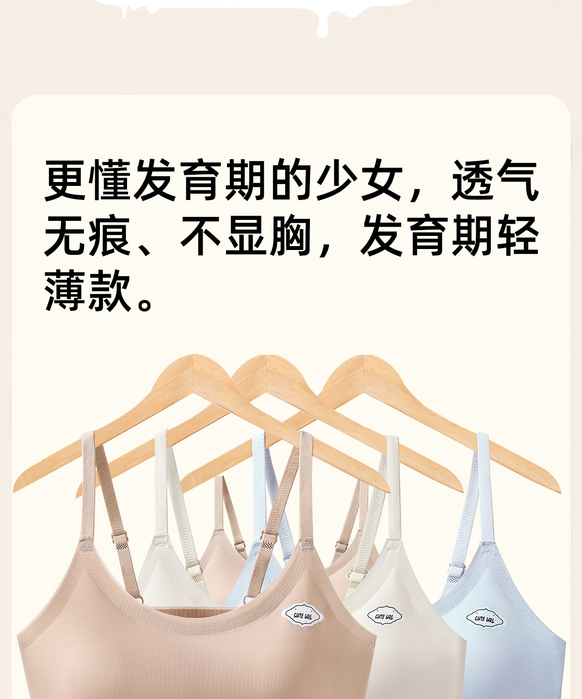 Developmental Period Girls' Underwear, Girls' Tank Tops, Teenage Bra for Middle and High School Students, Thin Strapless Invisible Bra