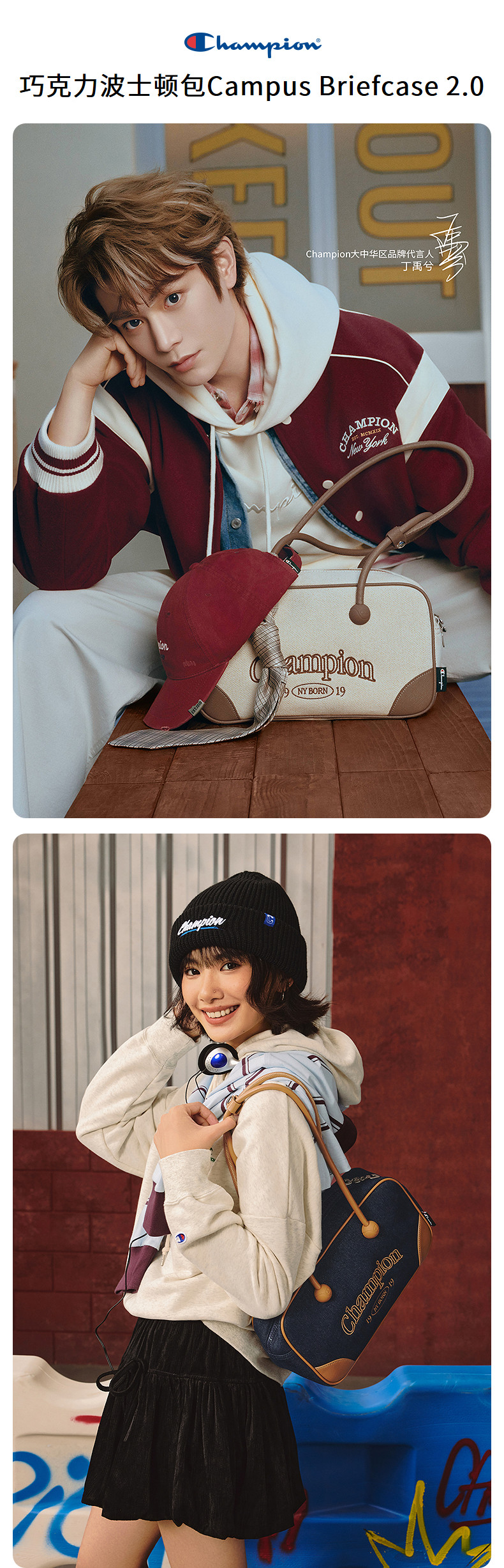 [Same Style as Ding Yuxi] Champion Single-Shoulder Backpack for Women, Bowling Bag for Men, Stylish Commuter Bag