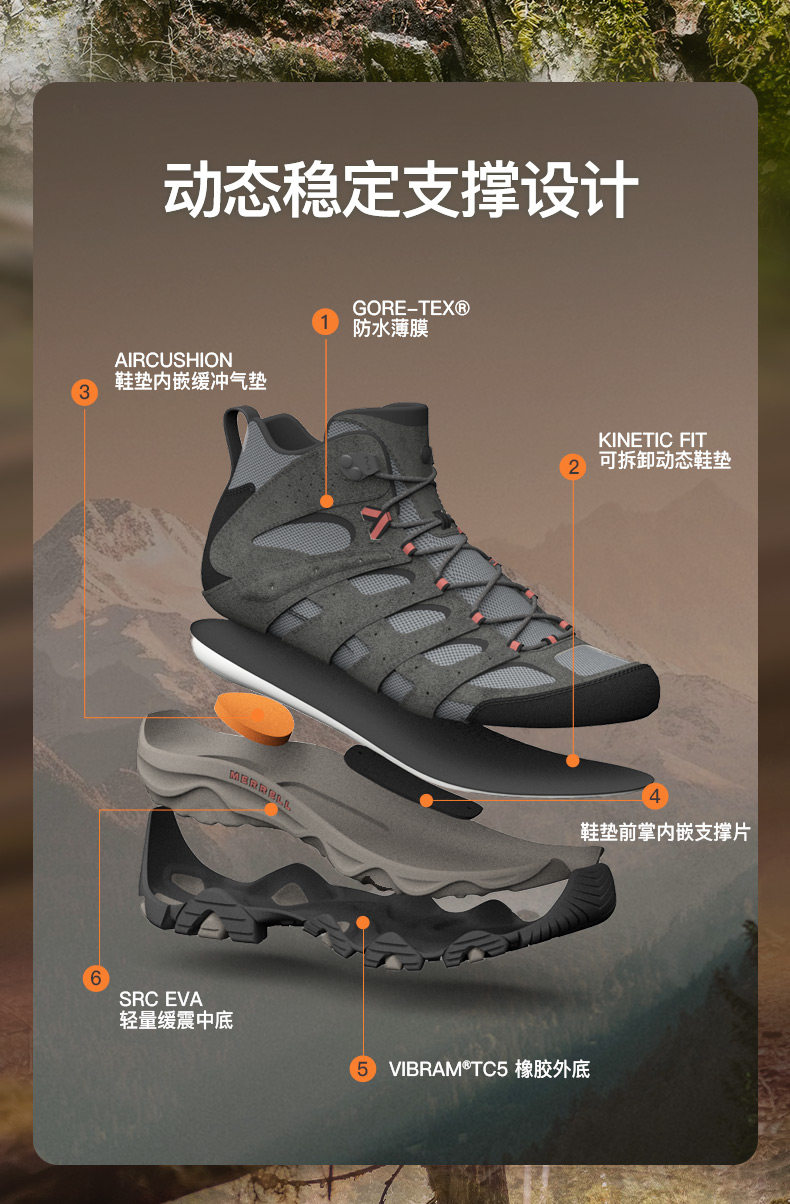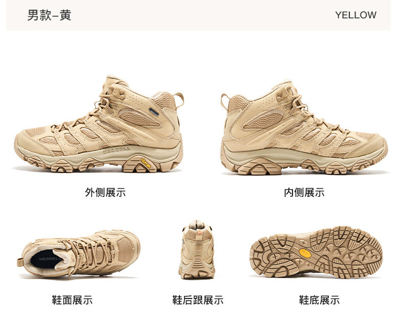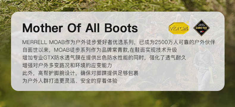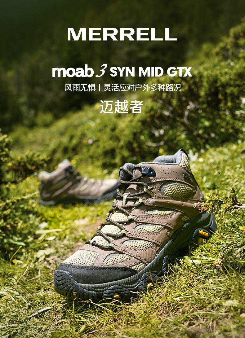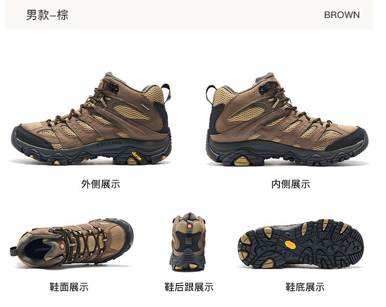 Merrell Moab3Gtx | Waterproof Hiking and Mountaineering Shoes for Men and Women, Outdoor Climbing Non-Slip Mid-Top Sports Shoes