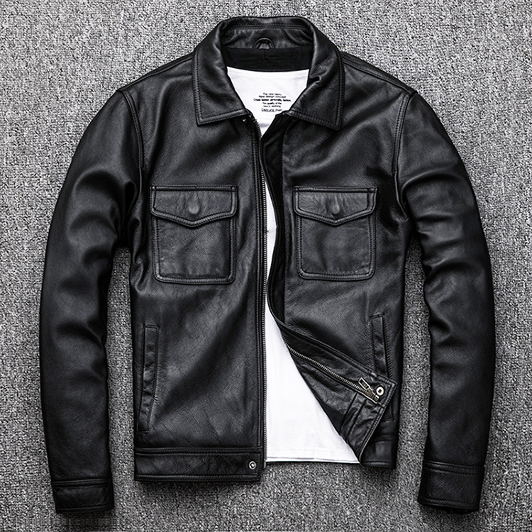 Mk Genuine Top-Layer Cowhide Men's Leather Jacket with a High-End Vintage Stone-Washed Distressed Short Style