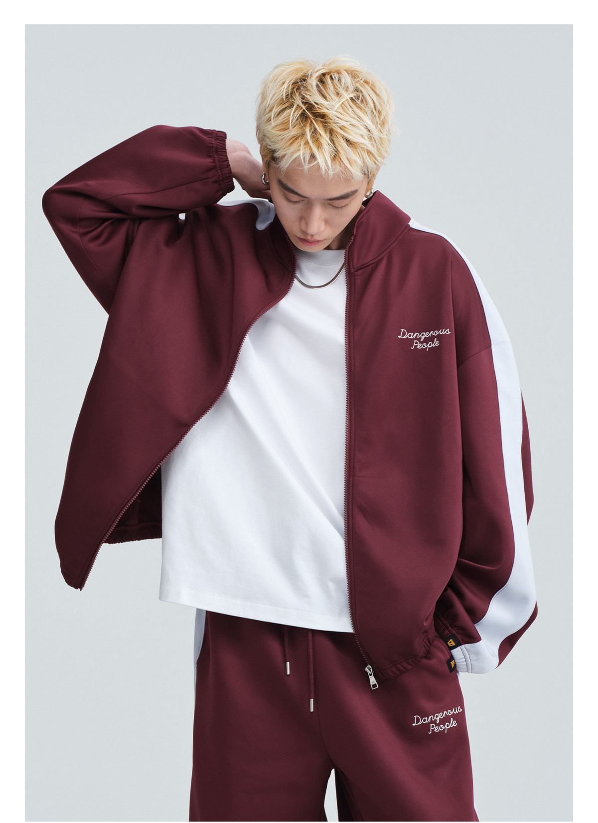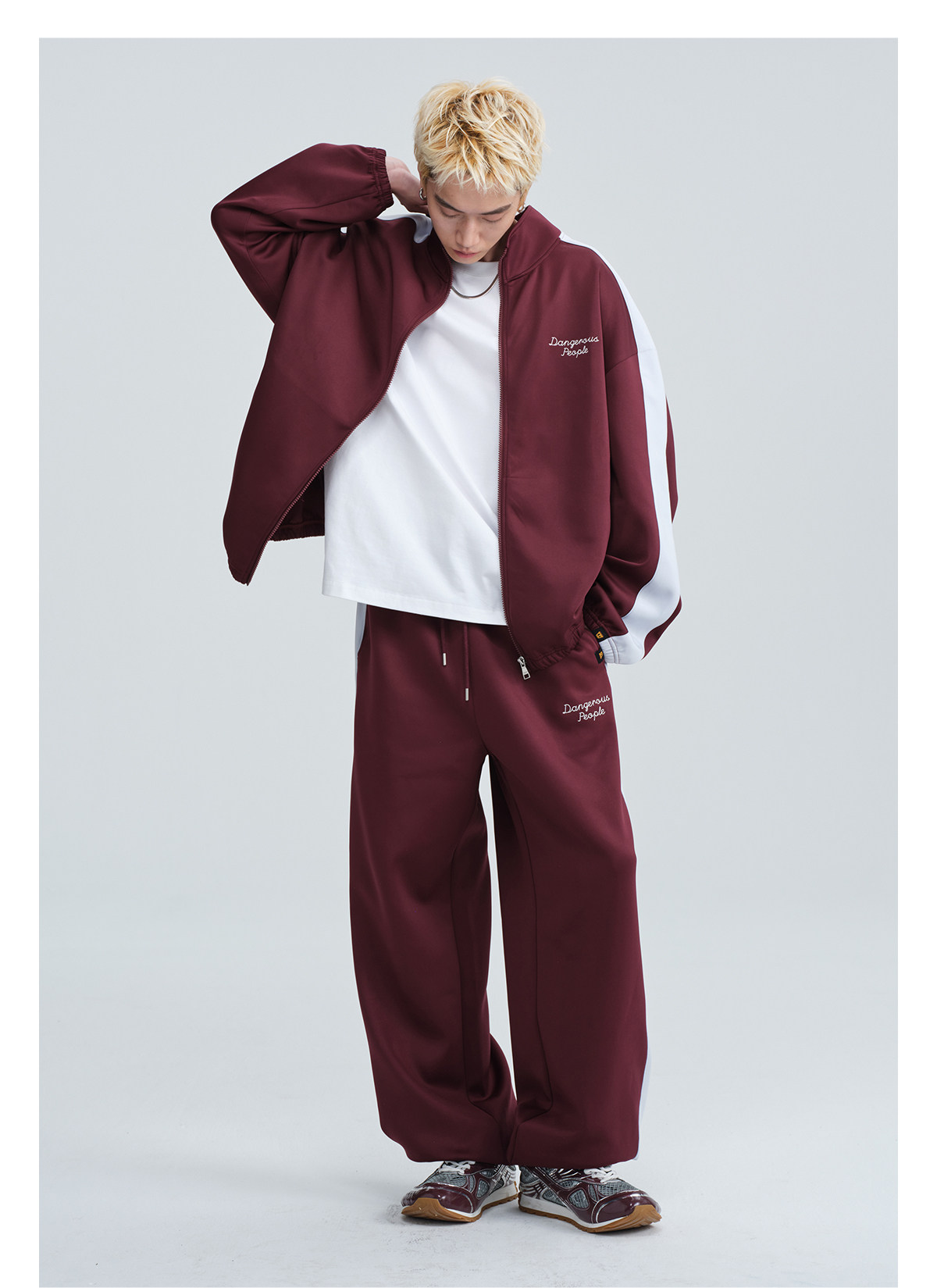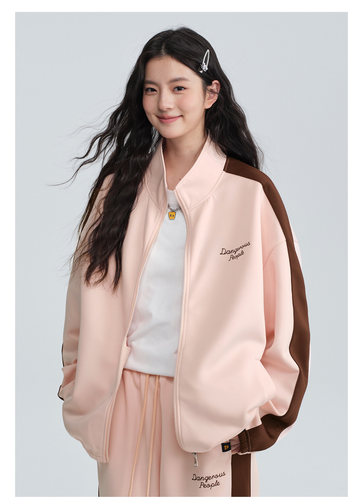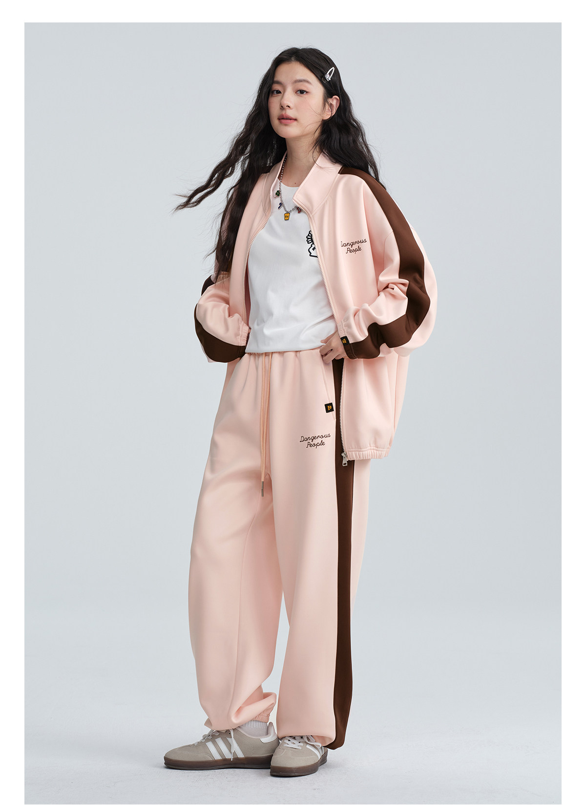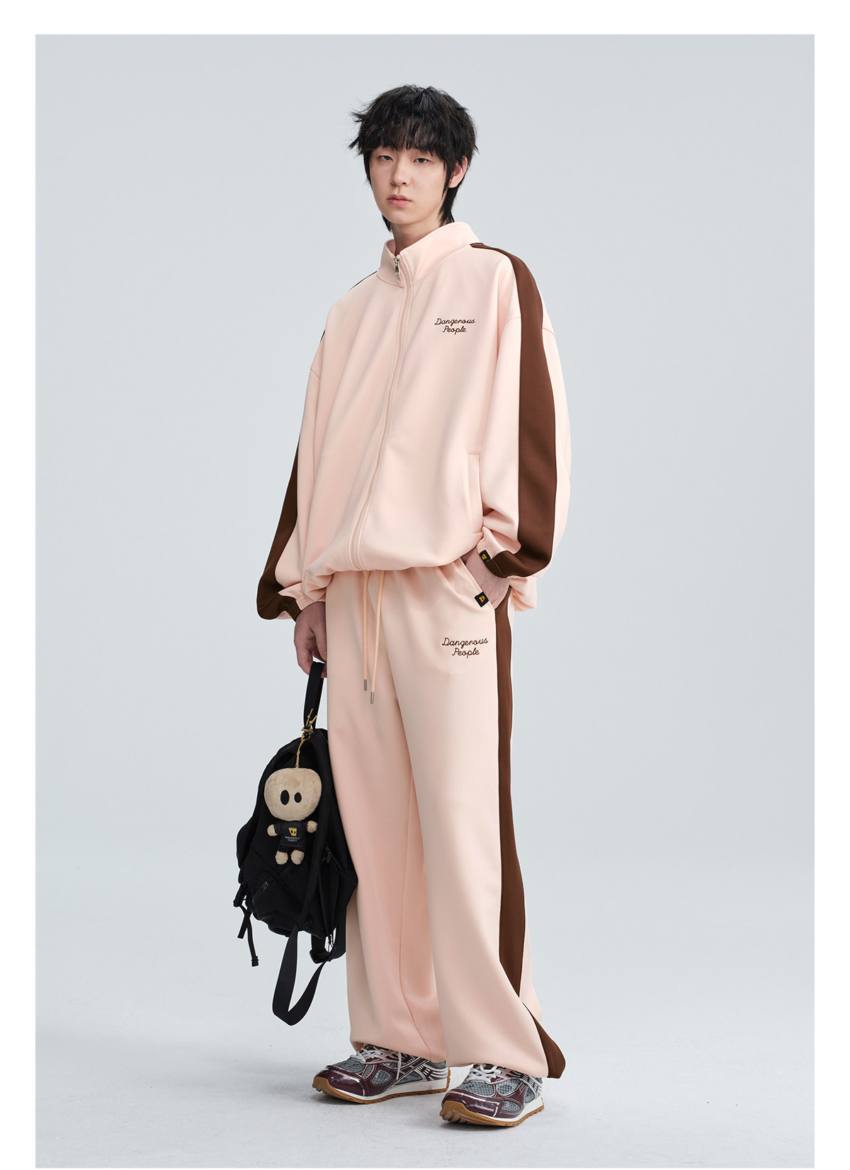 Dangerouspeople Joker Xue Dsp Pink Wide-Striped Color-Block Jacket Trendy Casual Pants Sports Suit