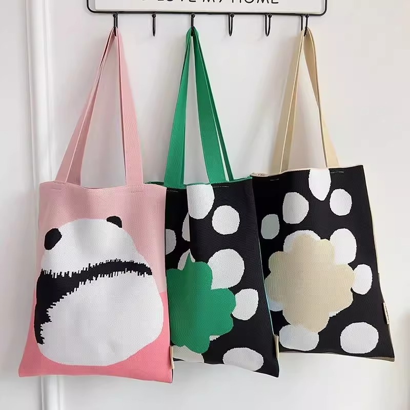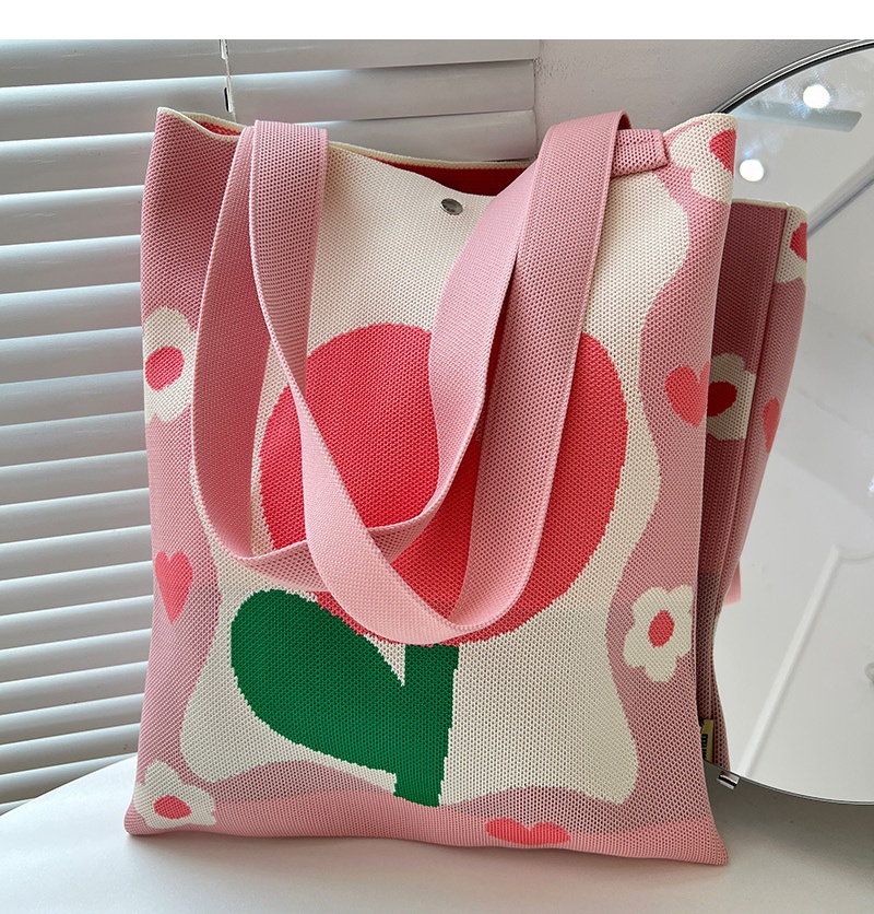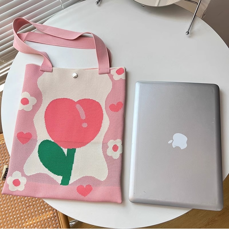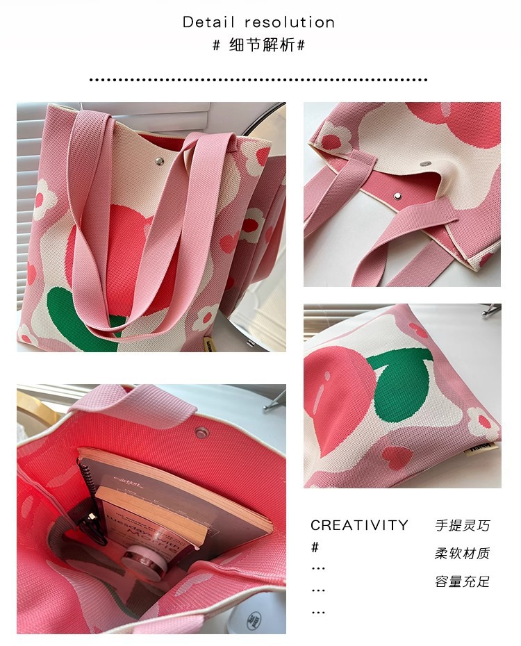 Japanese and Korean Sweet Floral Shoulder Bag, Large-Capacity Knitted Tote Bag, Versatile Daily Student Tutoring Bag, Book Carrying Handbag