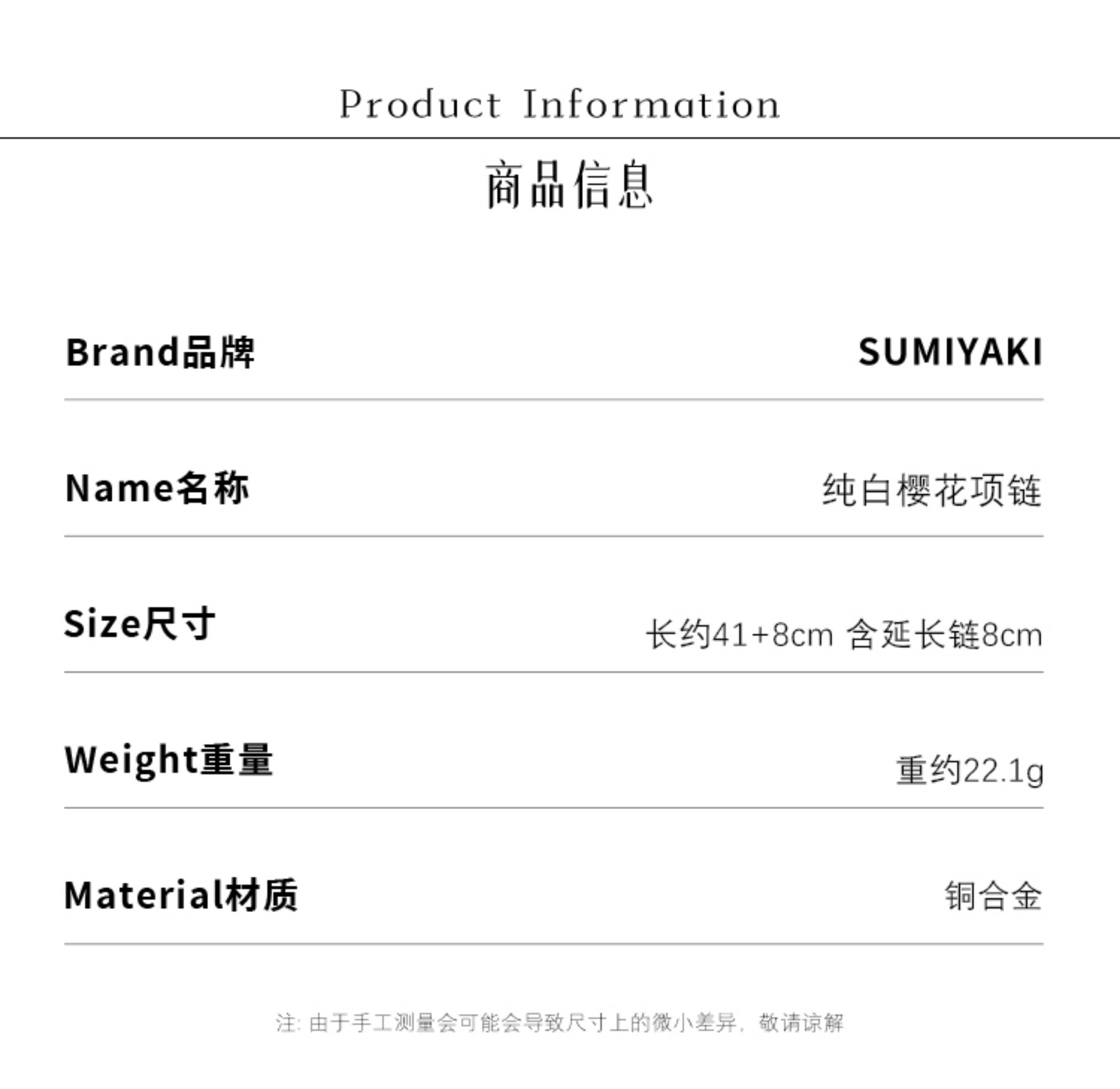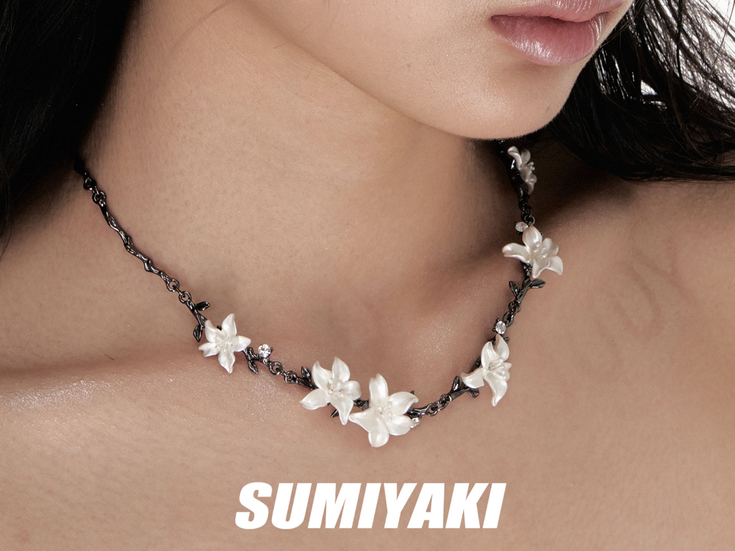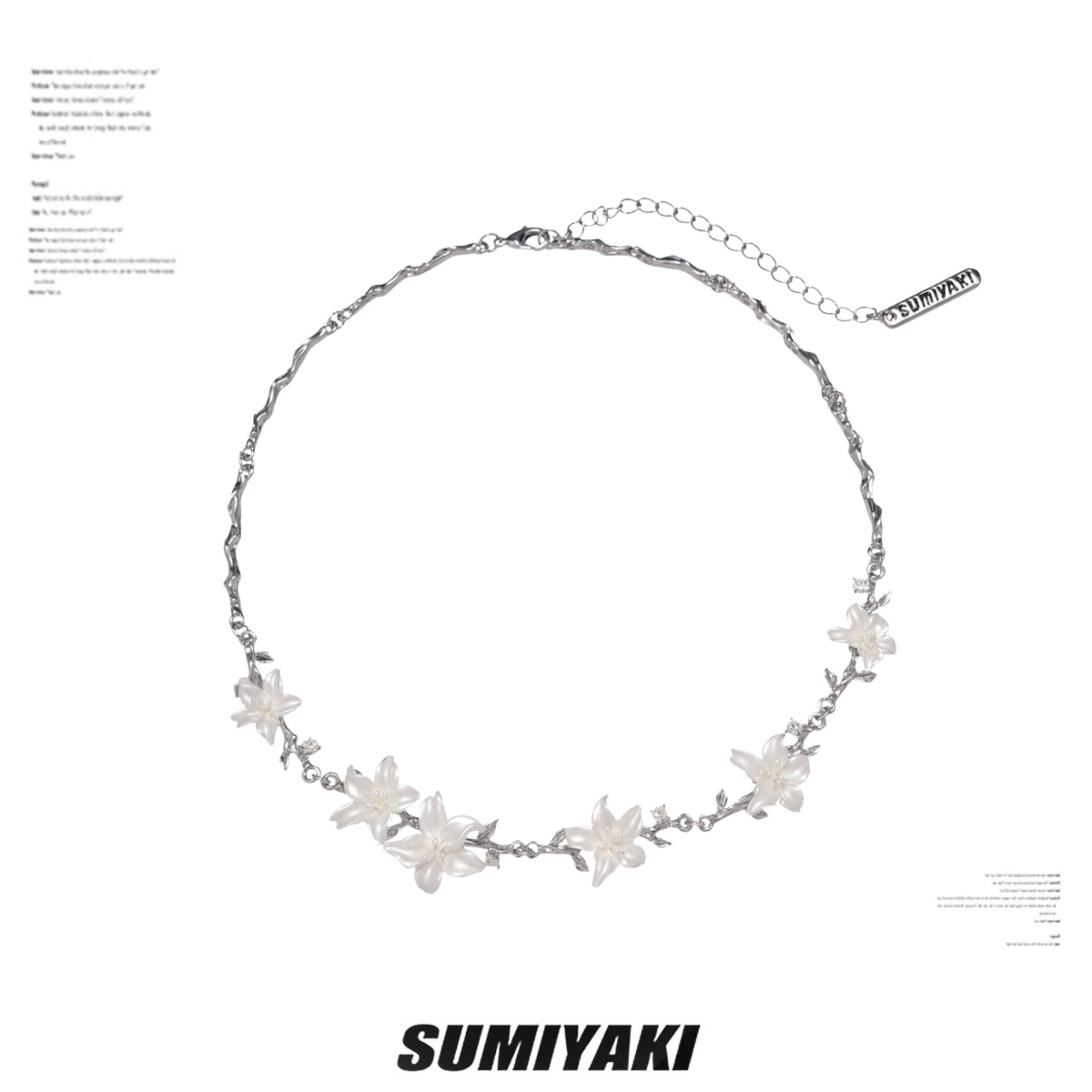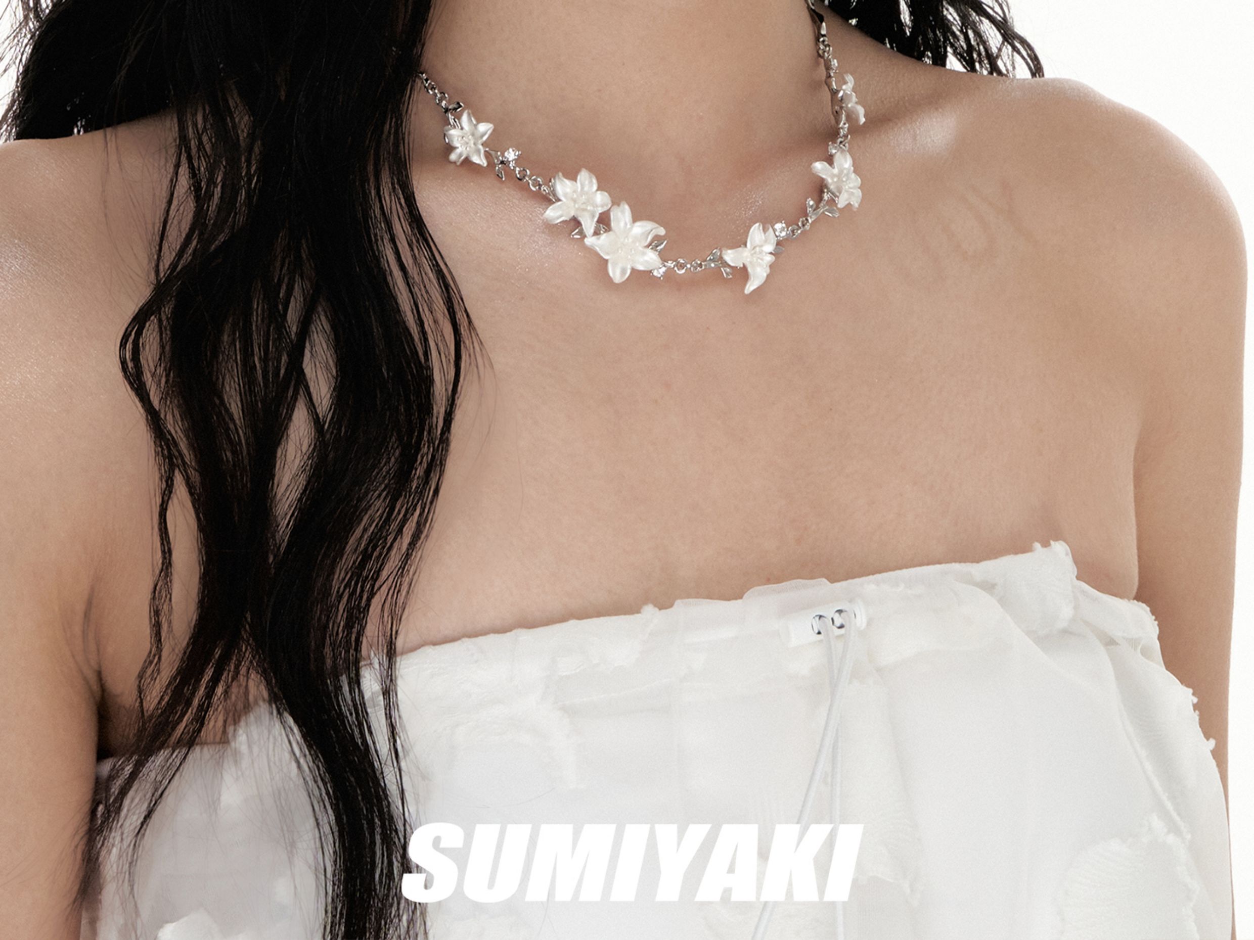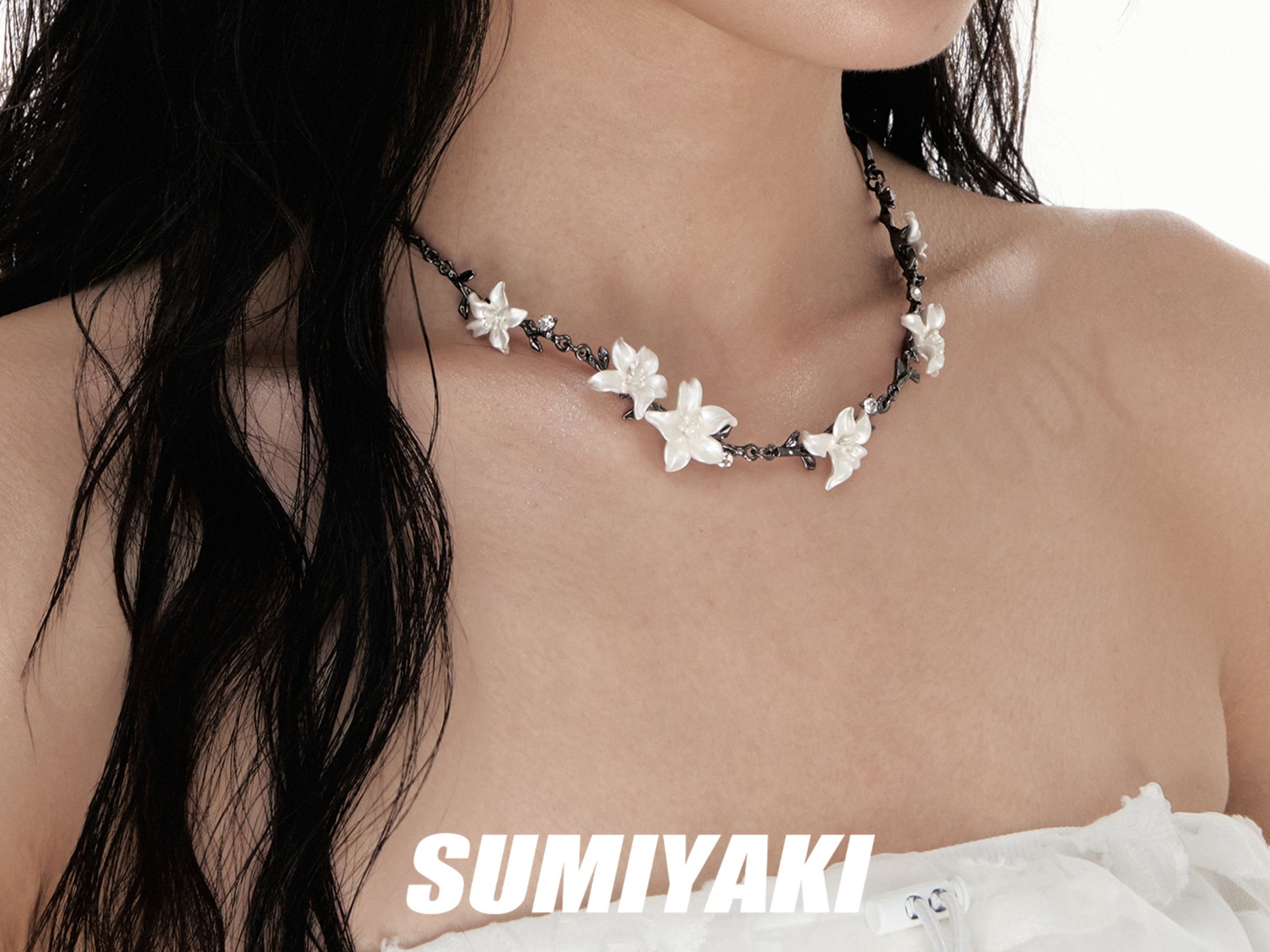 Sumiyaki Pale Whisper Series Pure White Cherry Blossom Necklace Niche Design Black and White Flower Dark Black Clavicle Chain
