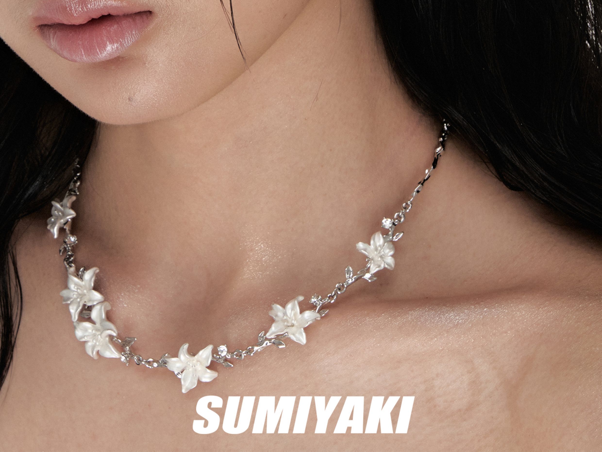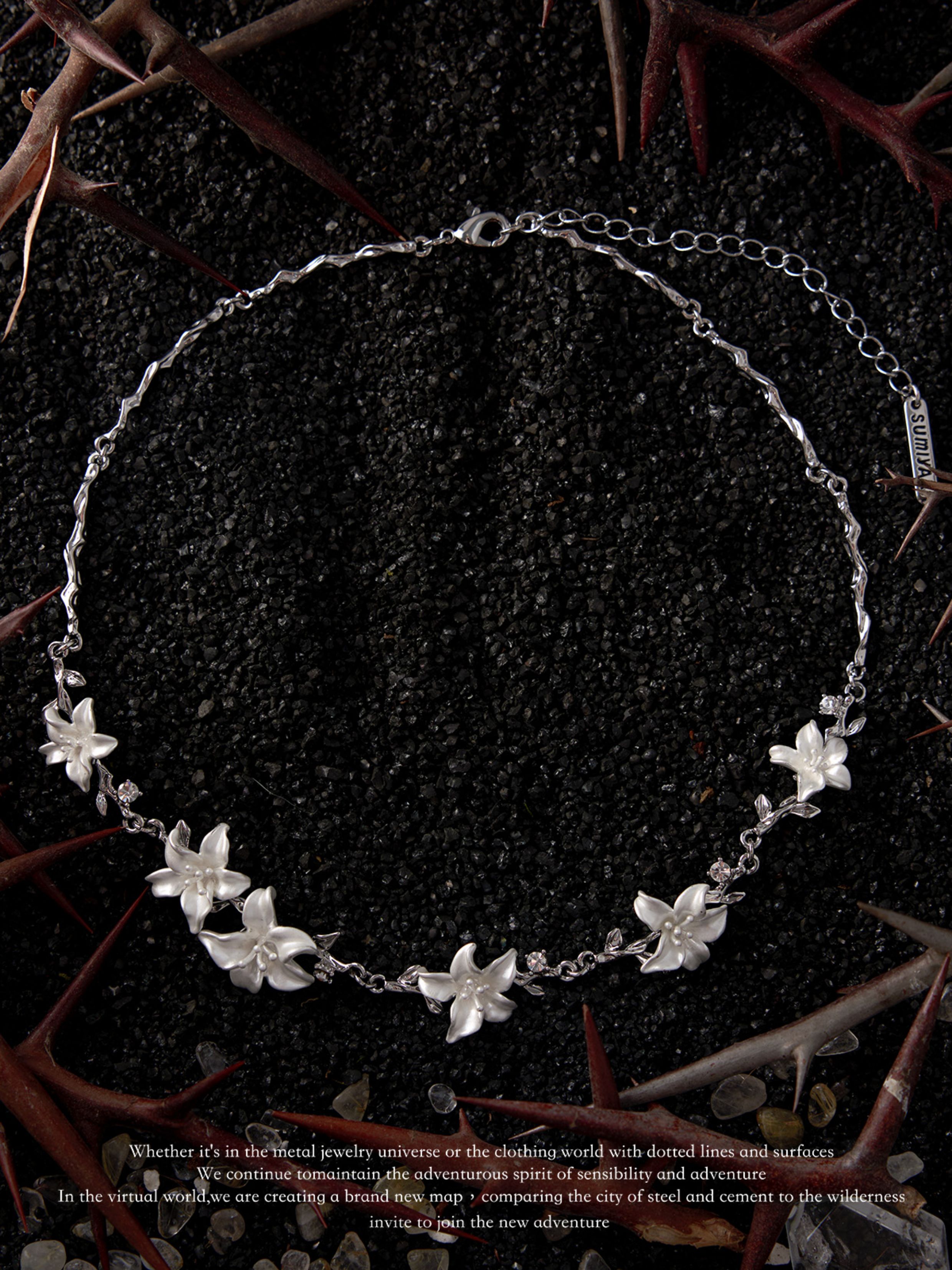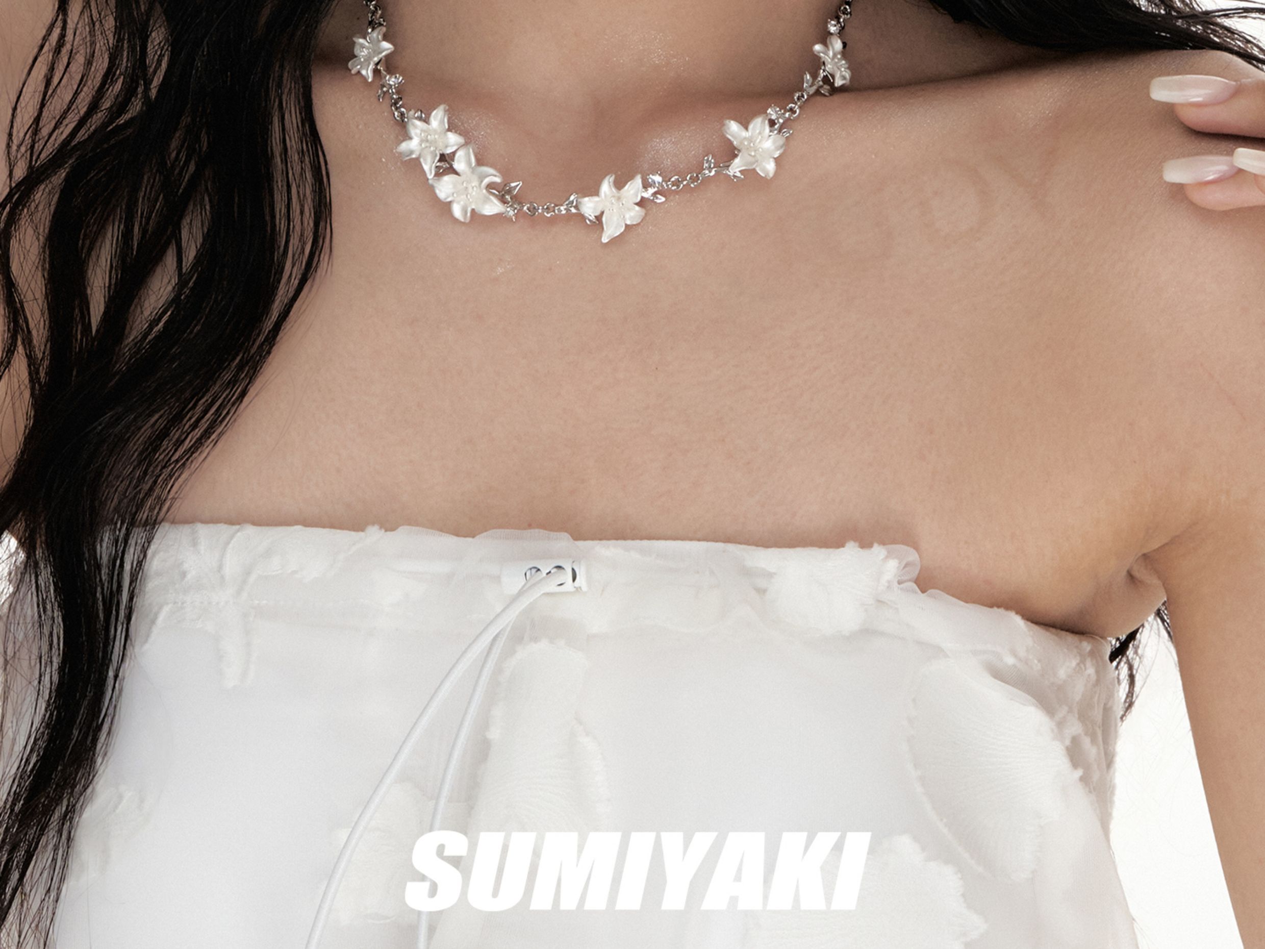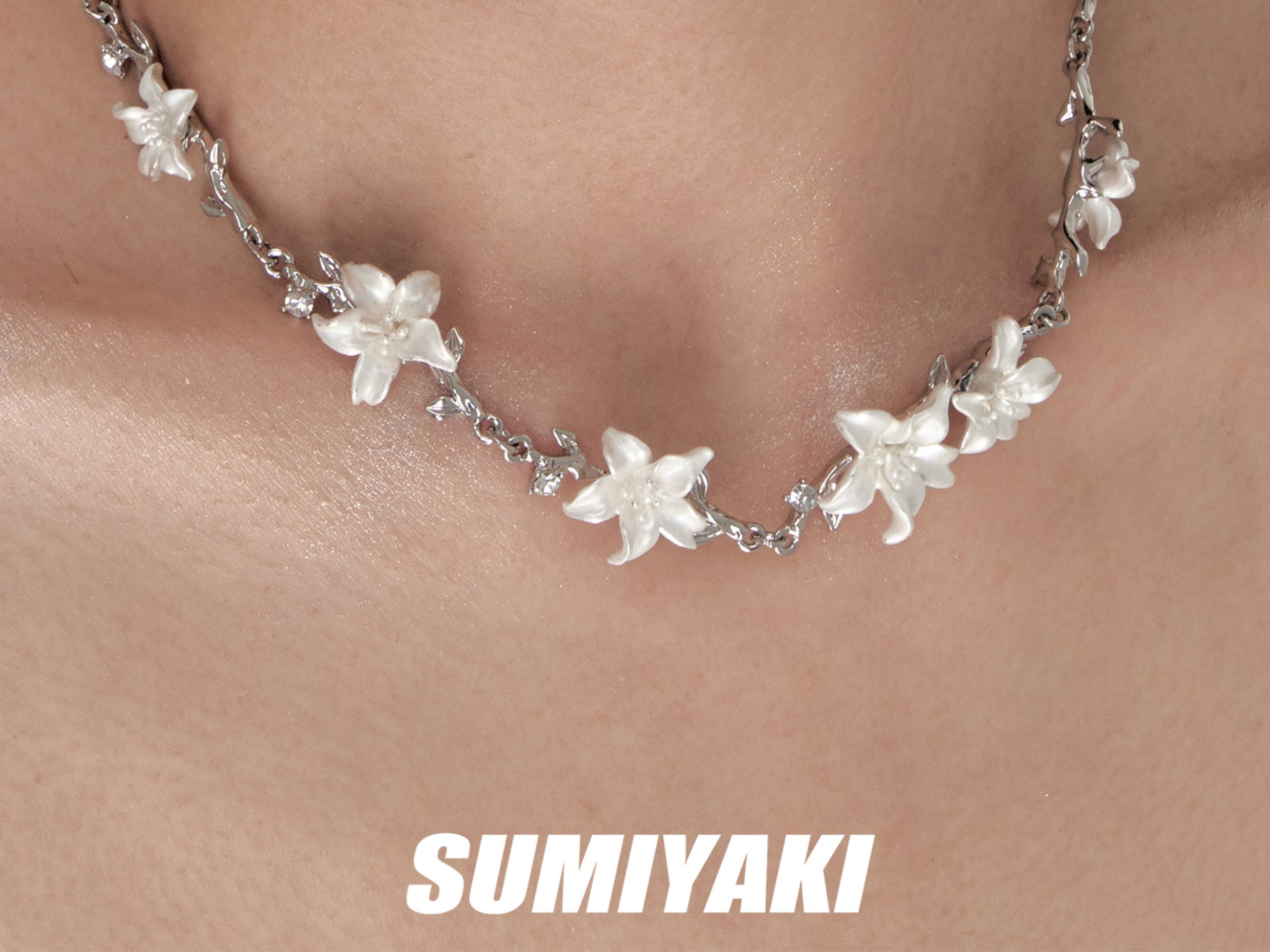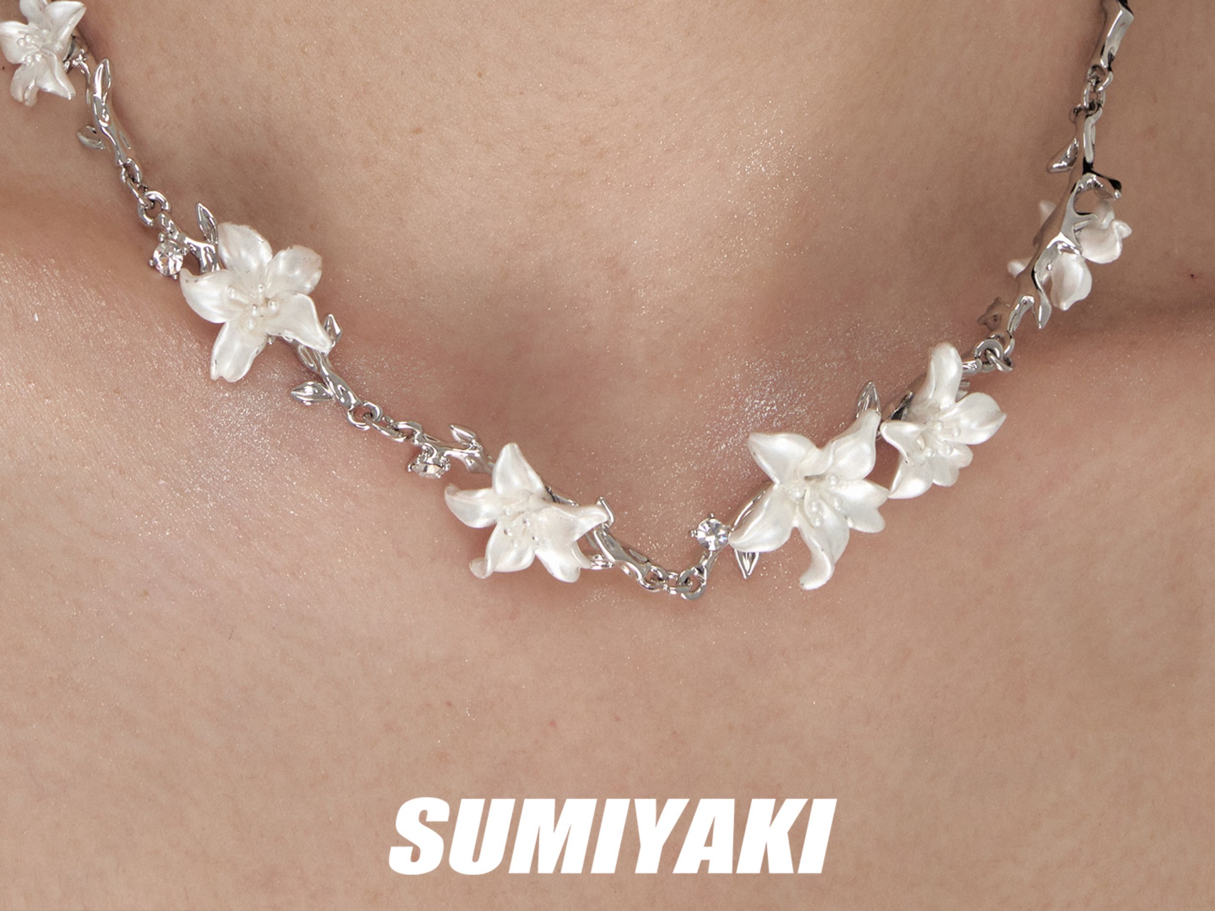 Sumiyaki Pale Whisper Series Pure White Cherry Blossom Necklace Niche Design Black and White Flower Dark Black Clavicle Chain