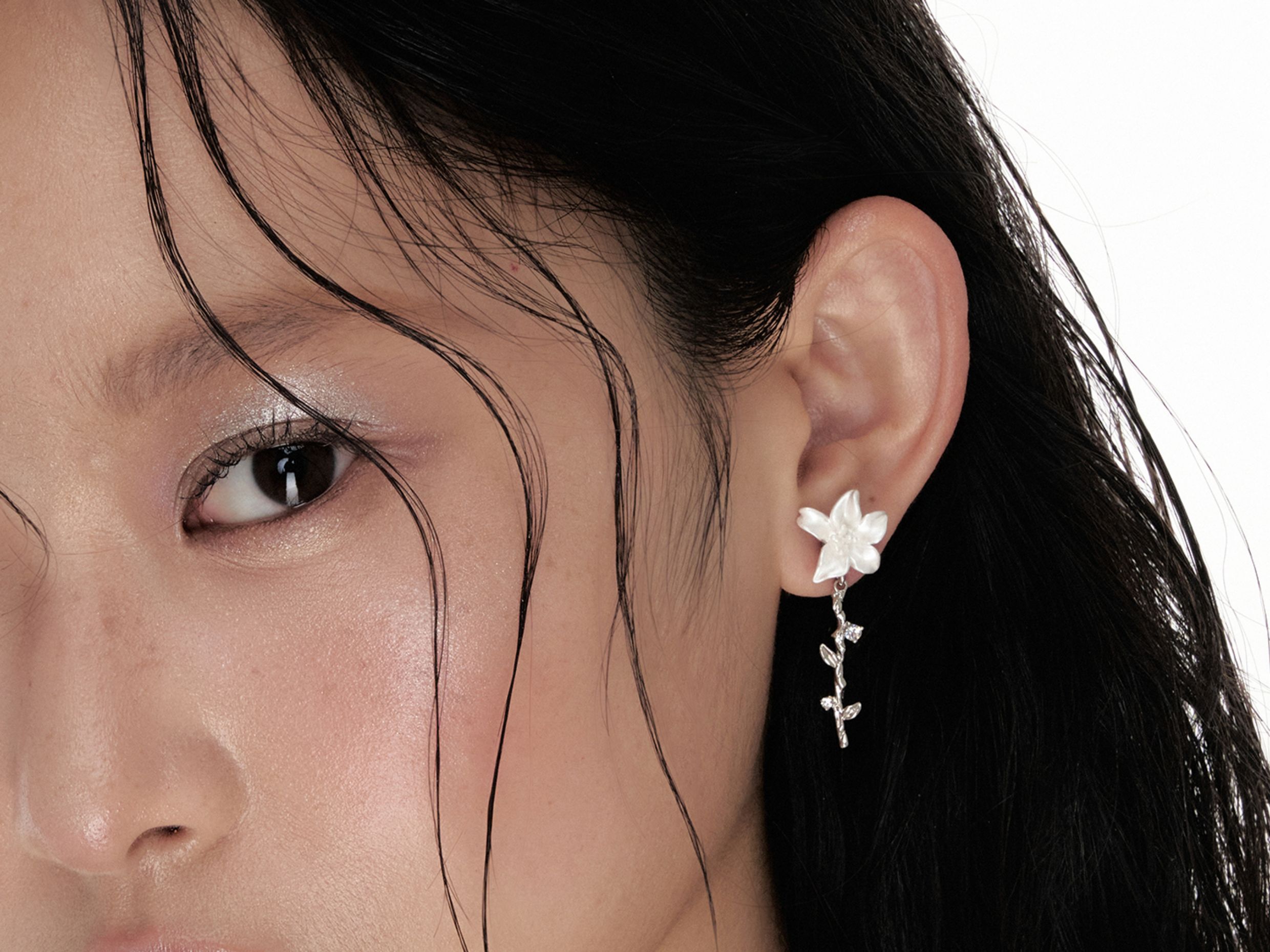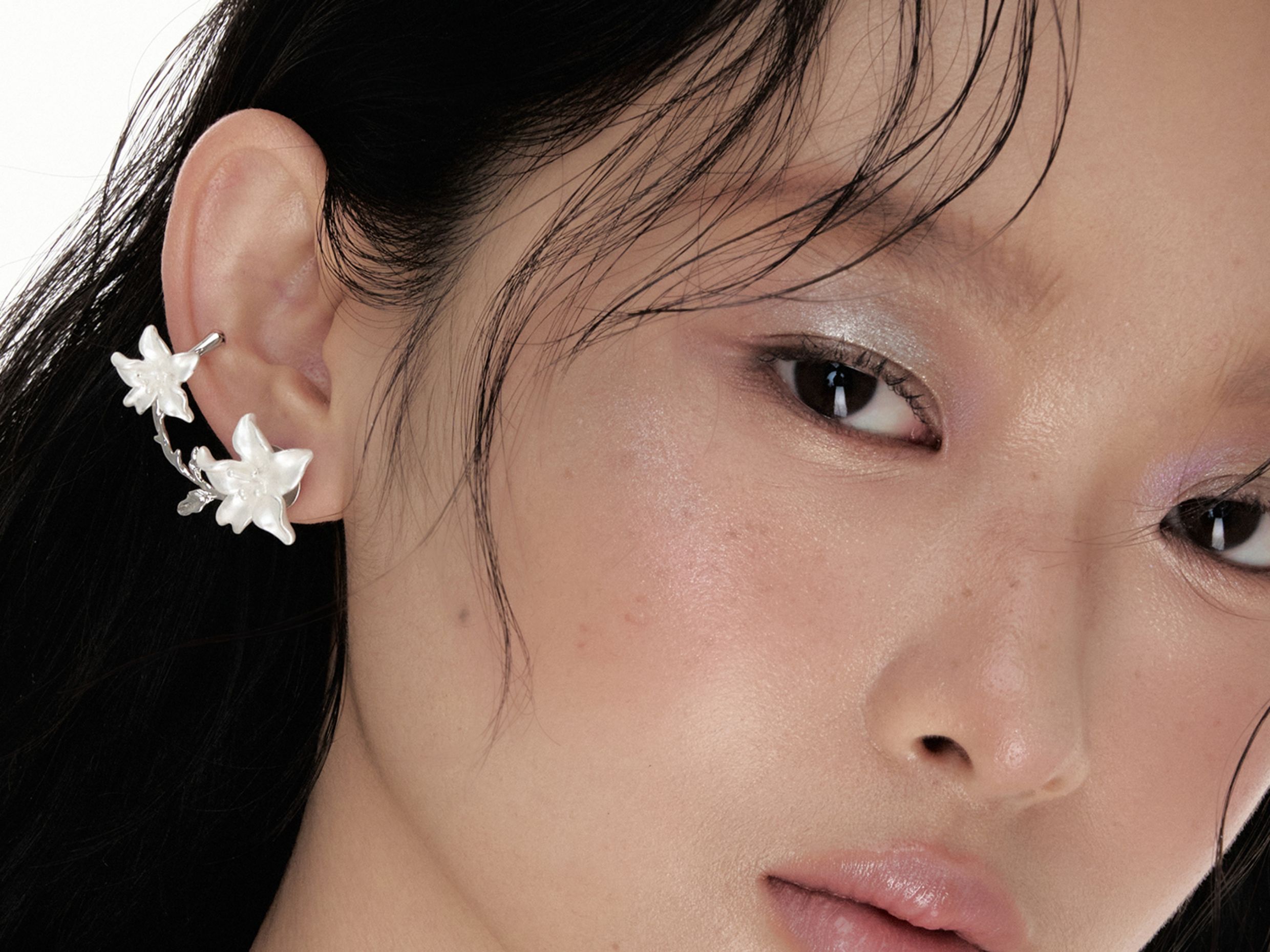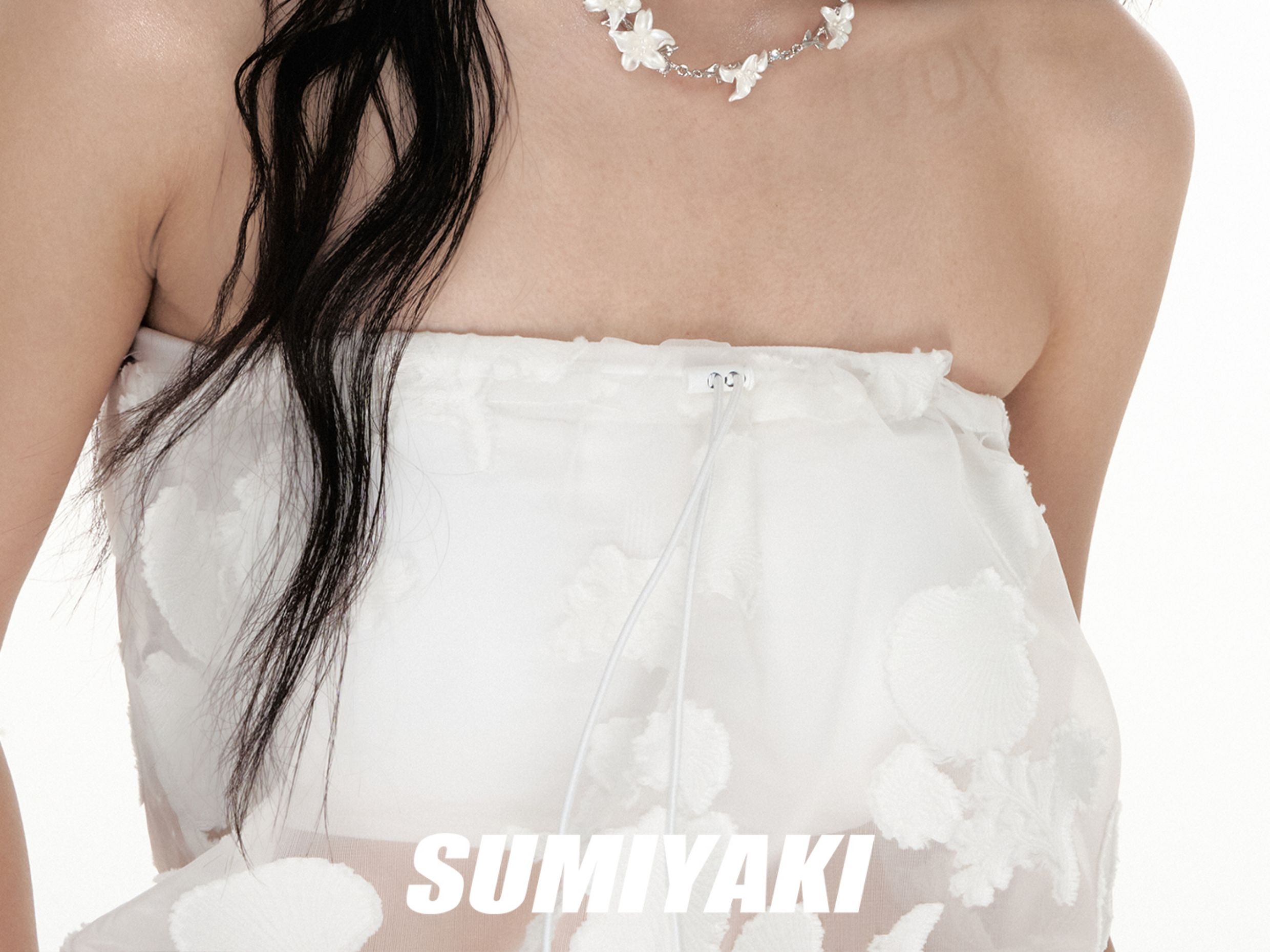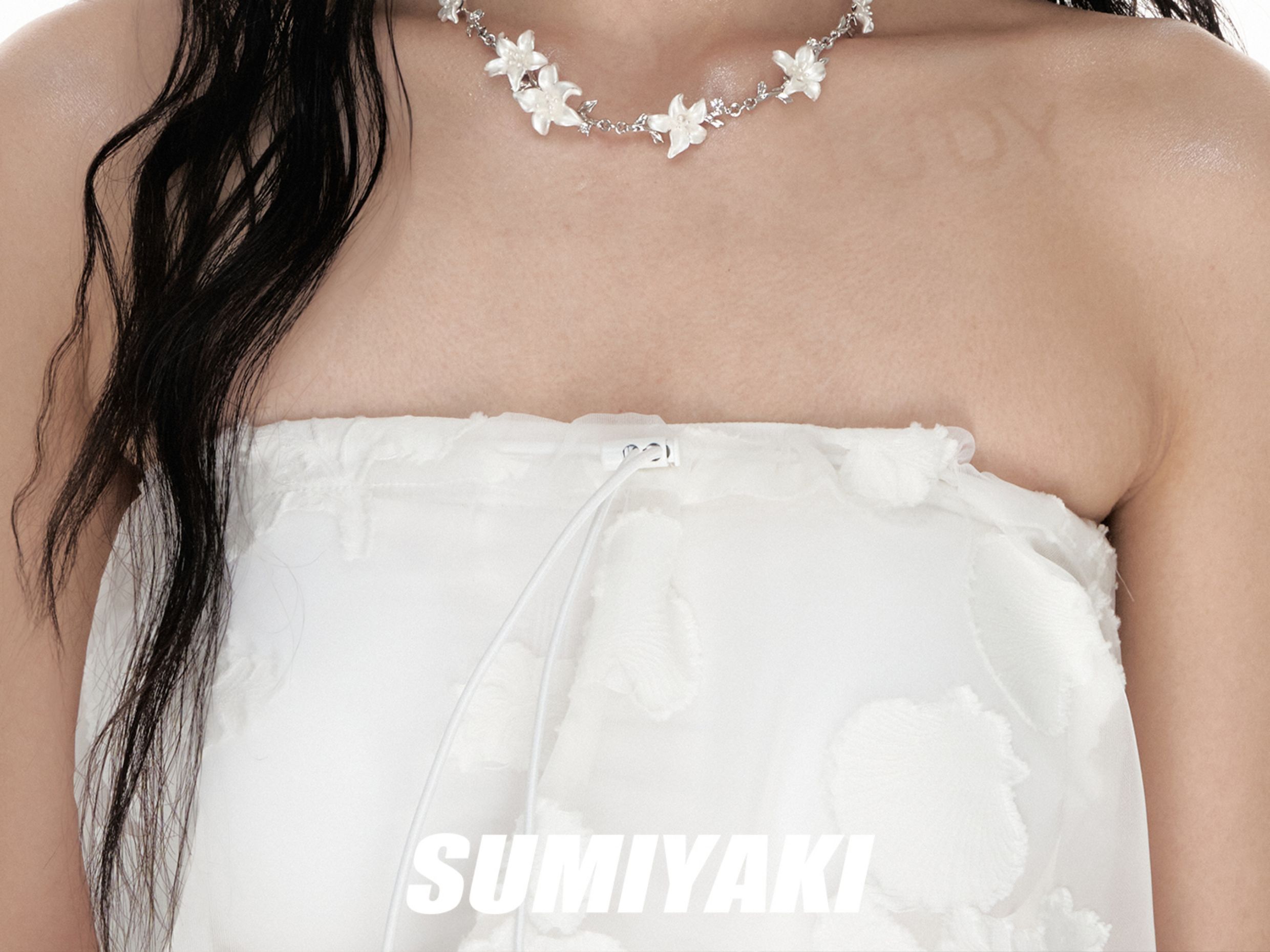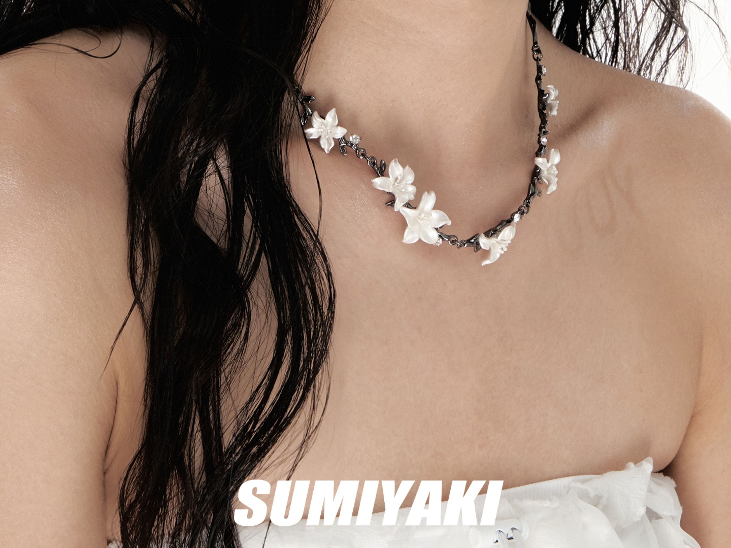 Sumiyaki Pale Whisper Series Pure White Cherry Blossom Necklace Niche Design Black and White Flower Dark Black Clavicle Chain