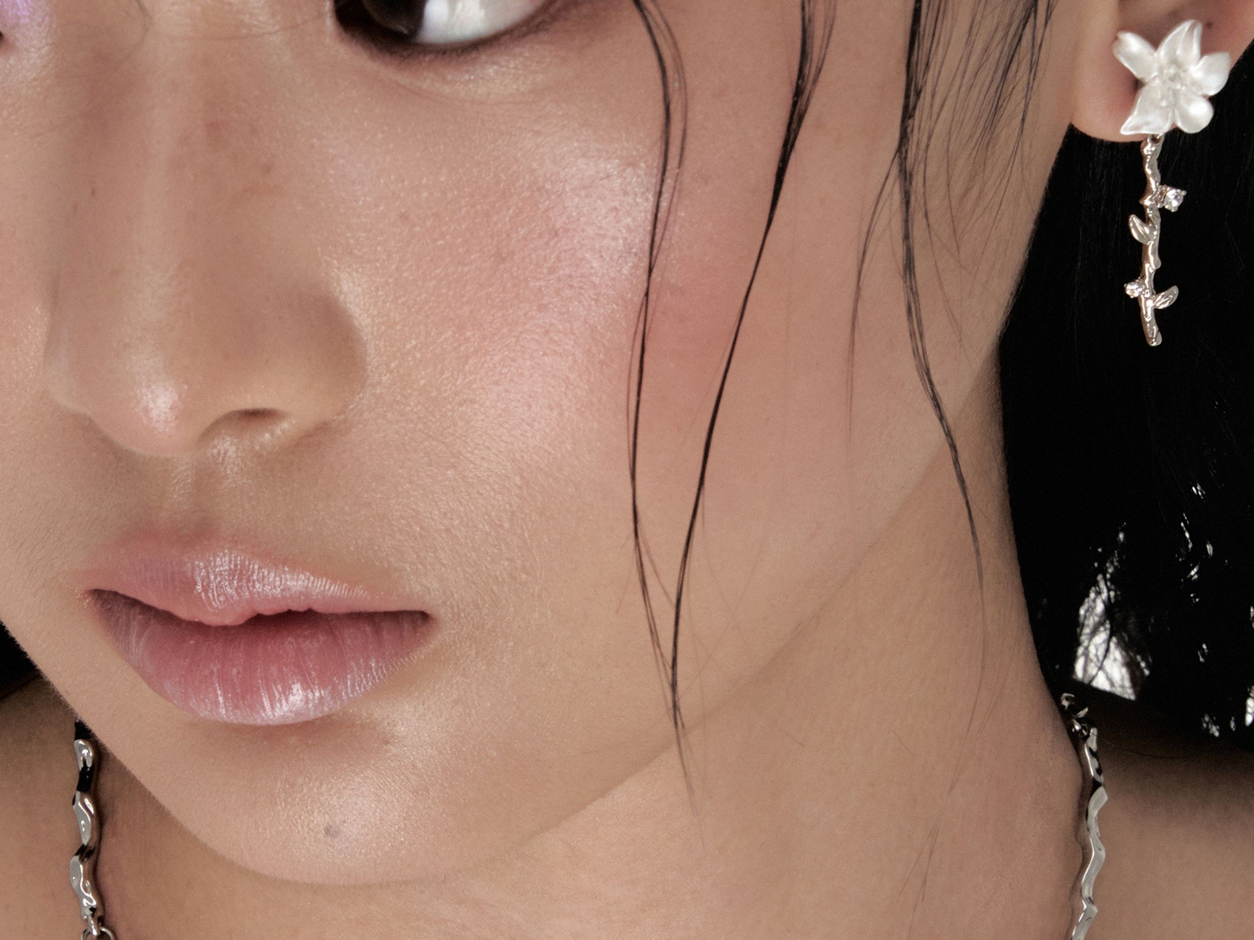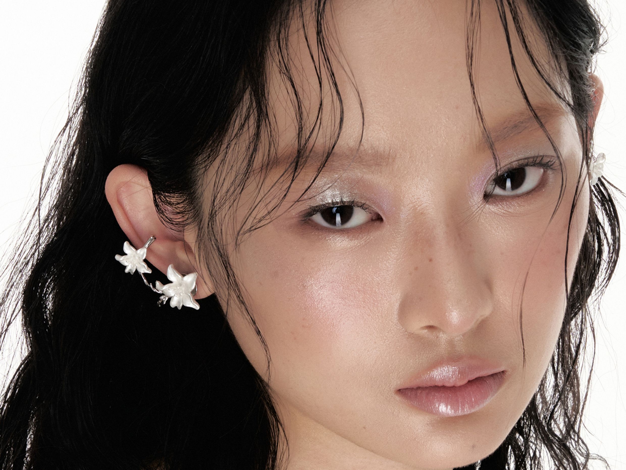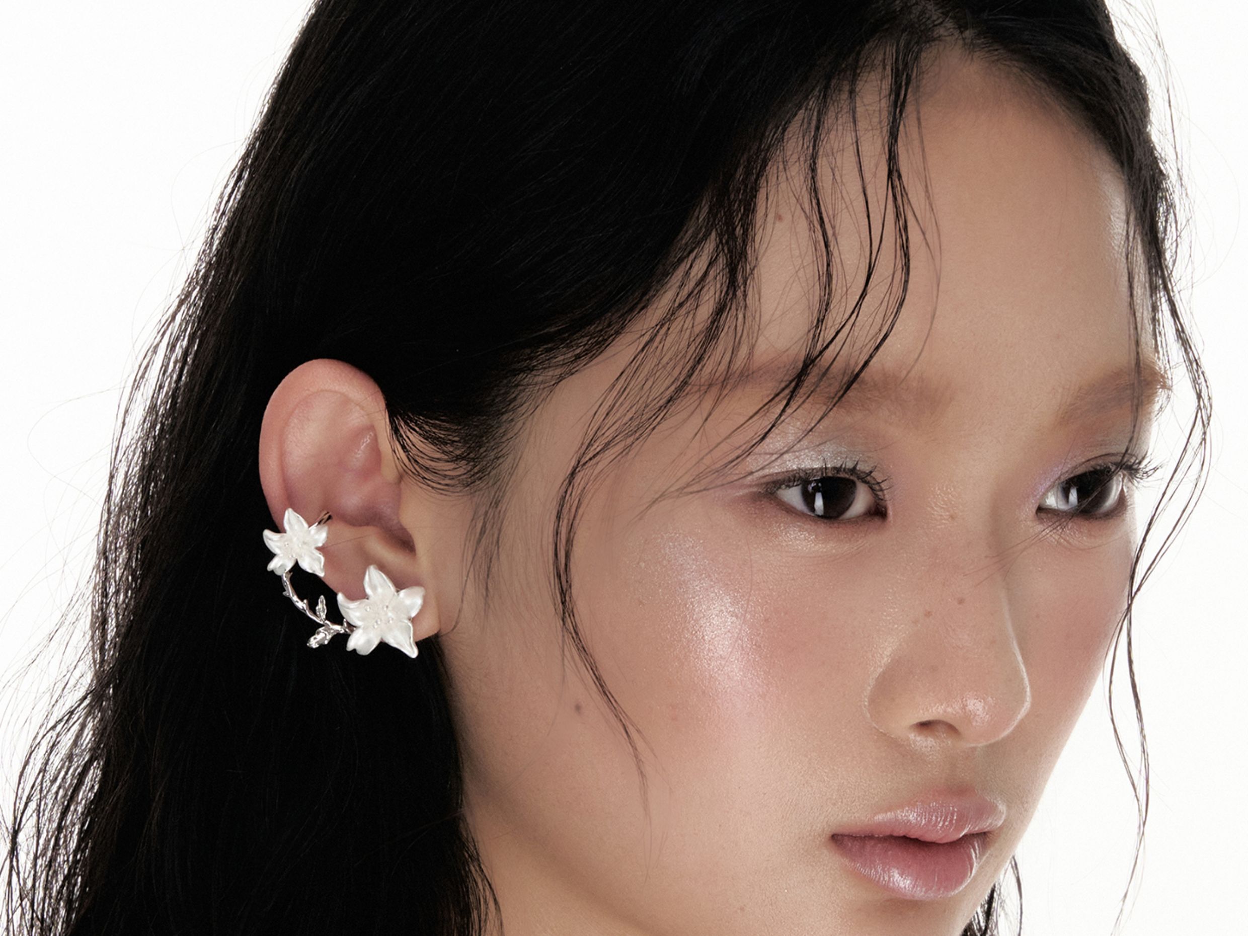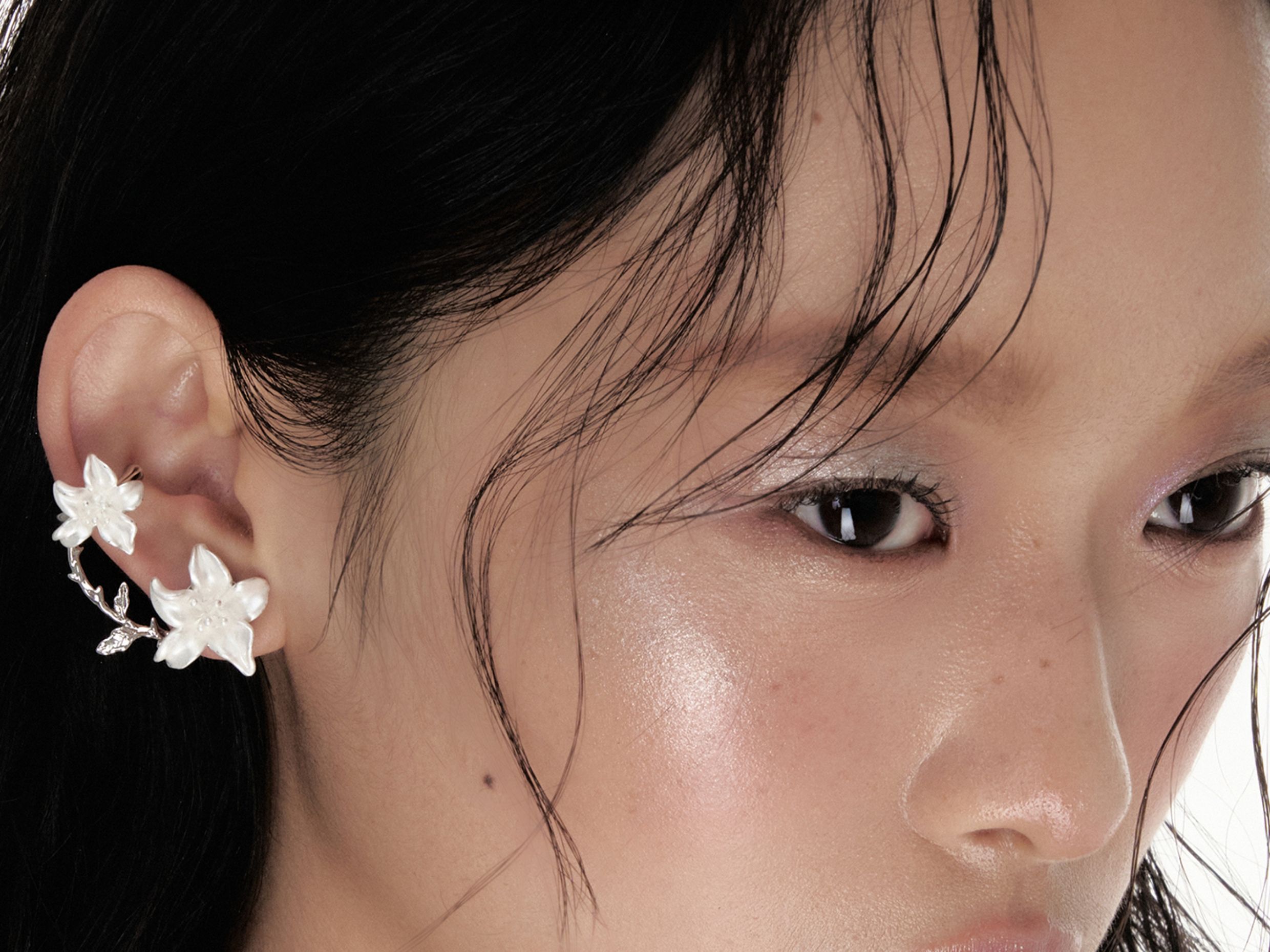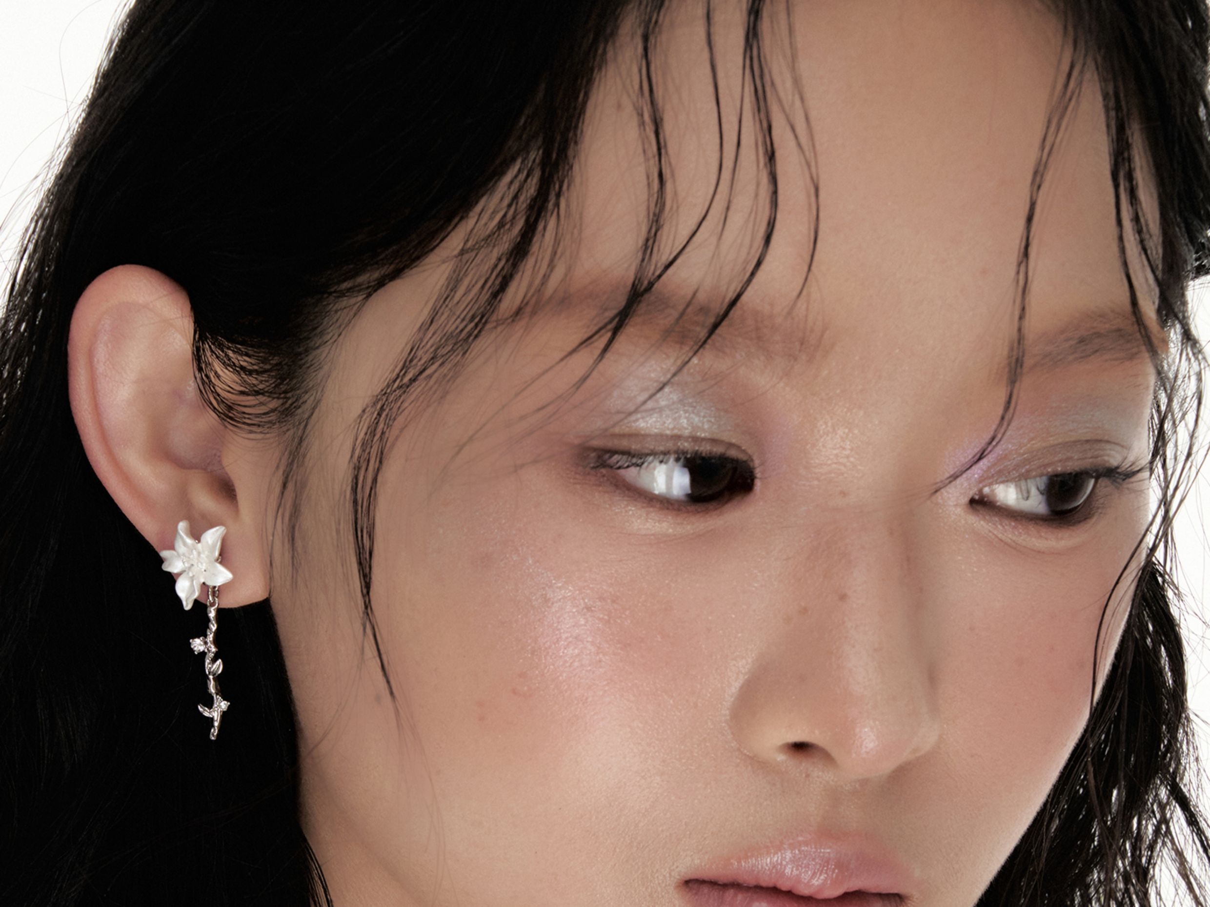 Sumiyaki Pale Whisper Series Pure White Cherry Blossom Necklace Niche Design Black and White Flower Dark Black Clavicle Chain
