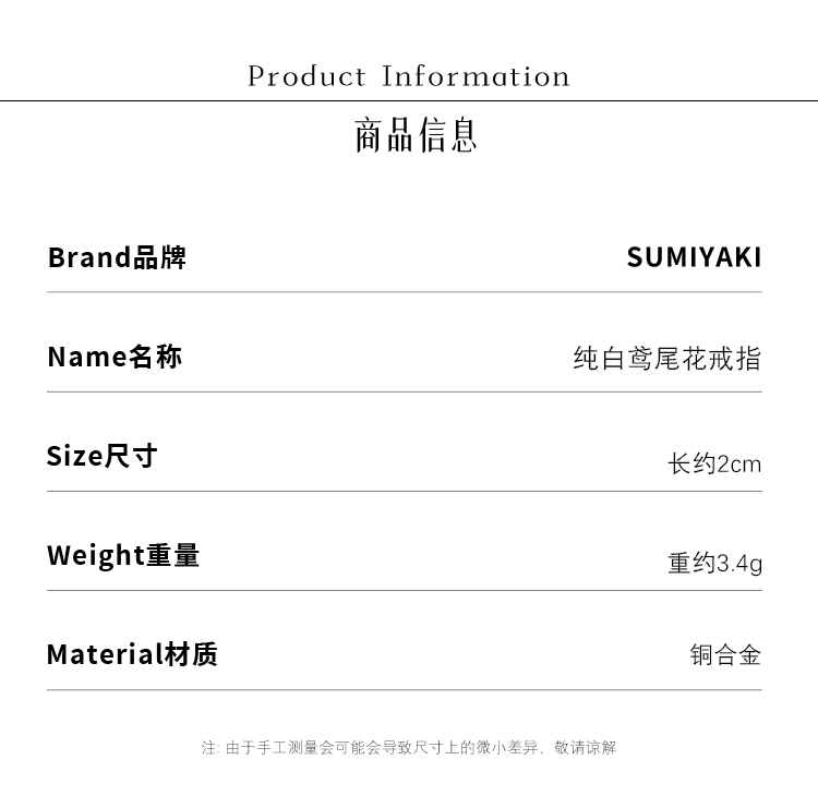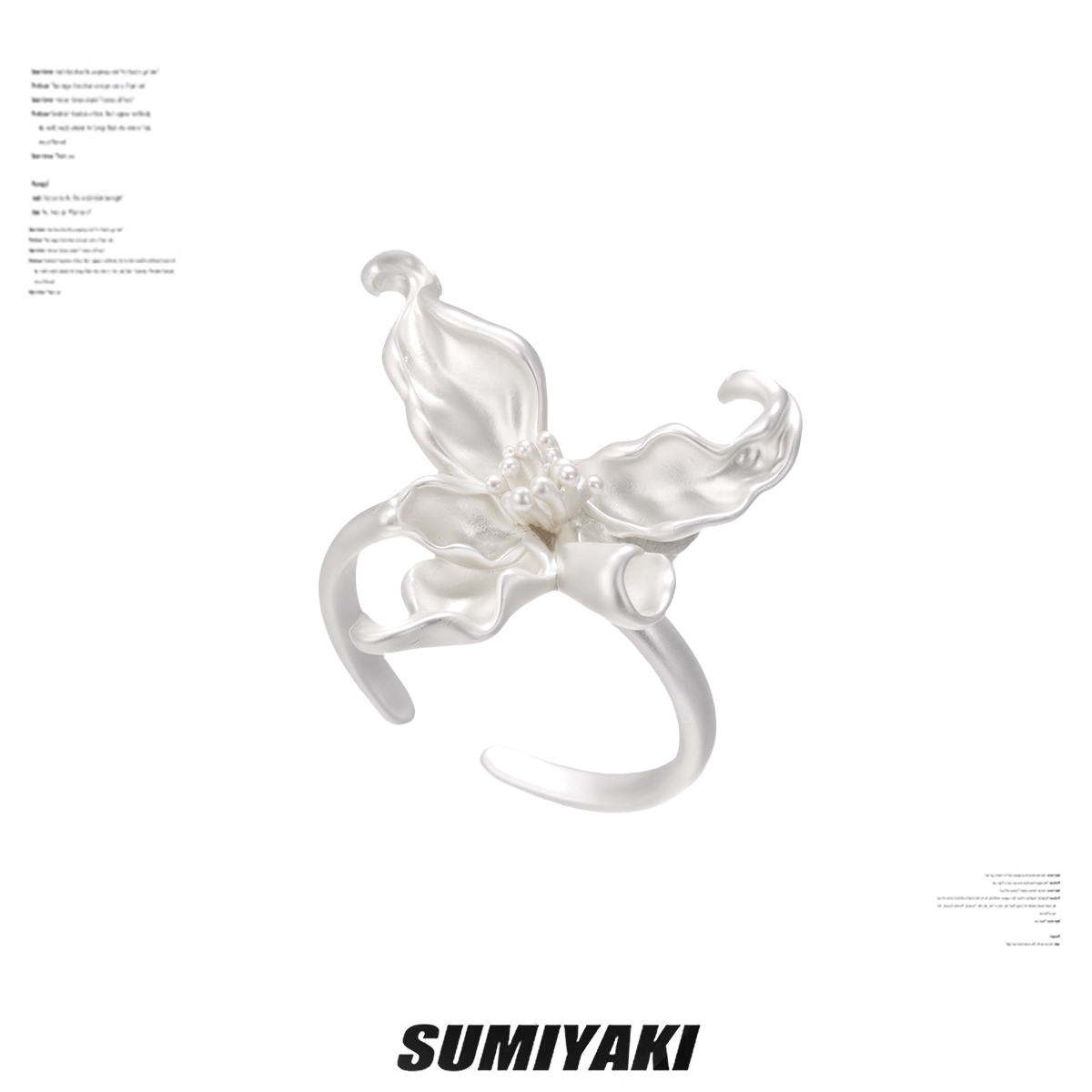 Sumiyaki Pale Whisper Series Pure White Iris Flower Ring for Women Original Niche Design Simple Ring