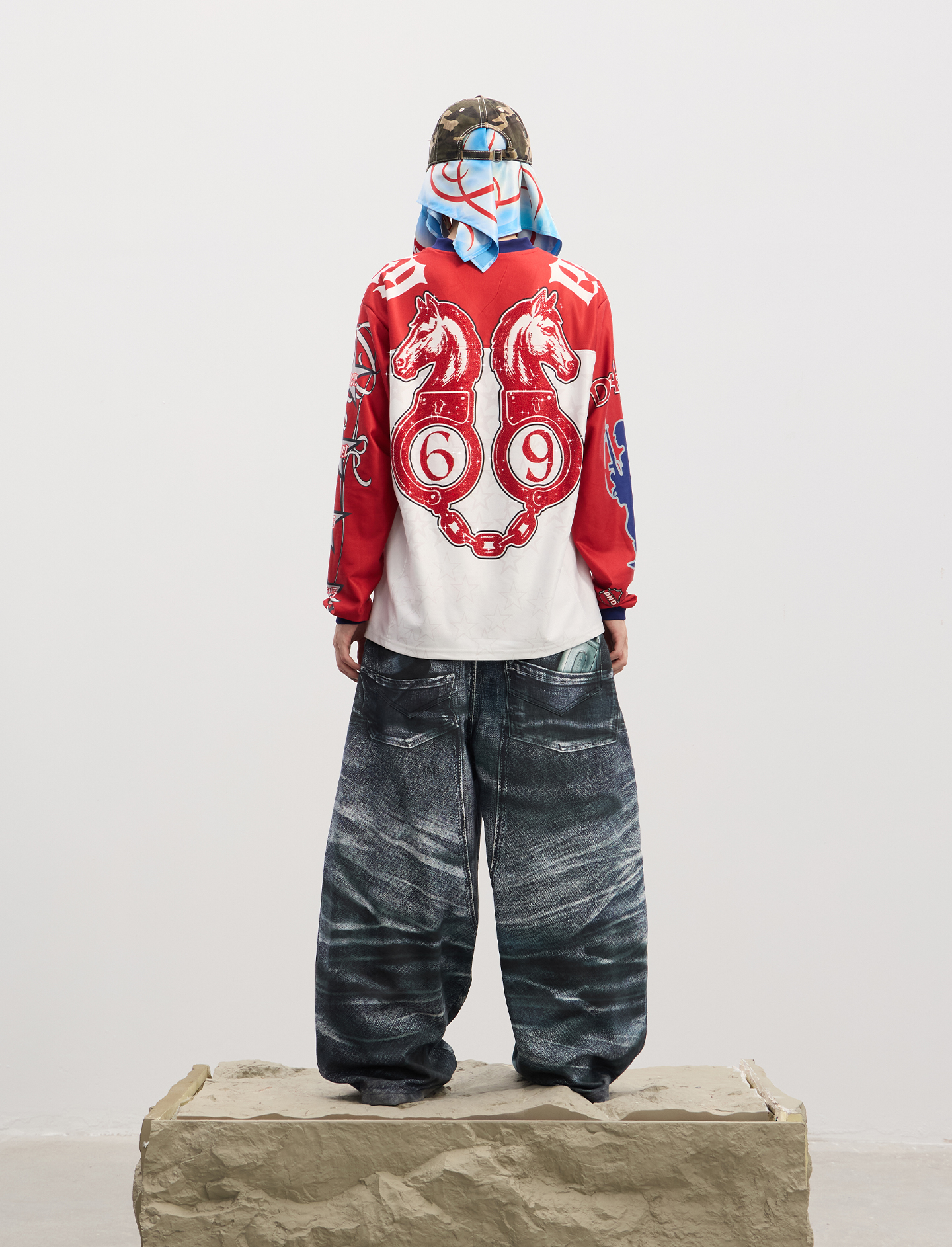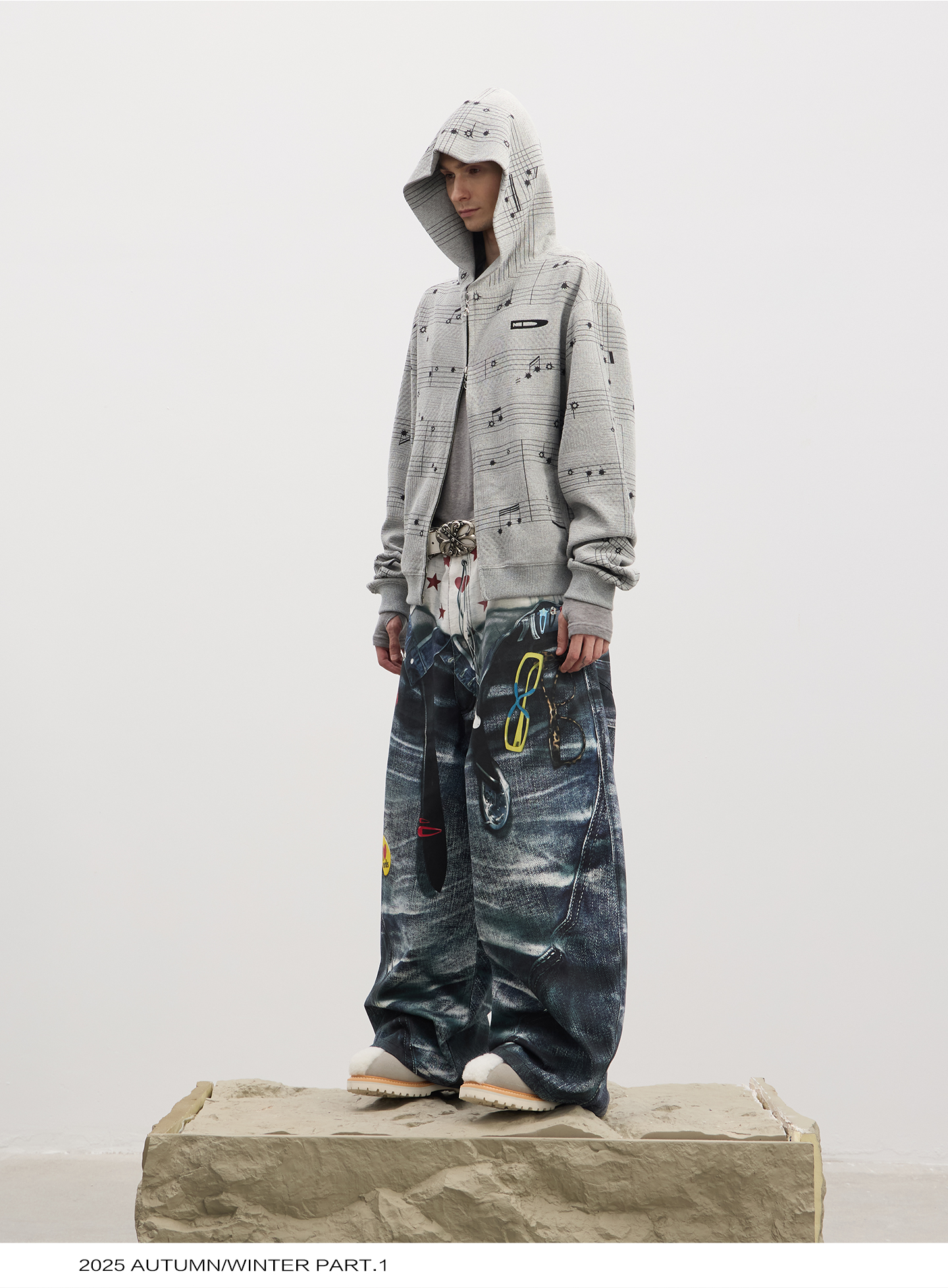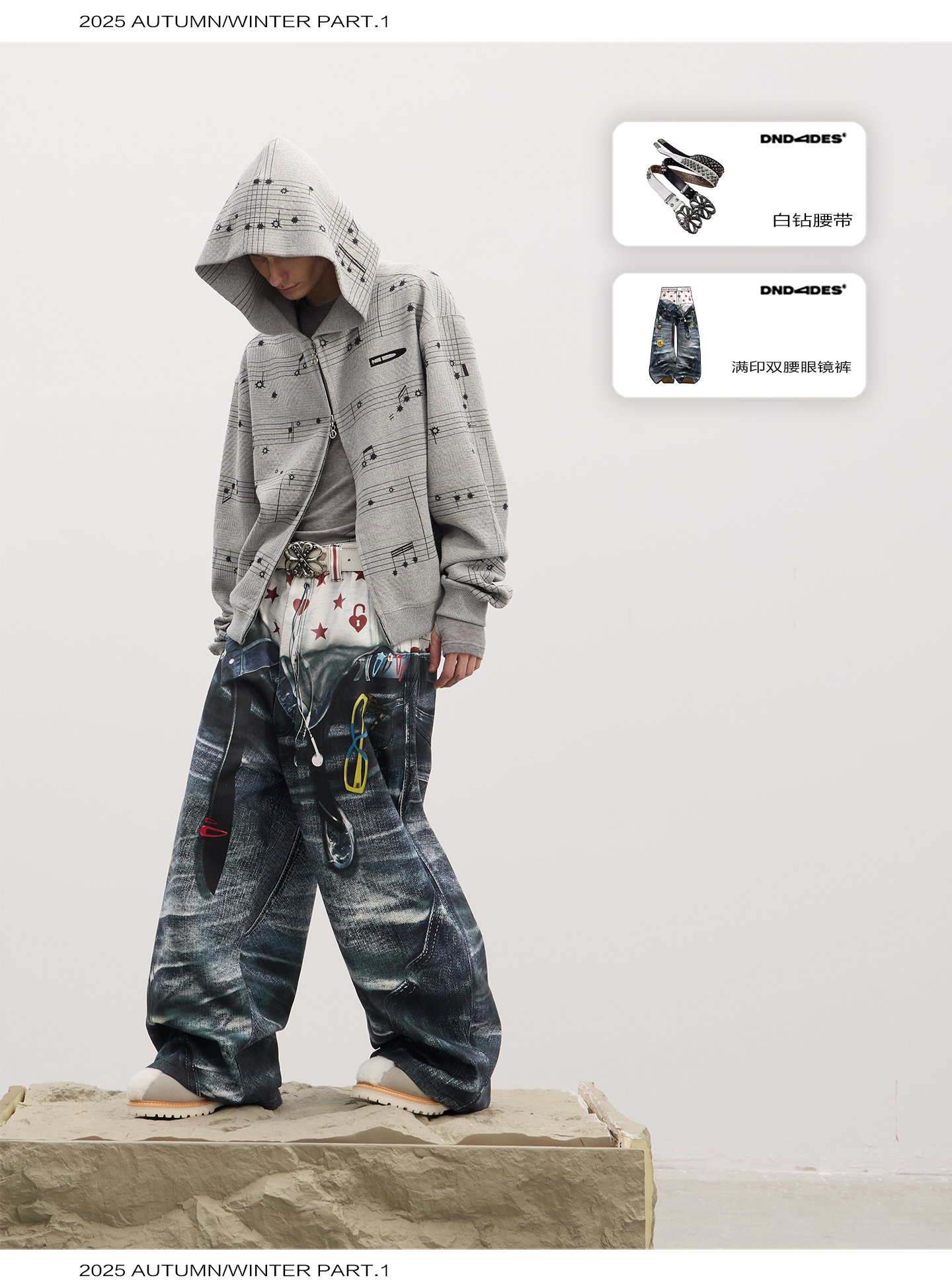 Dnd4Des American Original Design 3D Printed Trousers with Double Waistband Print, Scimitar Silhouette, Baggy Jeans