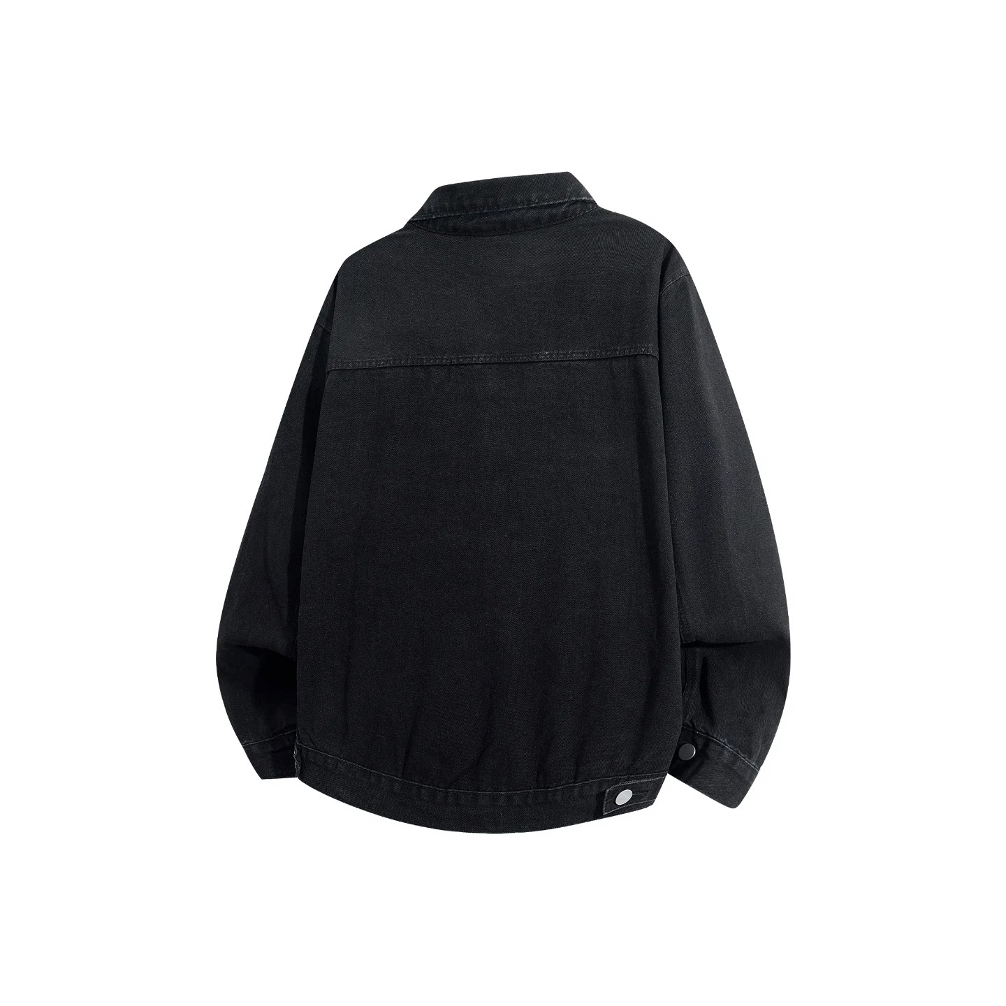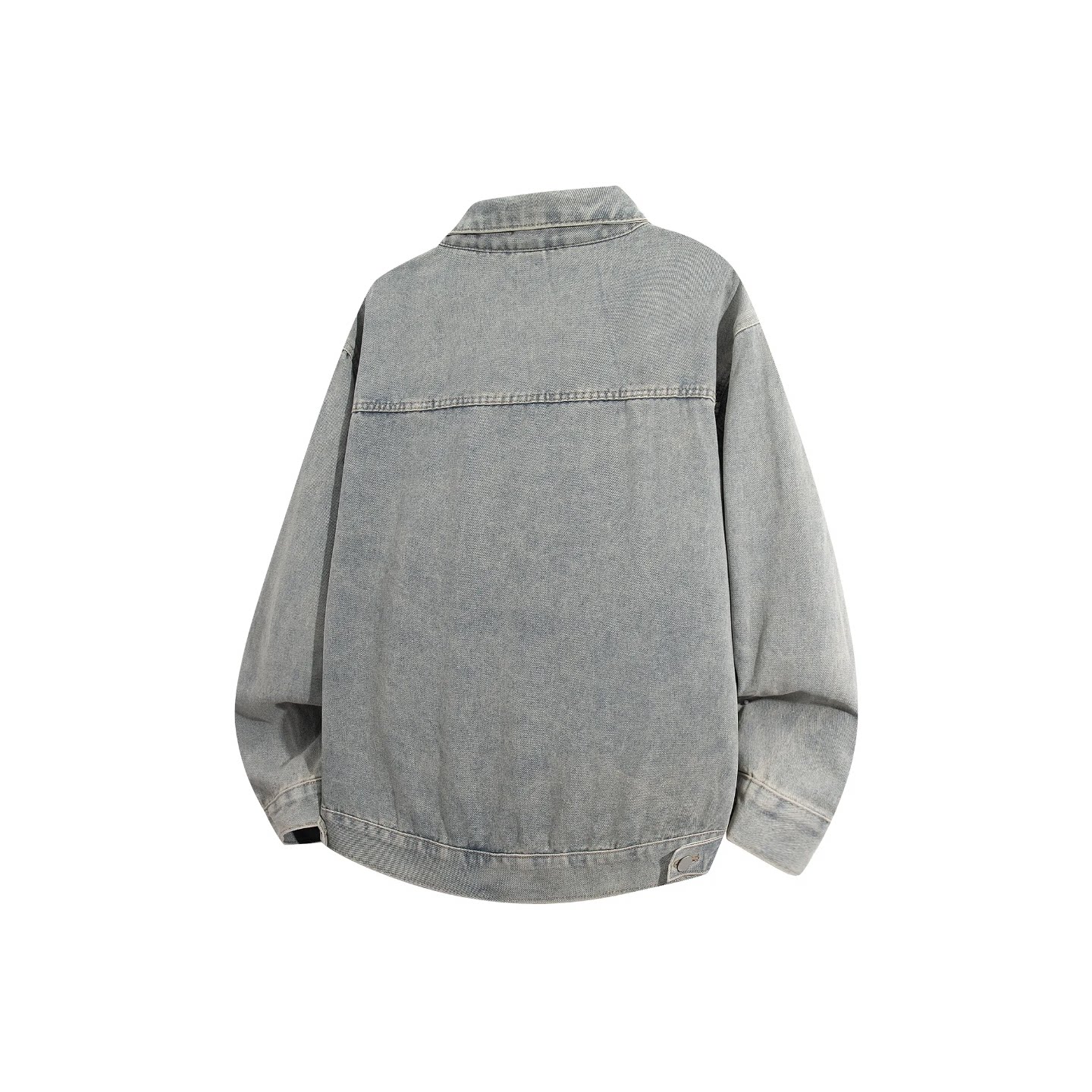 Loox Gz American Retro High Street Floral Shoulder Wash-Printed Lapel Campus Style Denim Jacket Unisex