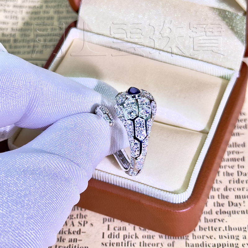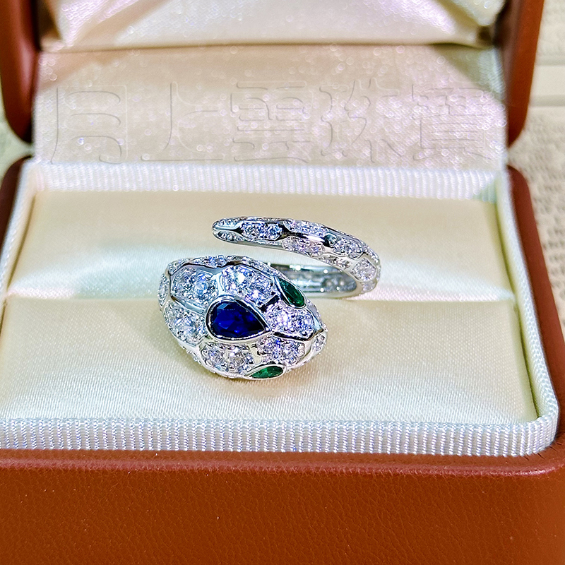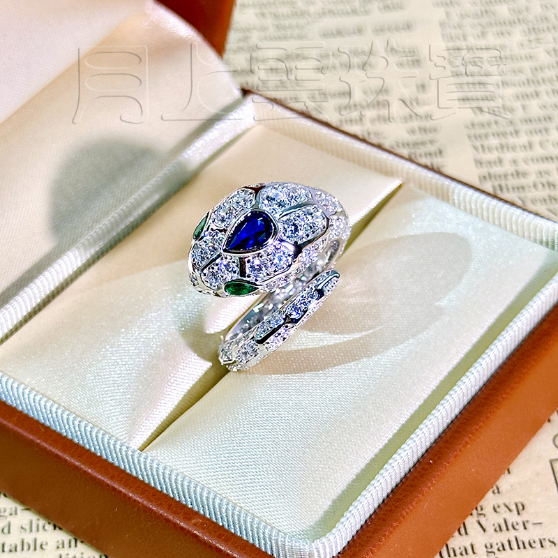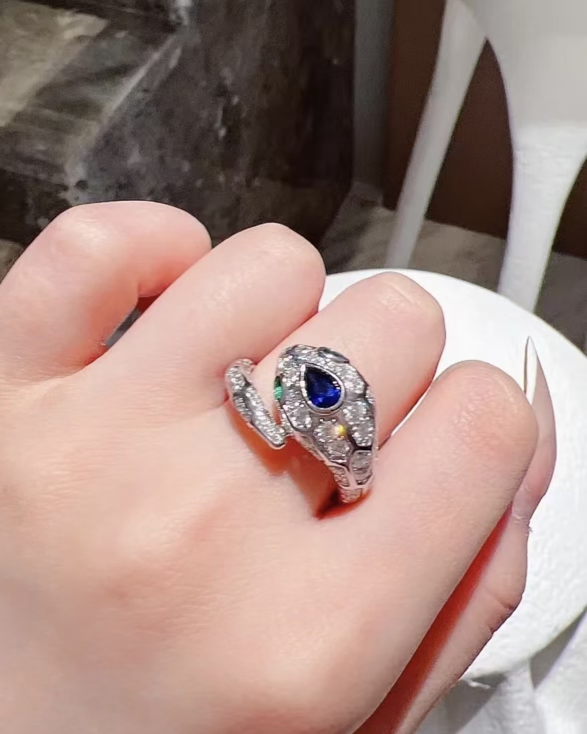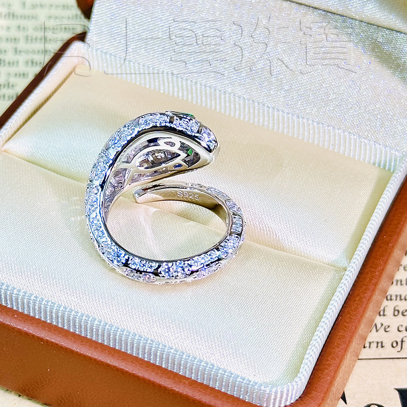 Snakehead Sapphire Ring Full Body S925 Sterling Silver Snake Full Diamond Ring Accessible Luxury Fancy Wedding Dinner Gift