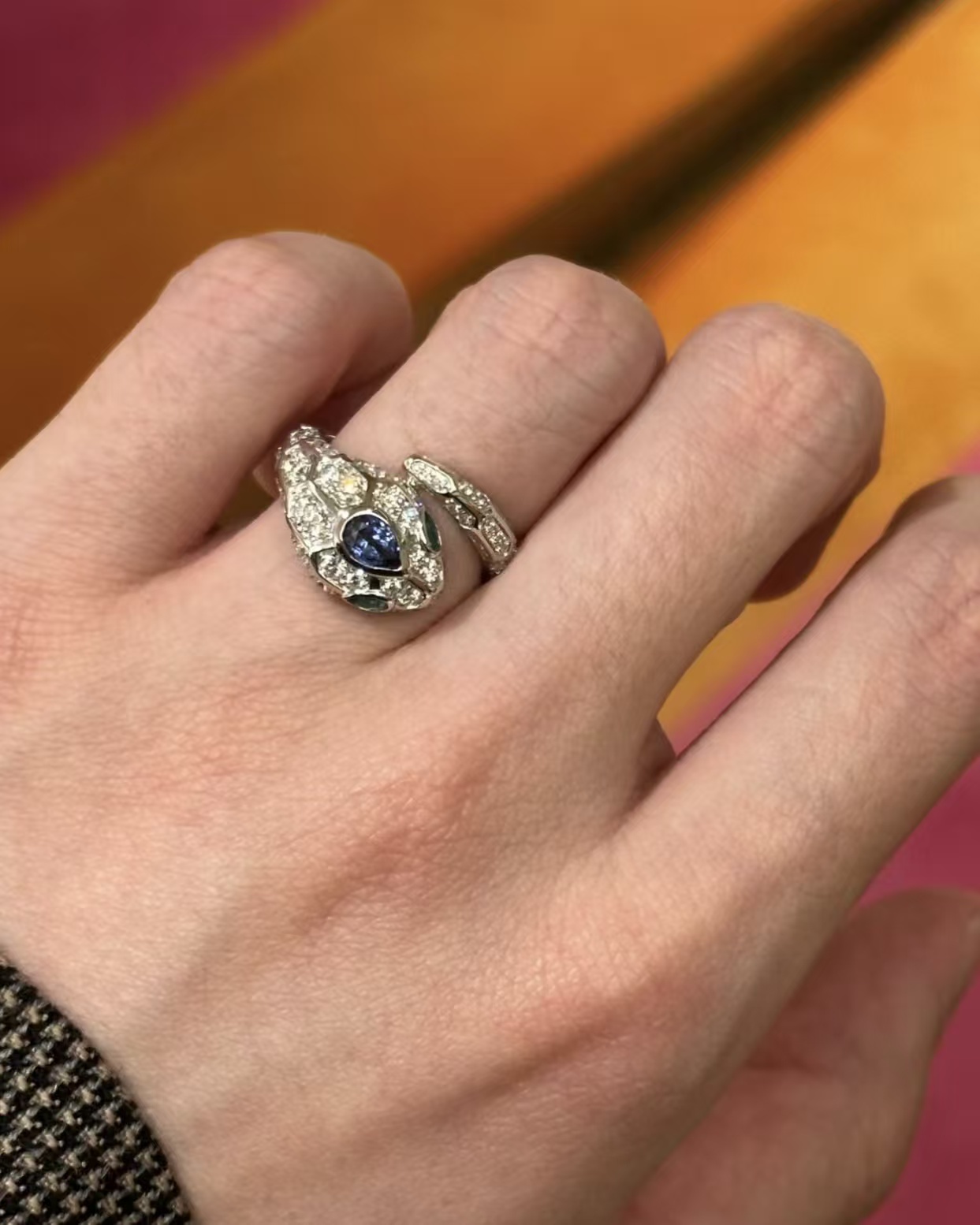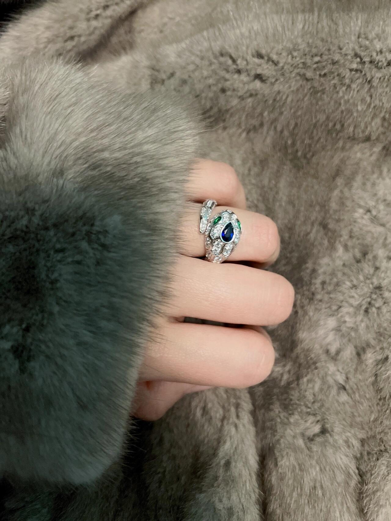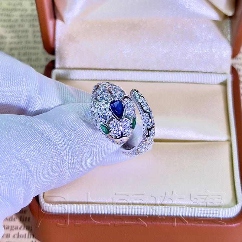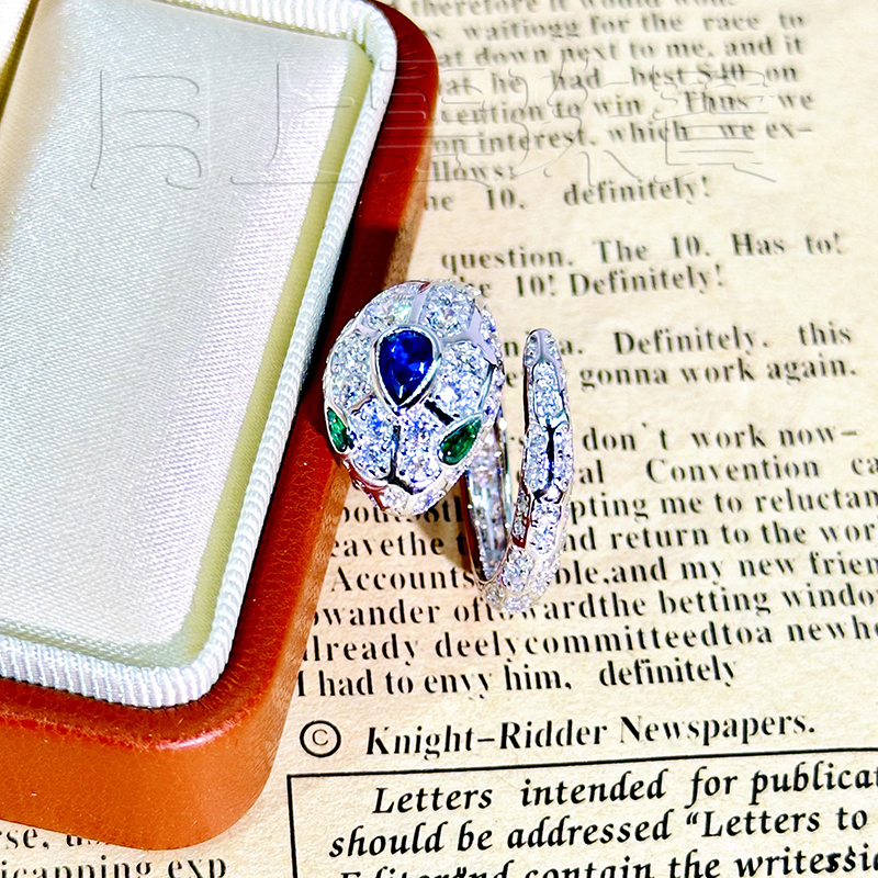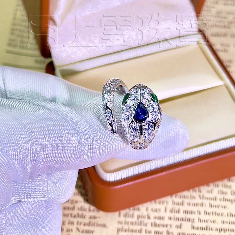 Snakehead Sapphire Ring Full Body S925 Sterling Silver Snake Full Diamond Ring Accessible Luxury Fancy Wedding Dinner Gift
