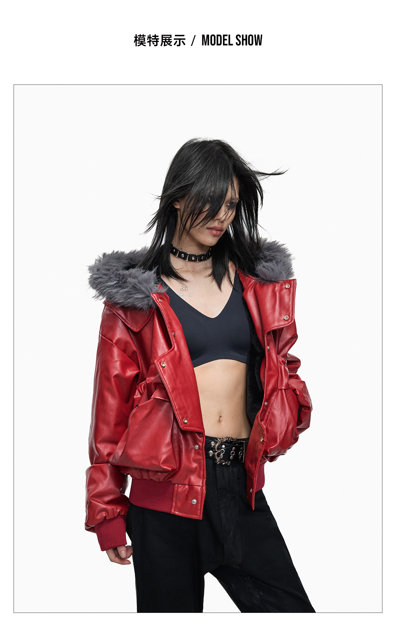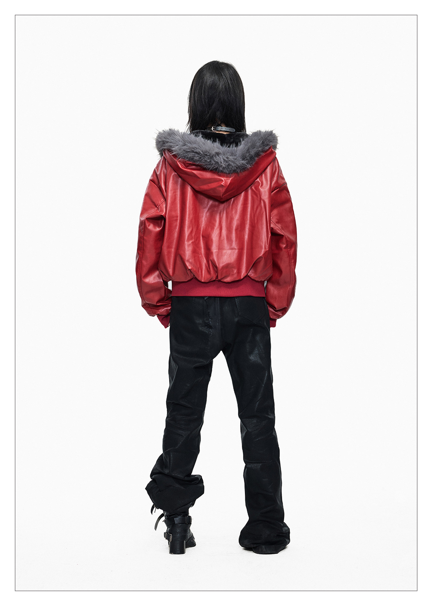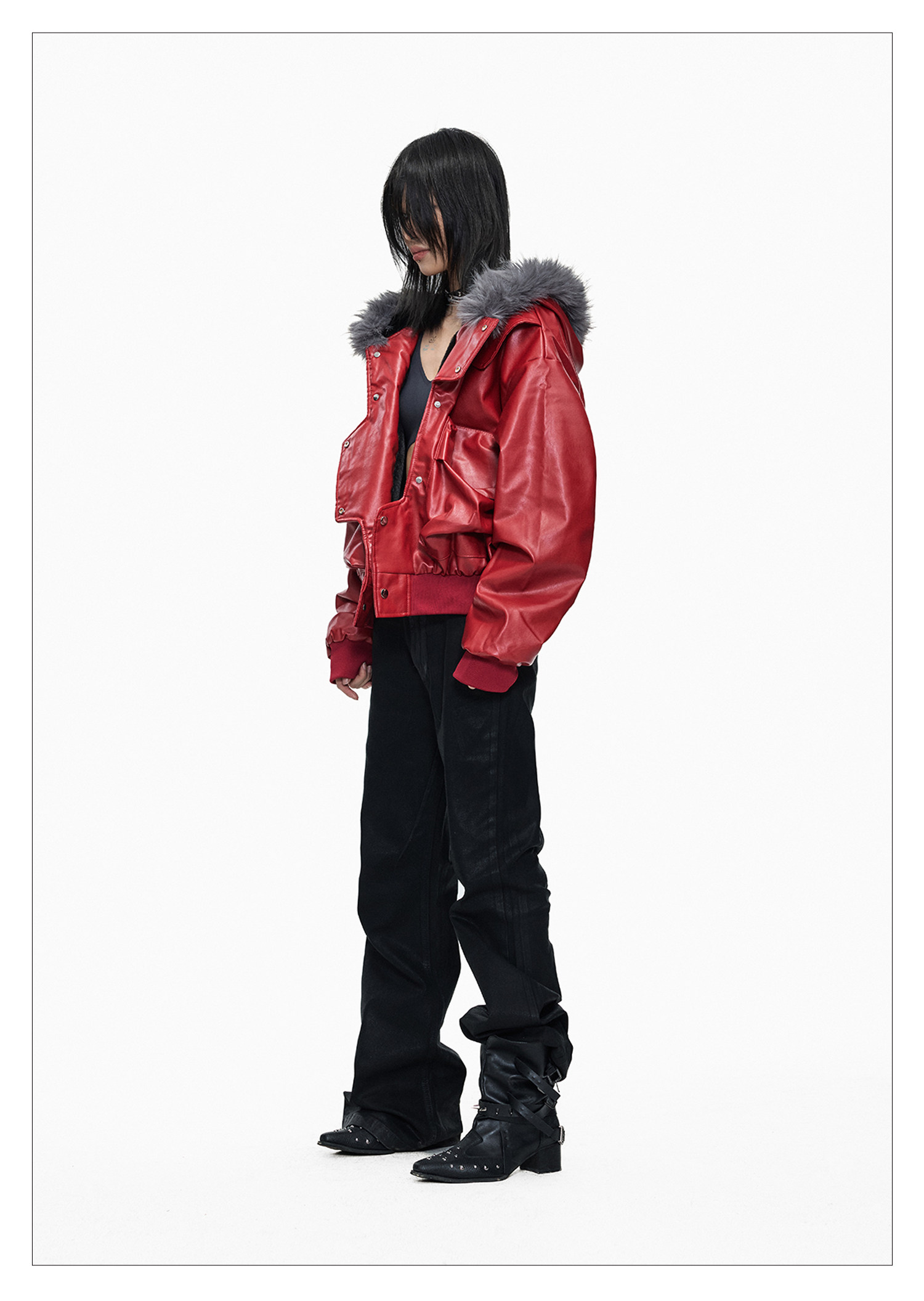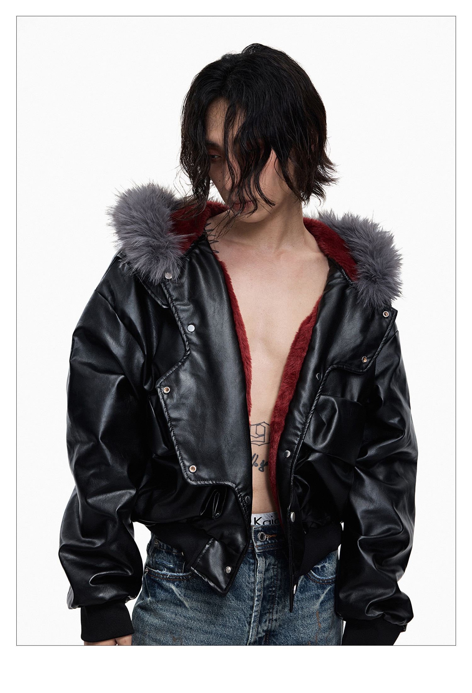 Lightinus* Deconstructed Fur Collar Thickened Cotton Jacket Winter Design Hooded Short Leather Jacket