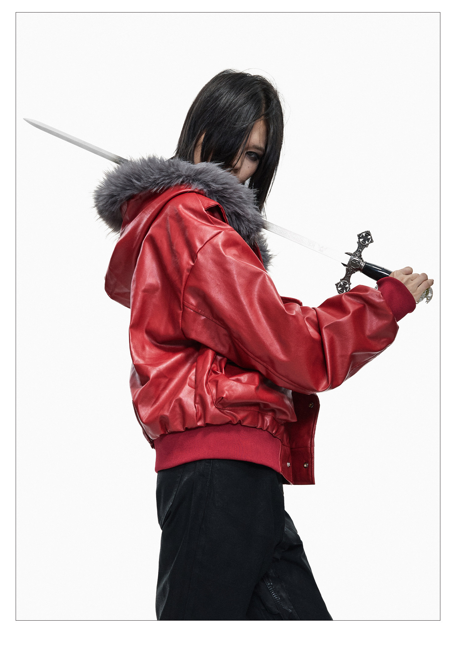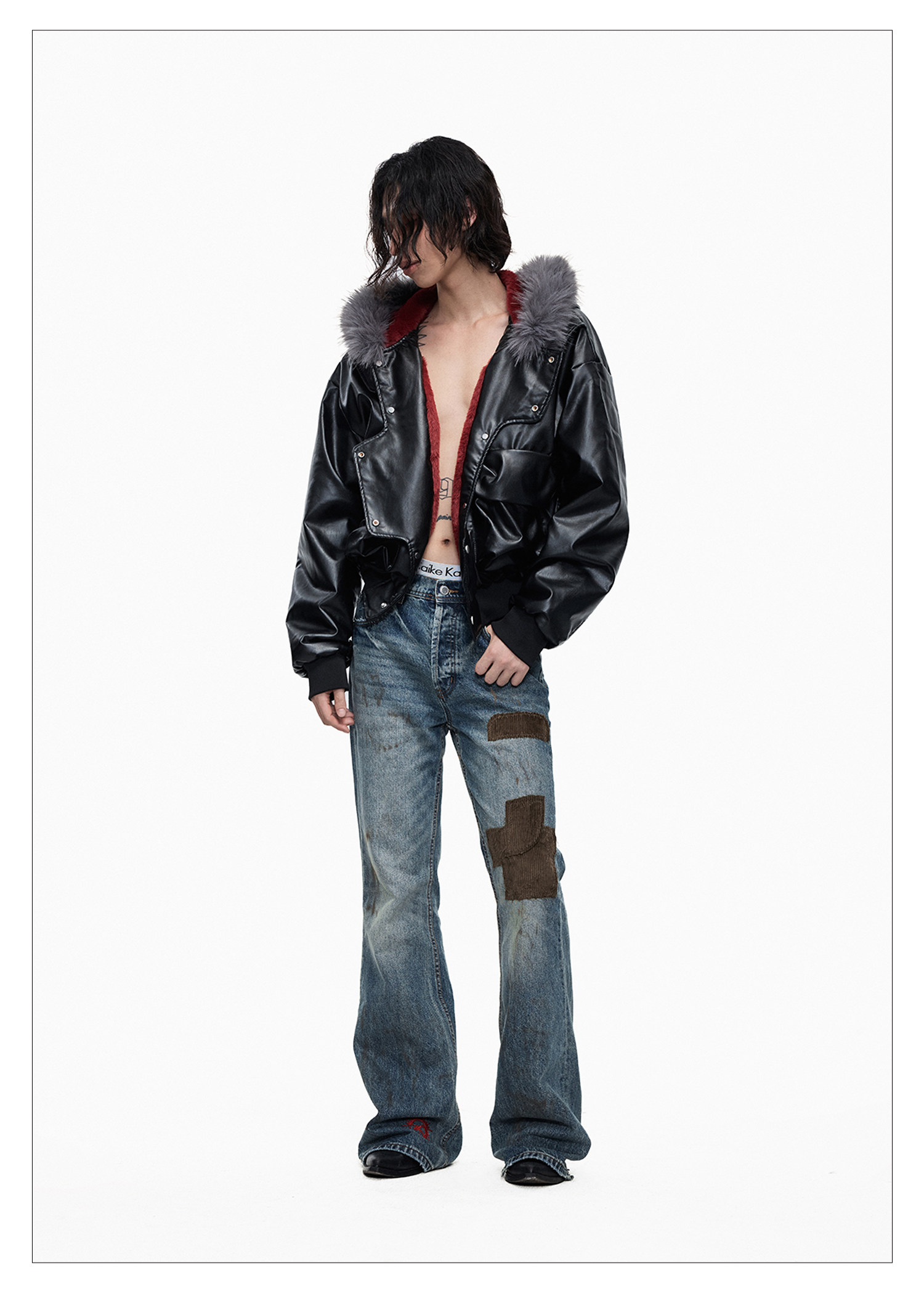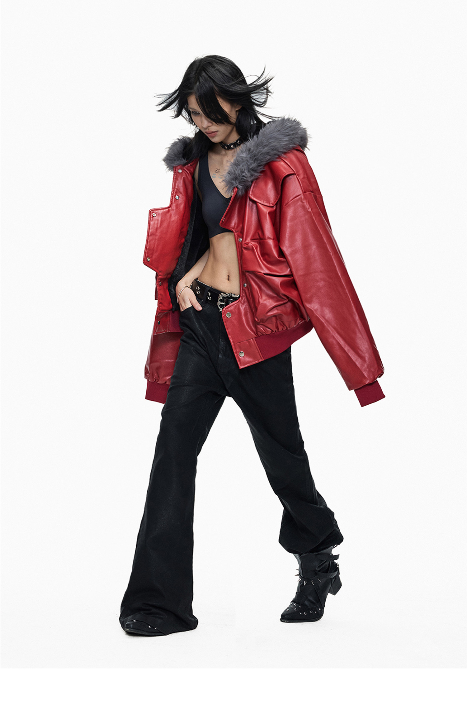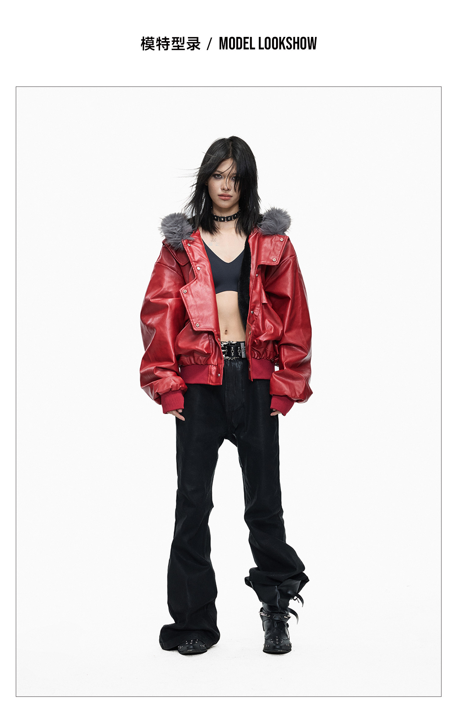 Lightinus* Deconstructed Fur Collar Thickened Cotton Jacket Winter Design Hooded Short Leather Jacket