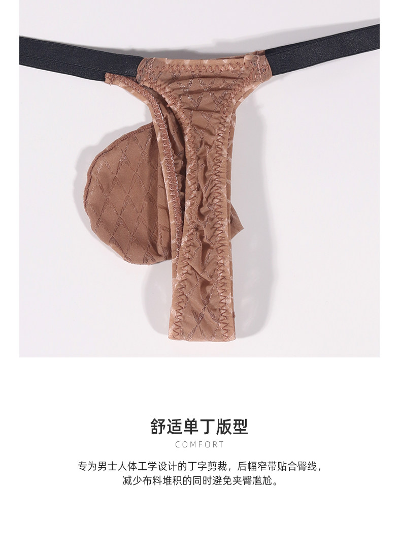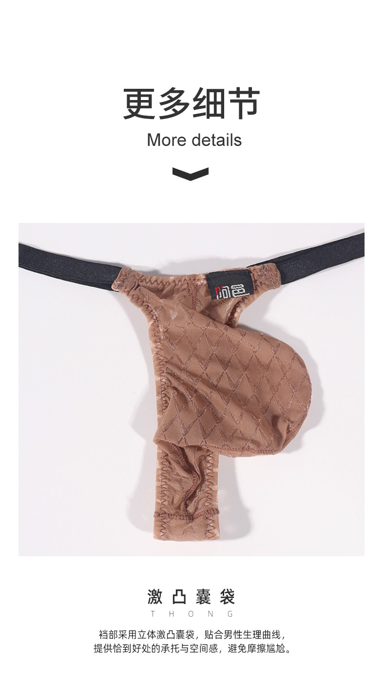 Ayi Men's Thong Underwear Ultra-Thin Ice Silk Transparent Sexy Comfortable U-Convex Pouch Tight Low-Waist Youth T-Pants