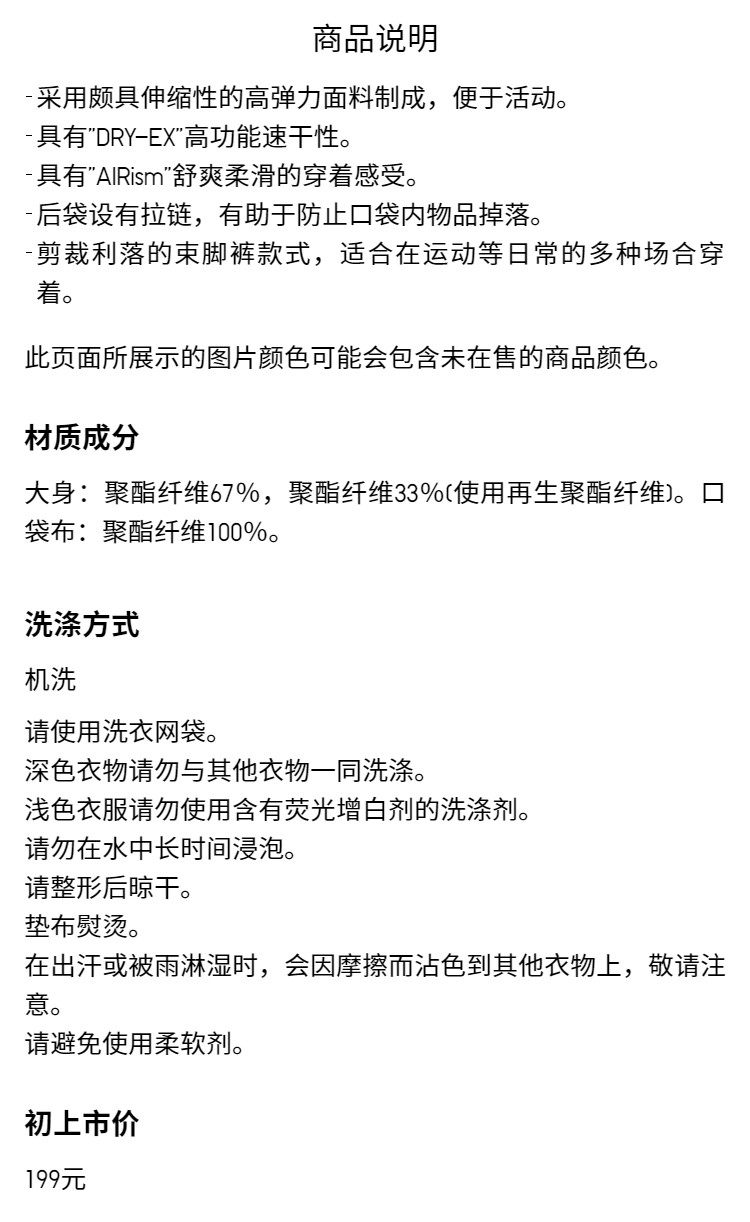 Regular Style Uniqlo Men's and Women's Dry-Ex Quick-Drying High-Elastic Sports Pants with Cuffed Hems and Super Stretchy Pants 475384