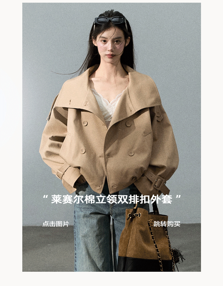 Oakmoo/ "Through the Oak Forest" Lyocell Cotton Stand Collar Windbreaker Jacket Double-Breasted Short Coat Top for Women