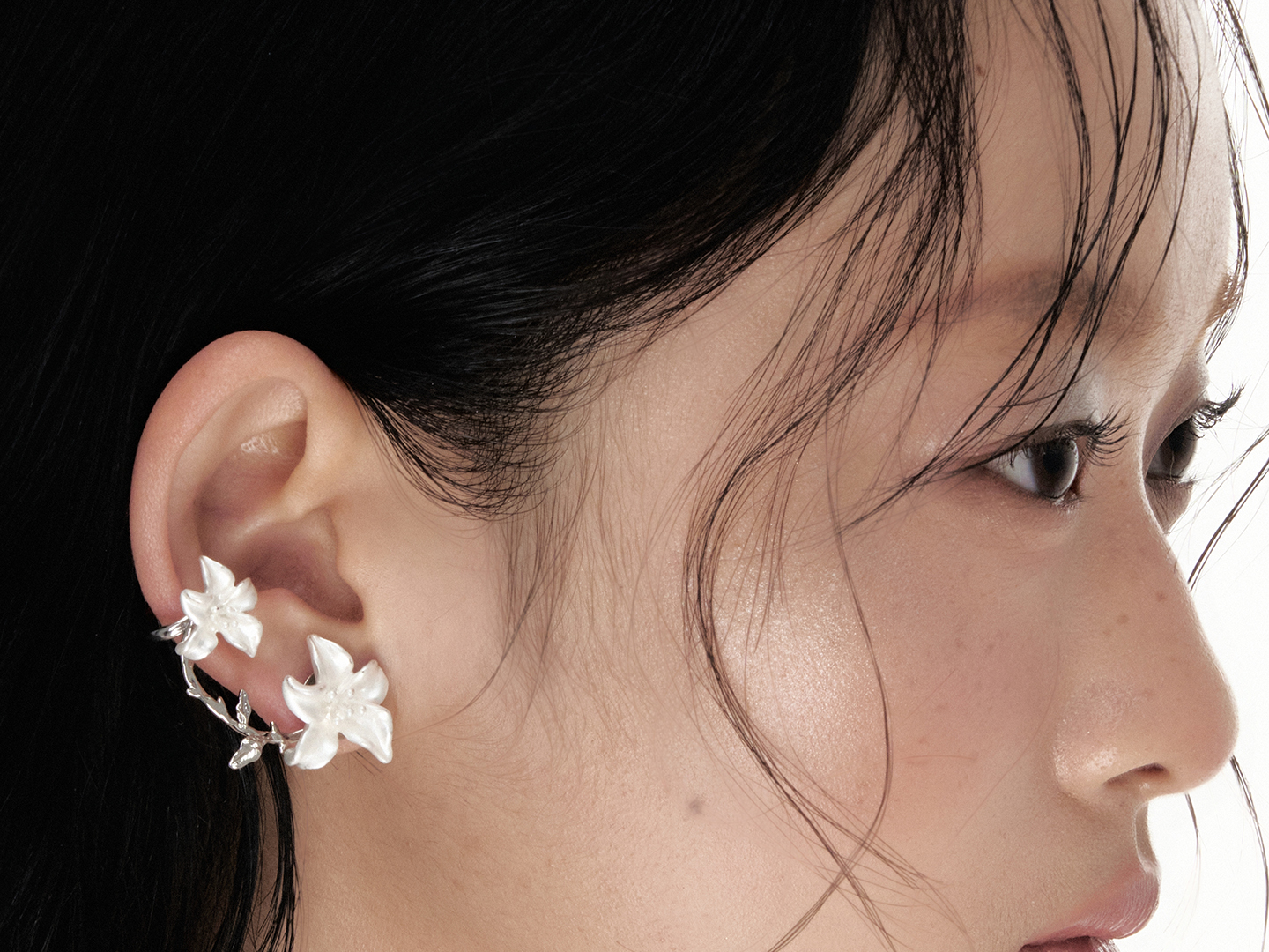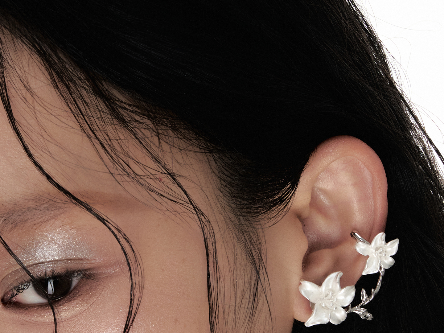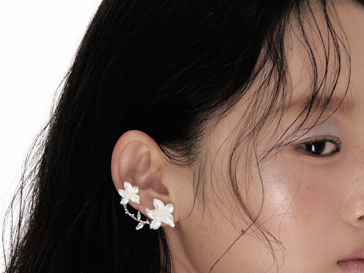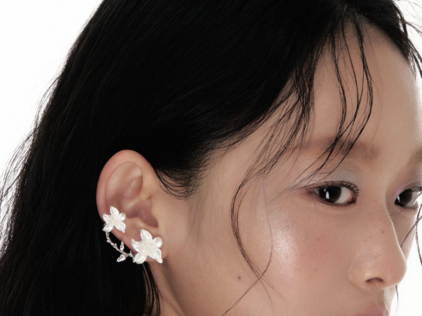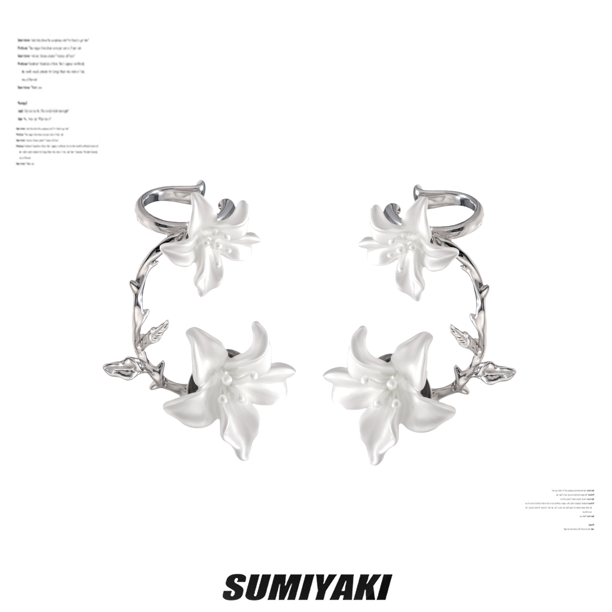 Sumiyaki Pale Whisper Series Pure White Twin Flower Earrings Ear Clips Integrated Earrings Niche Design Earrings