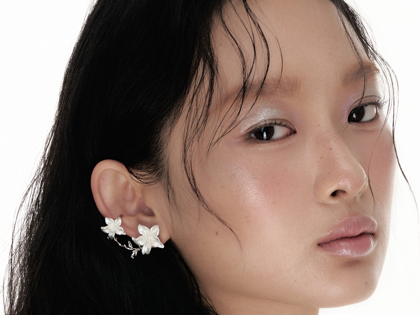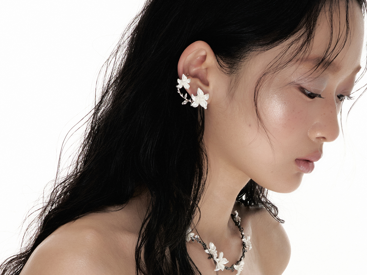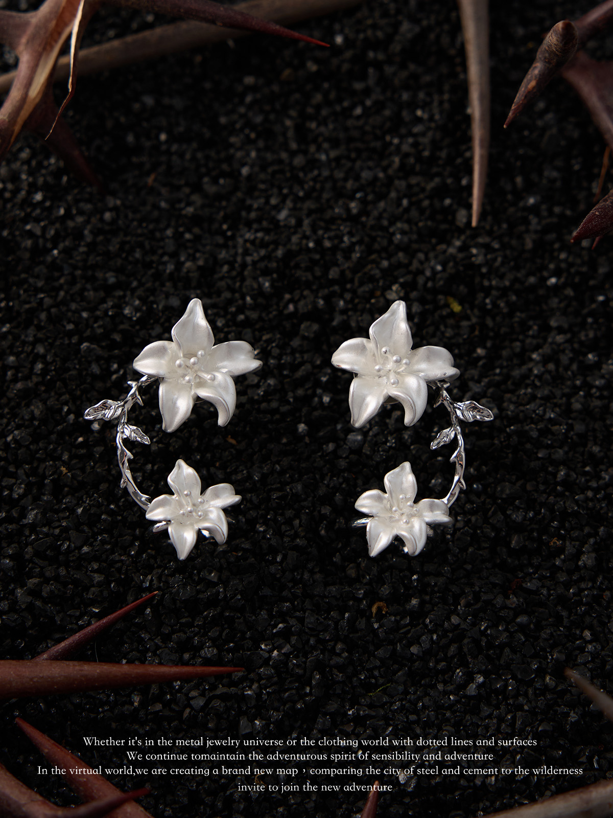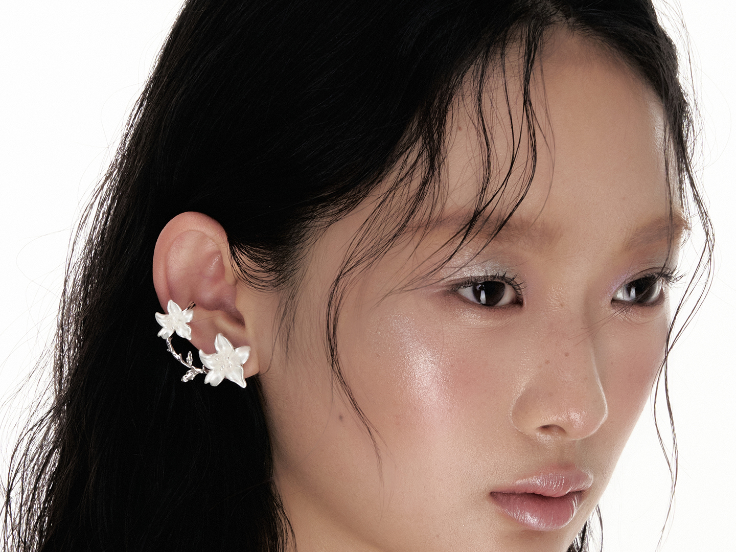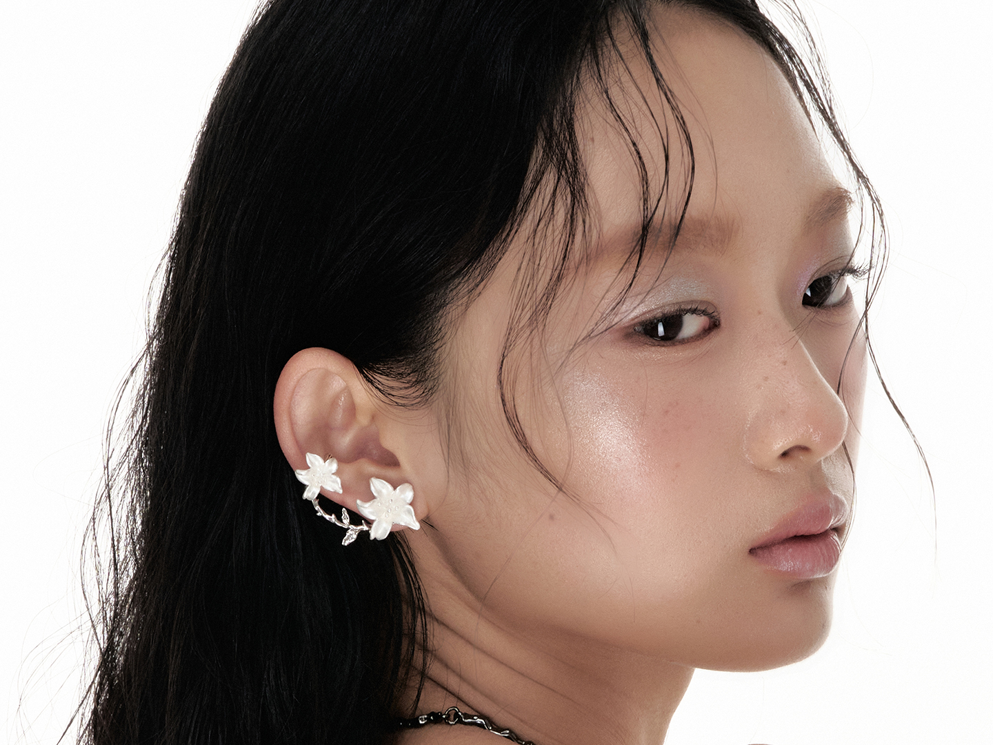 Sumiyaki Pale Whisper Series Pure White Twin Flower Earrings Ear Clips Integrated Earrings Niche Design Earrings