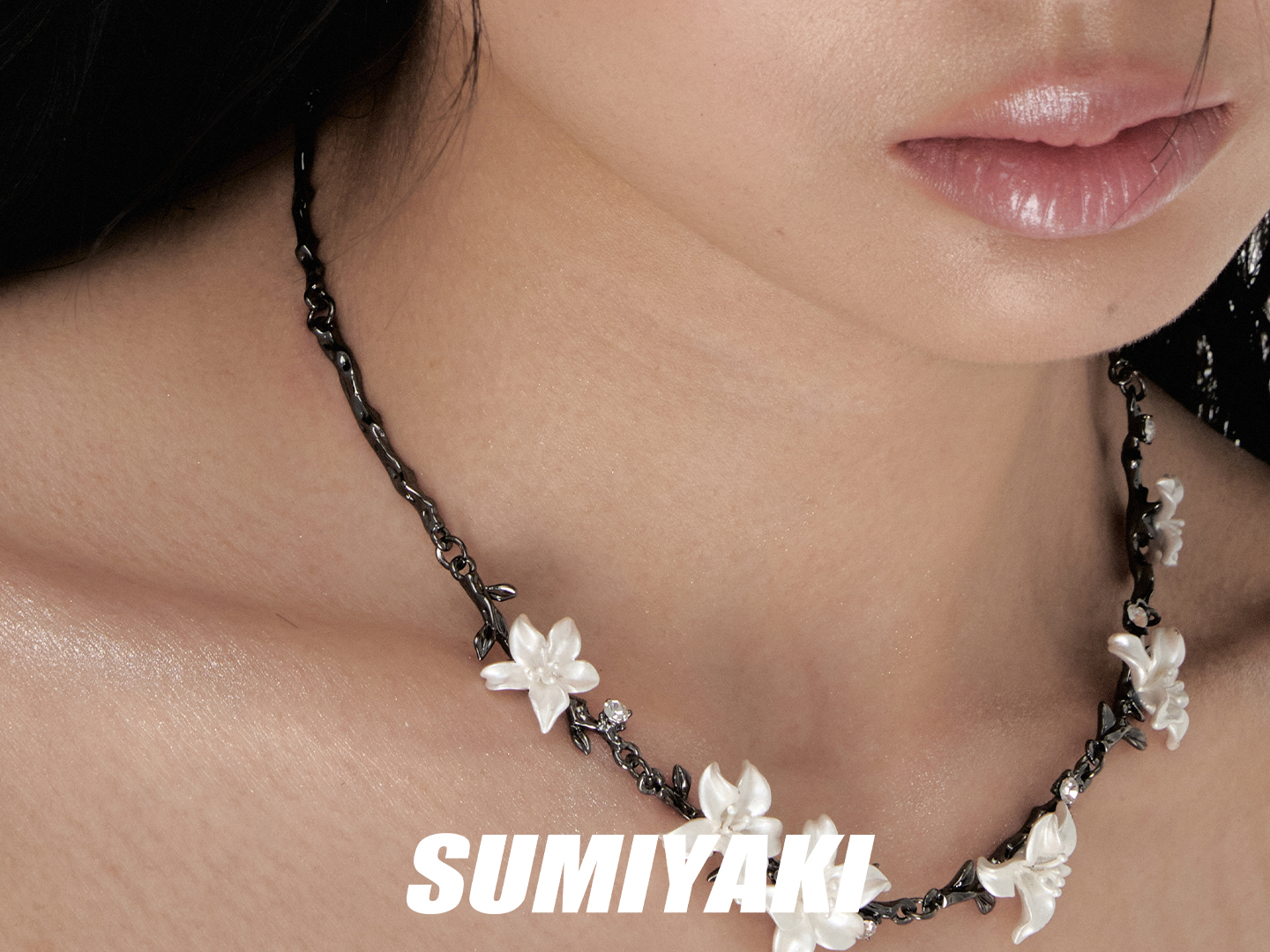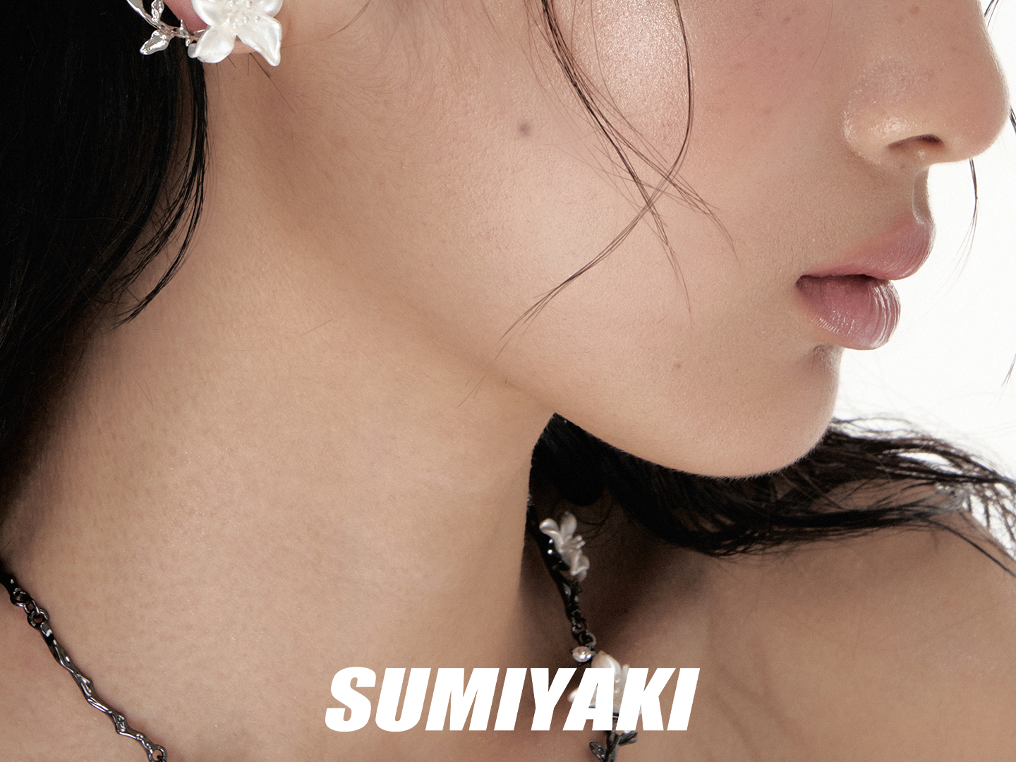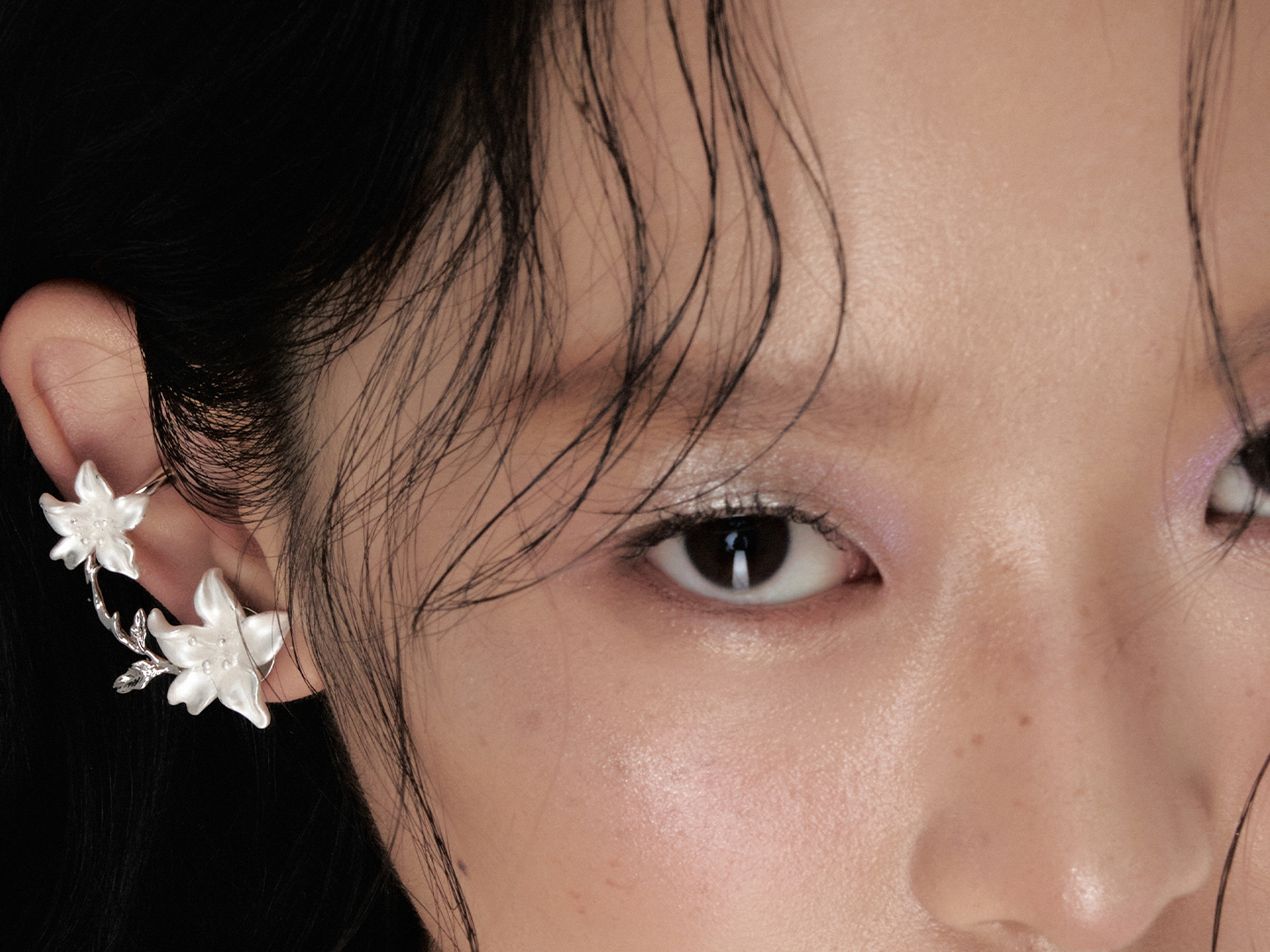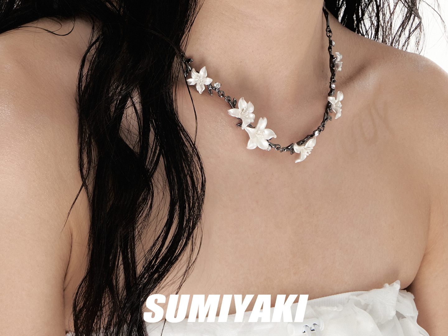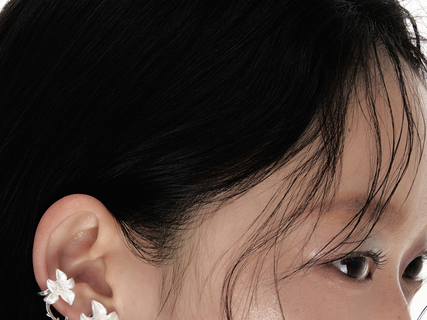 Sumiyaki Pale Whisper Series Pure White Twin Flower Earrings Ear Clips Integrated Earrings Niche Design Earrings
