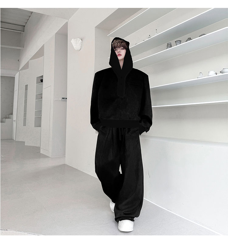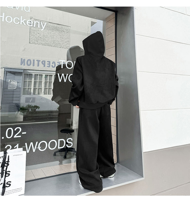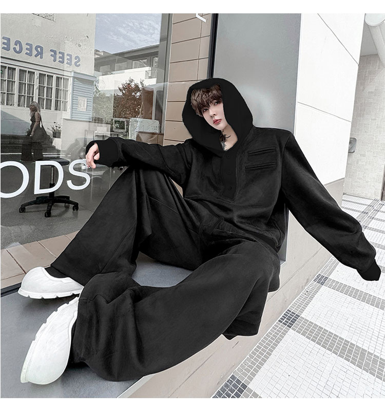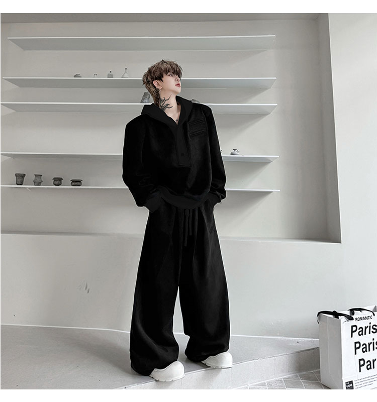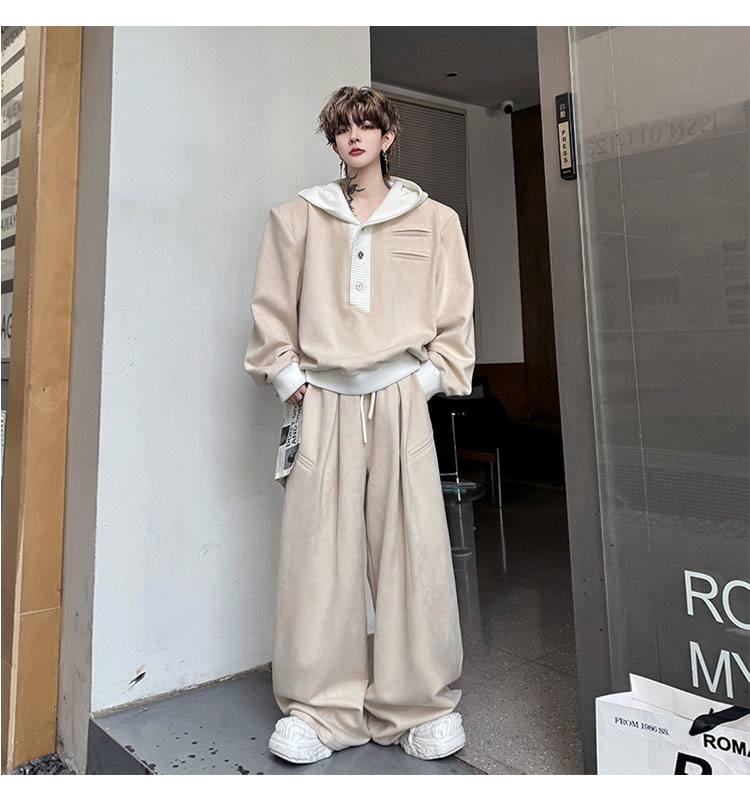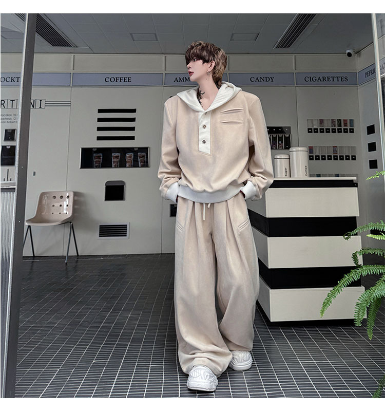Color-Blocked Hooded Sweatshirt Sports Casual Set with a High-End Feel, a Set of Wide-Leg Pants, Autumn Two-Piece Set, Trendy Brand