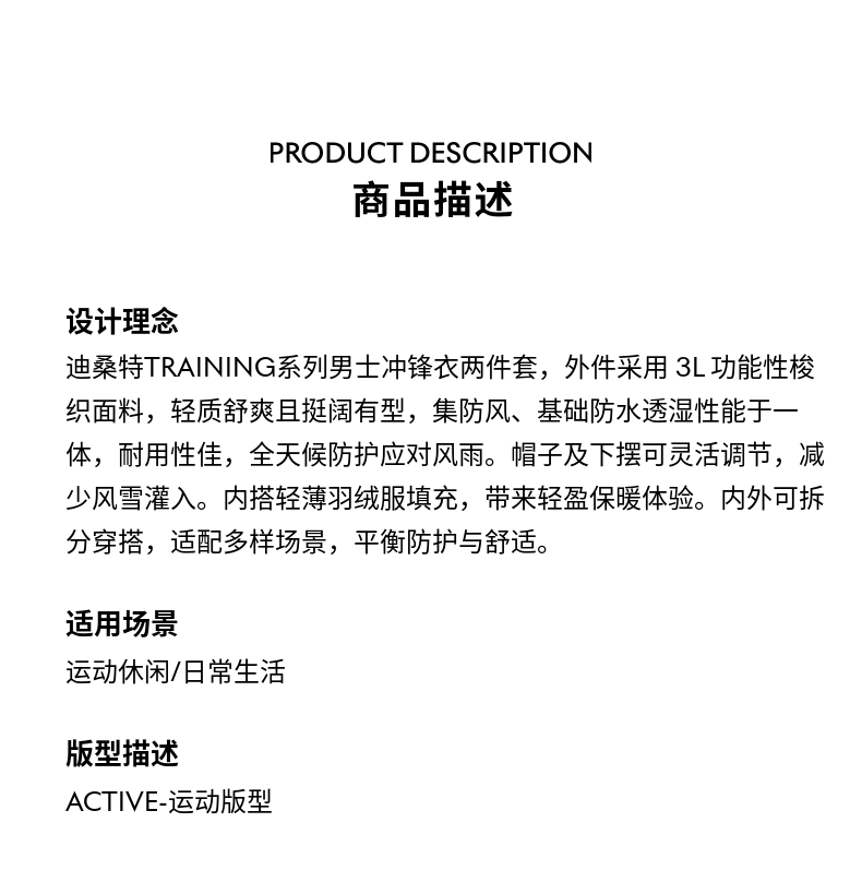 [Same Style as William Chan] Descente Descente down Waterproof and Breathable Three-In-One Jacket Two-Piece Set for Men