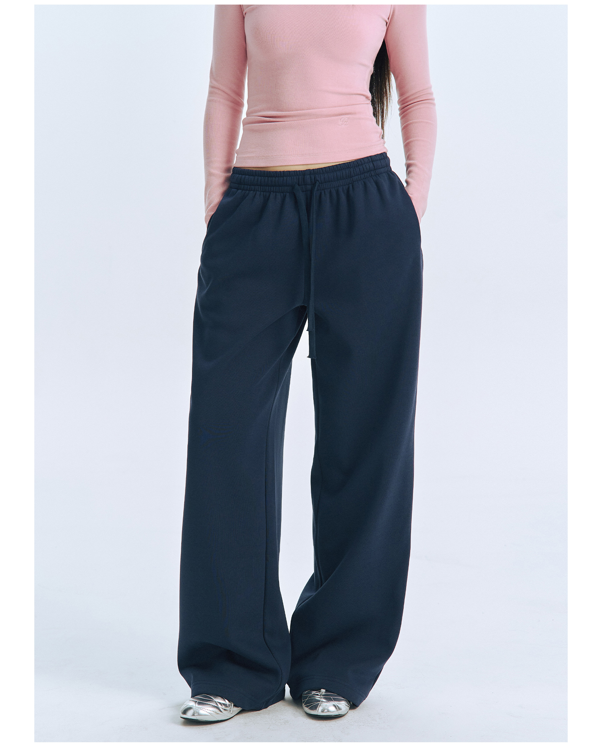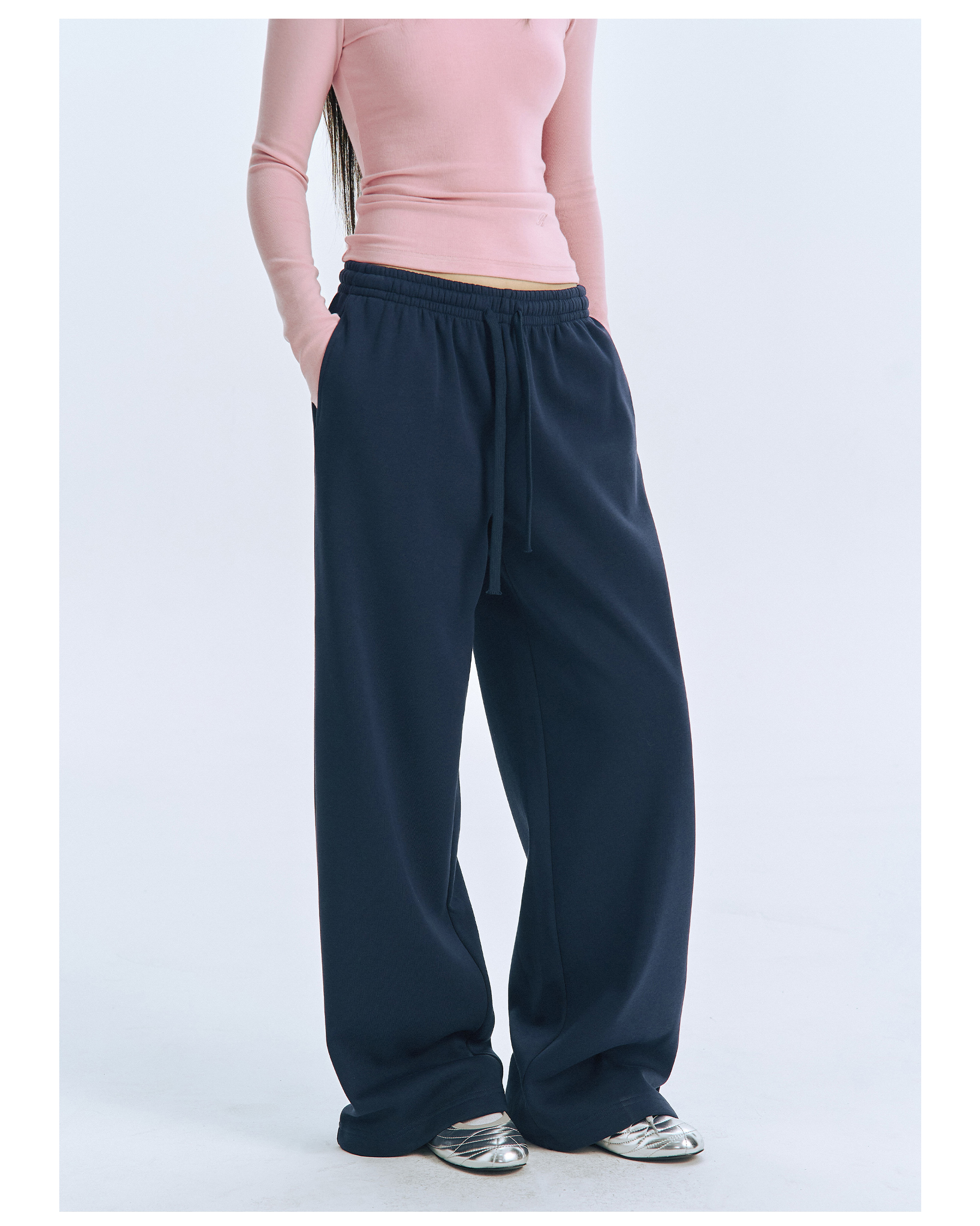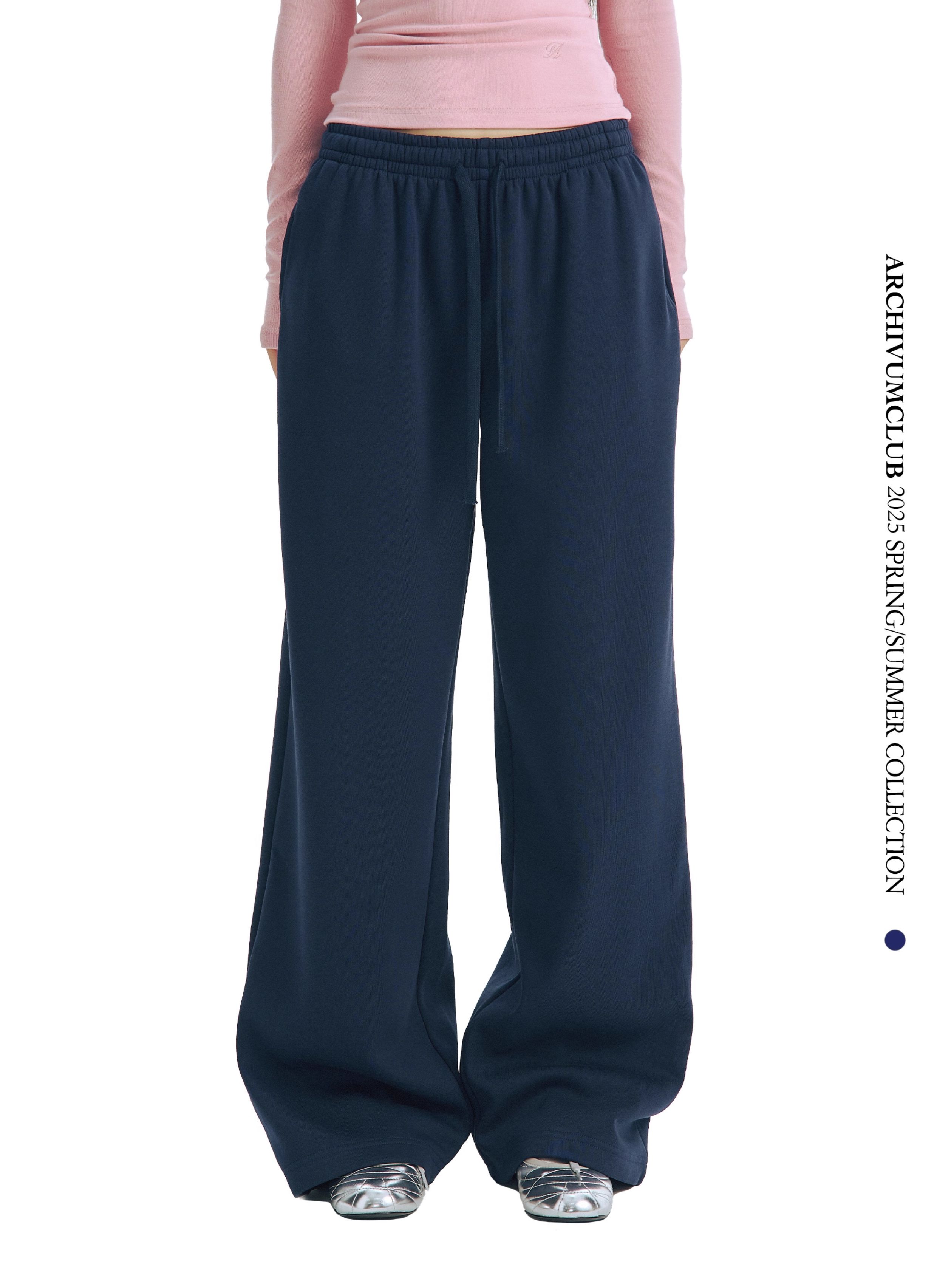 Archivum Navy Blue Versatile Low-Waist Thin Fleece Drawstring Straight-Leg Casual Lazy Walking Sports Sweatpants Long Pants