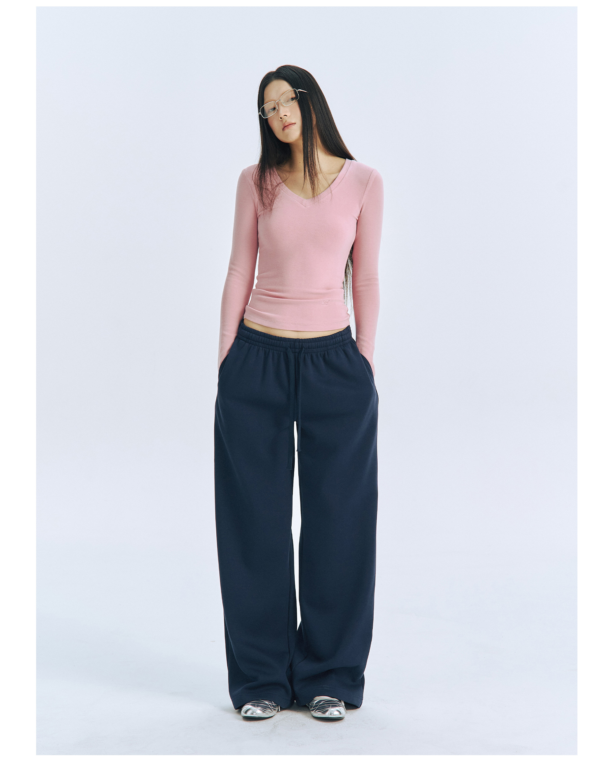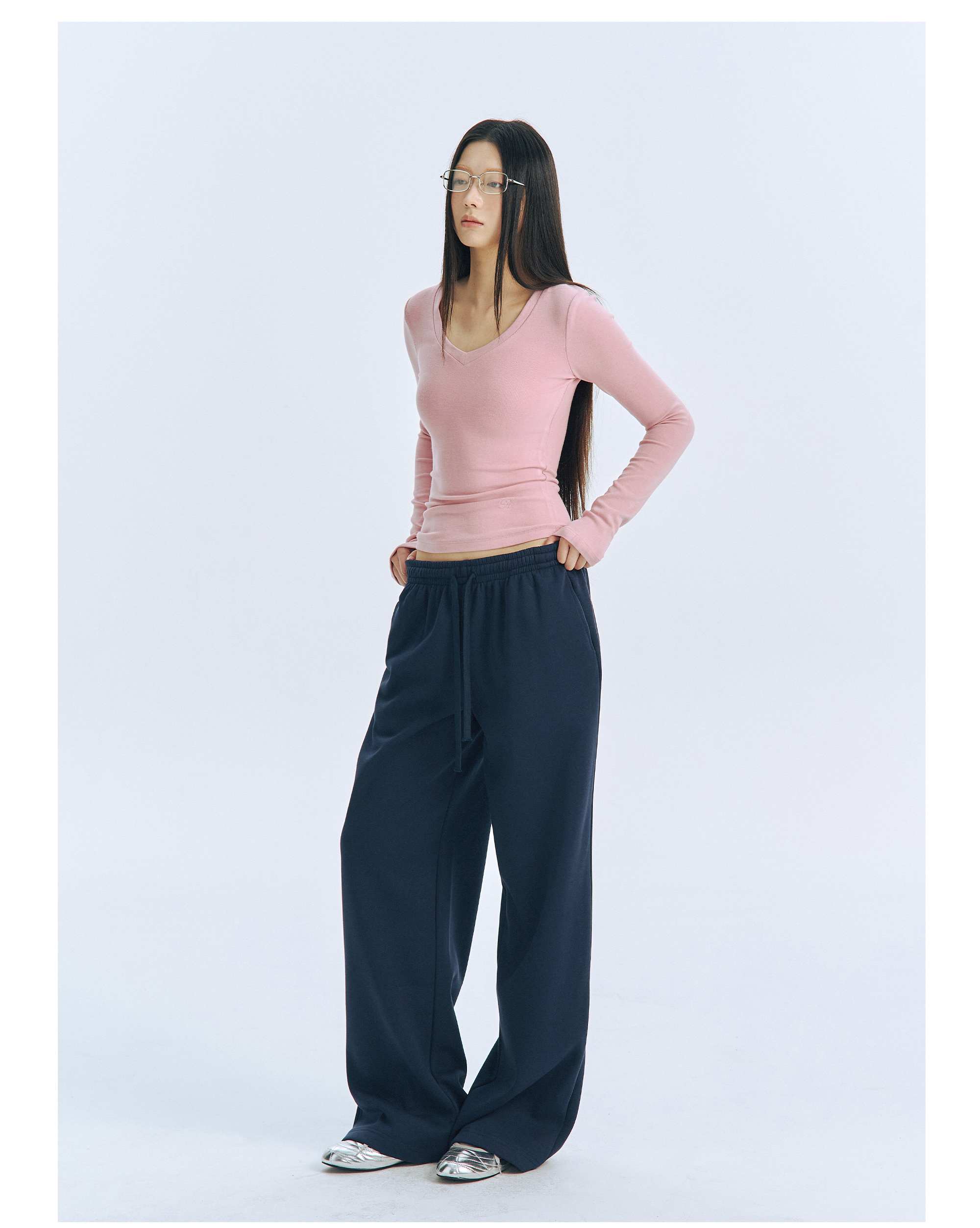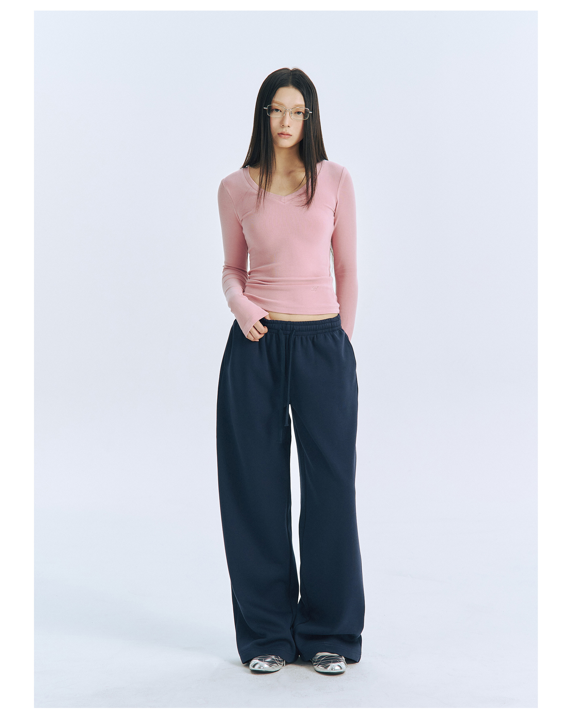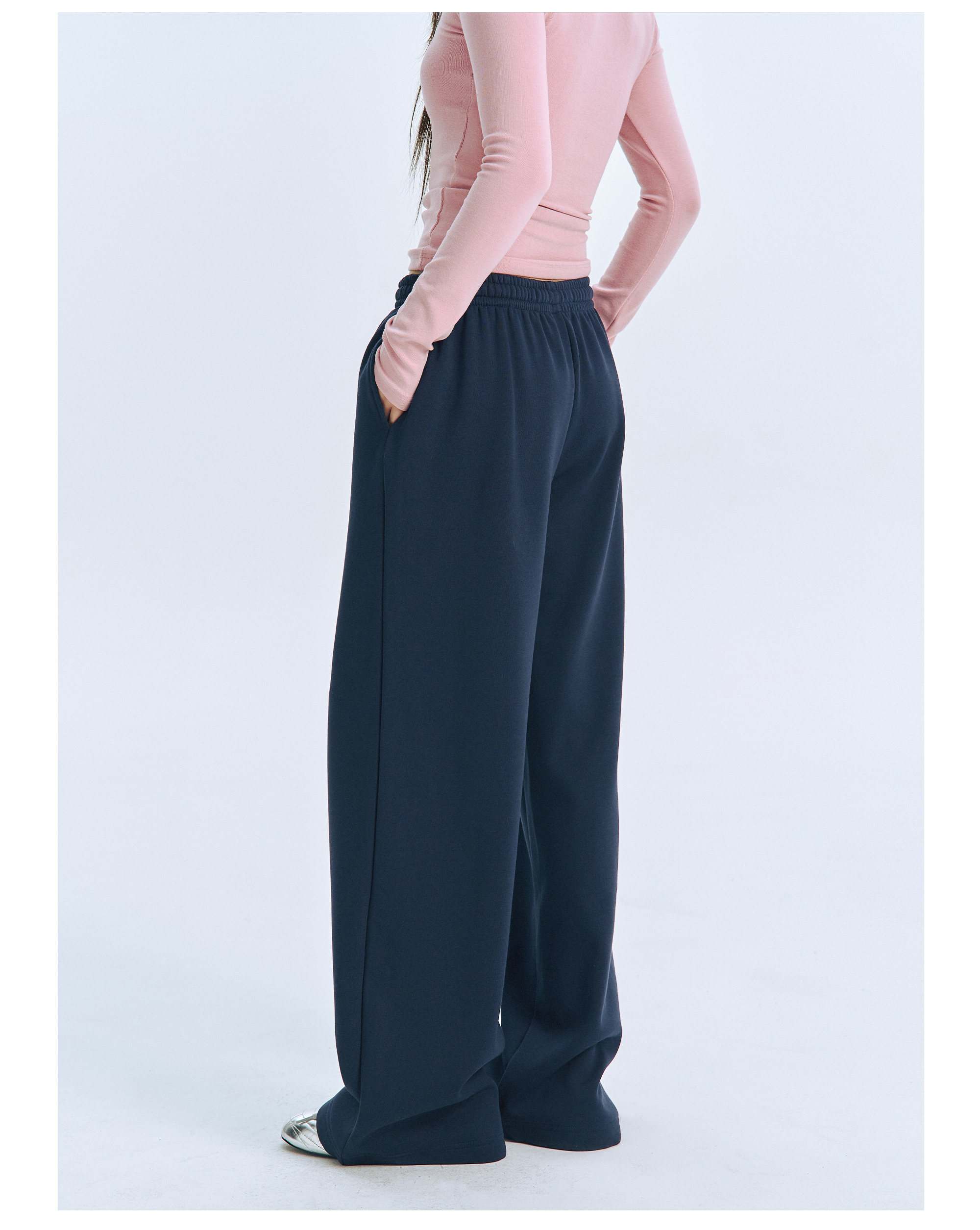 Archivum Navy Blue Versatile Low-Waist Thin Fleece Drawstring Straight-Leg Casual Lazy Walking Sports Sweatpants Long Pants
