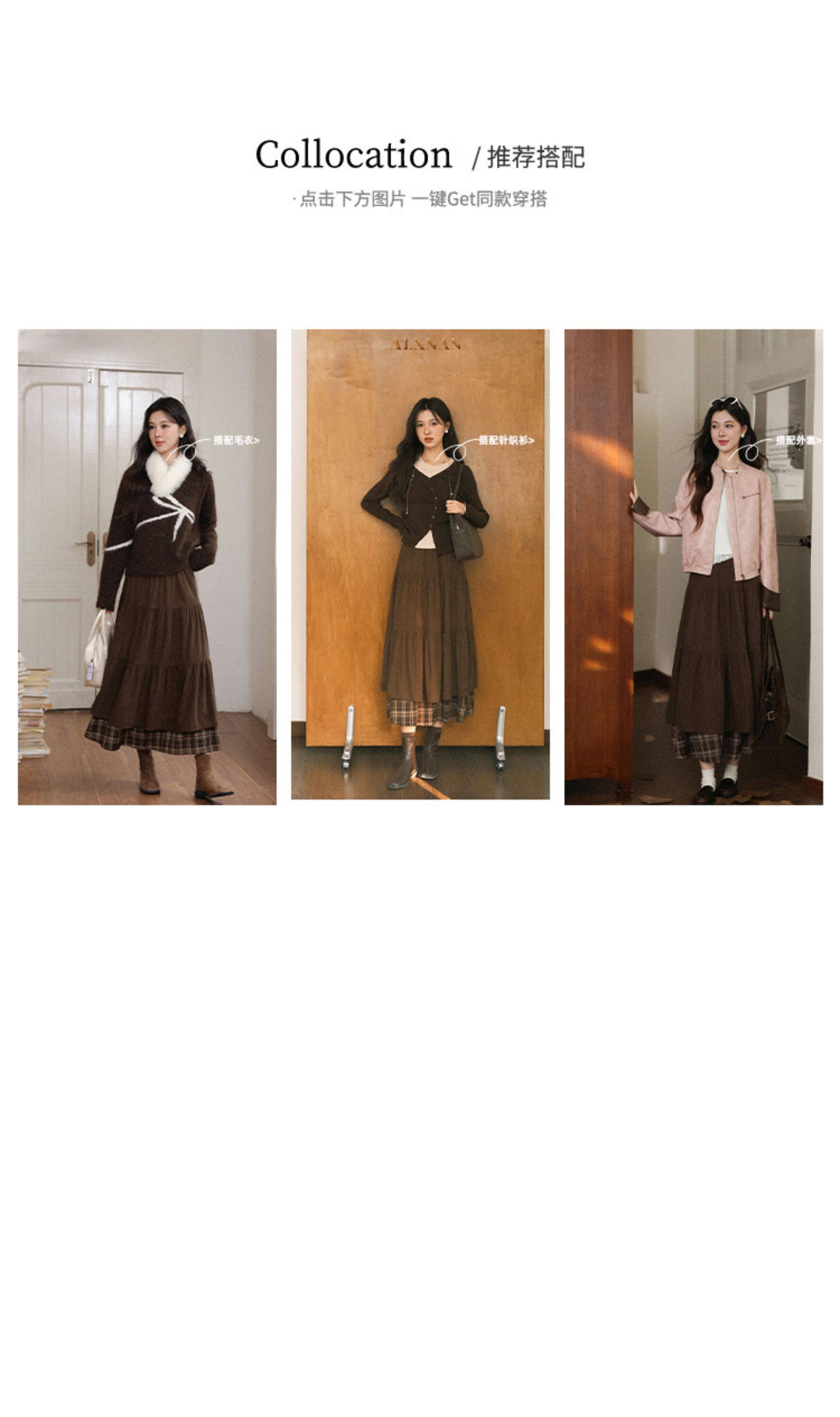 Lu Xiangnan's "Brown Coffee Soft Chapter" Melard Coffee Color Patchwork Plaid Long Skirt for Women, Spring Berkeley Skirt