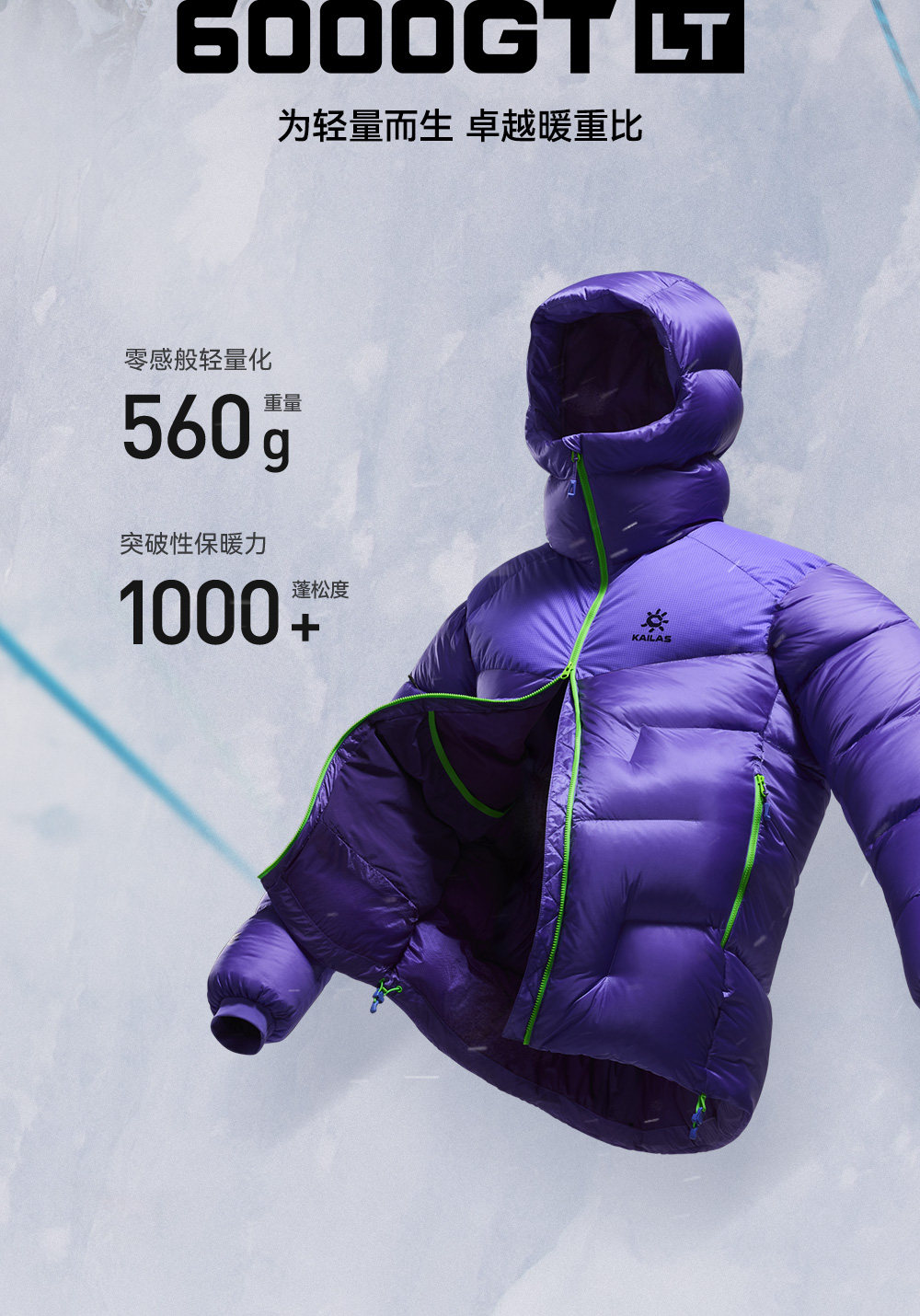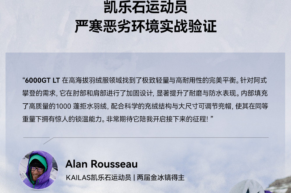 Kailas 6000Gt Lt down Jacket 1000 Fill Power Water-Repellent Goose down Lightweight Warm for Mountaineering and Hiking