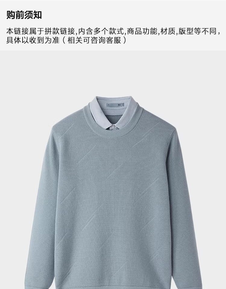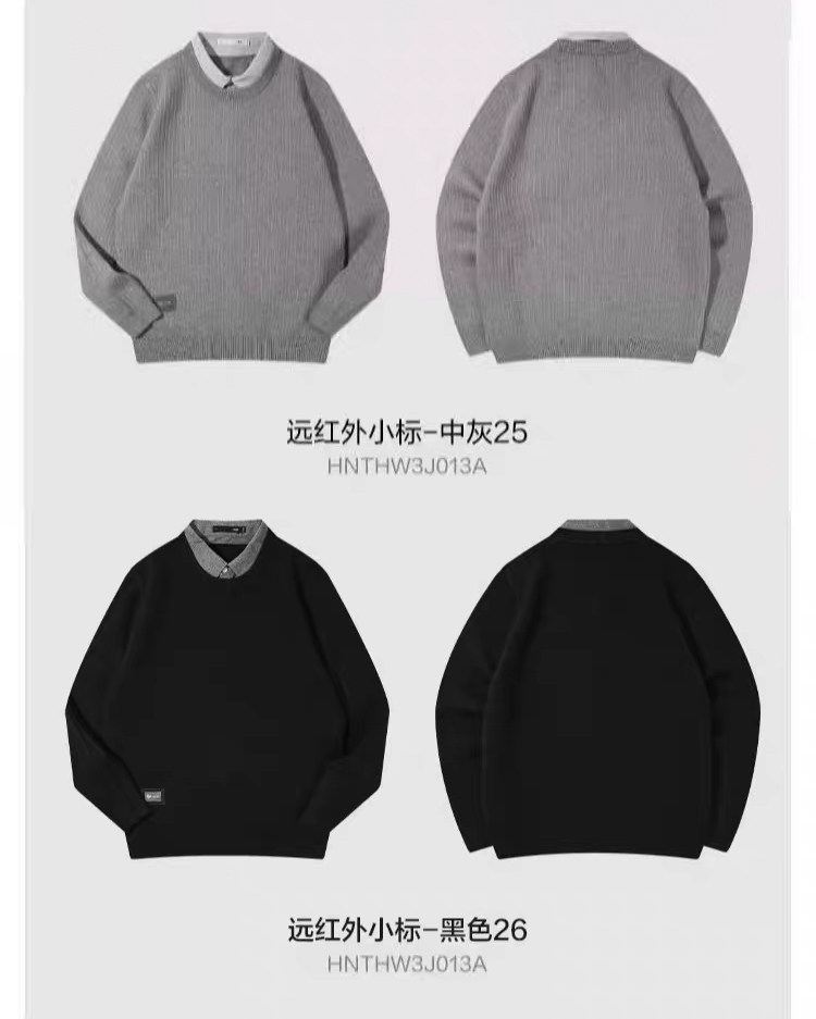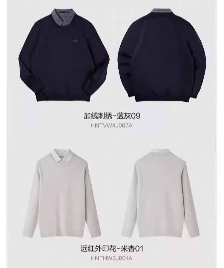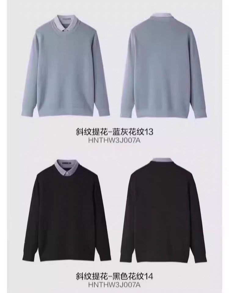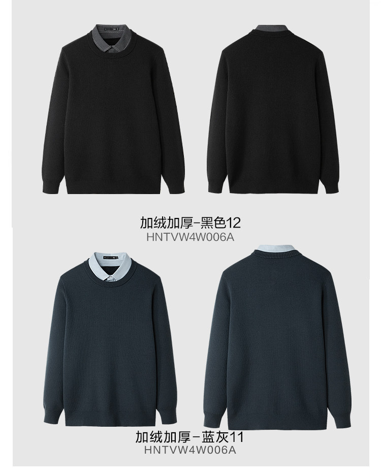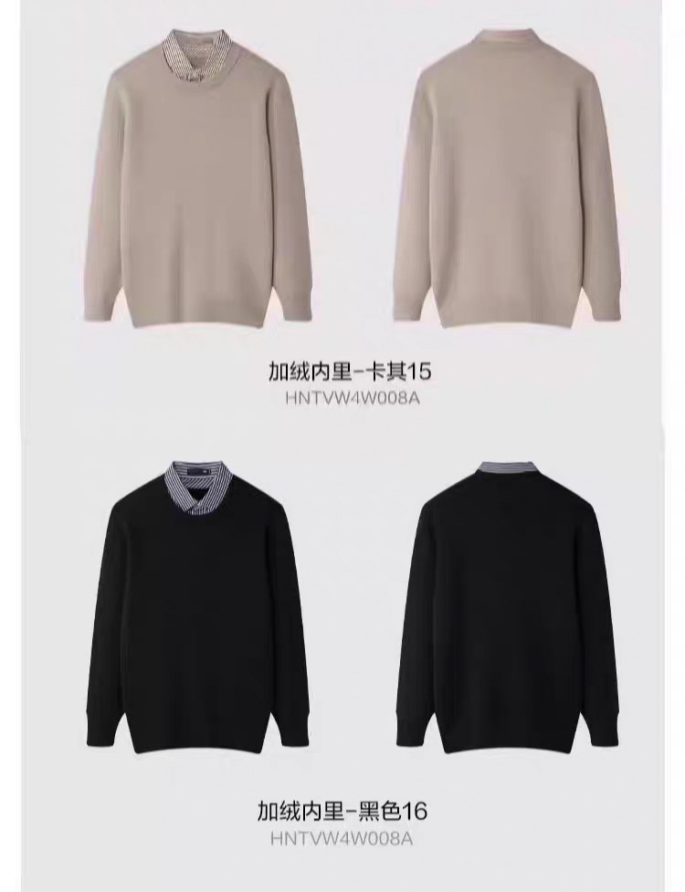 Hla/Hailan Home Light Business Style Fleece-Lined Double Collar Knit Sweater 25 Autumn/Winter New Jacquard Fake Two-Piece Thick Sweater for Men