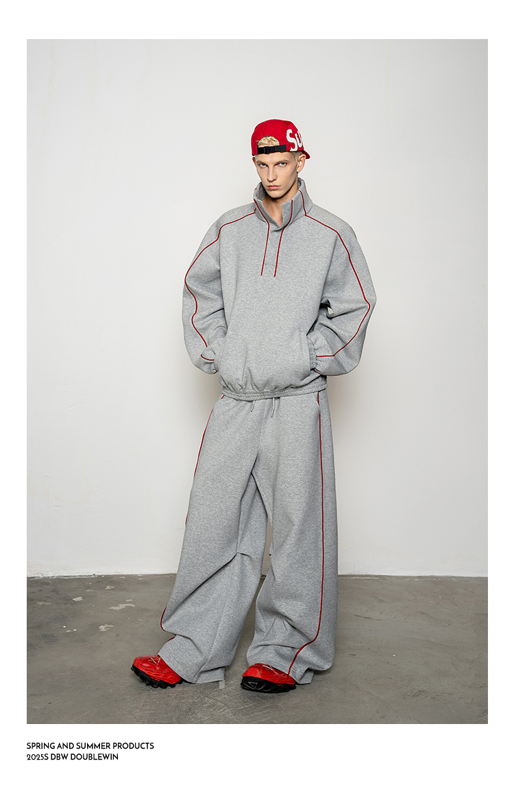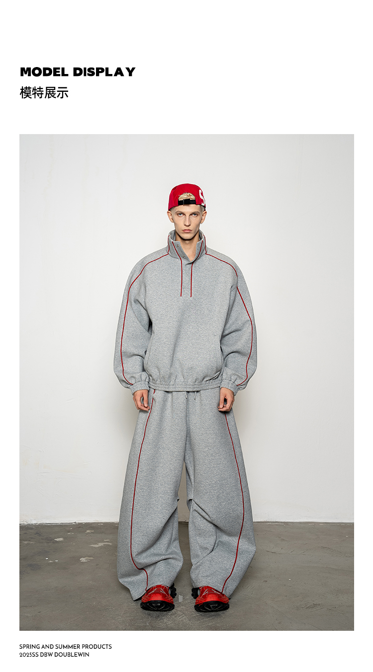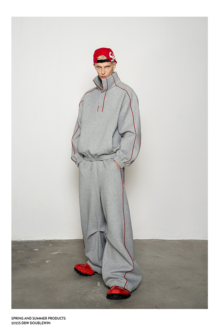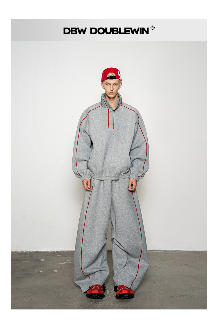 Dbw Doublewin Niche Deconstructed Color-Blocked Air Layer Turtleneck Sweatshirt Men's Scimitar Casual Pants Sports Suit
