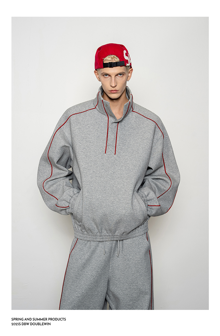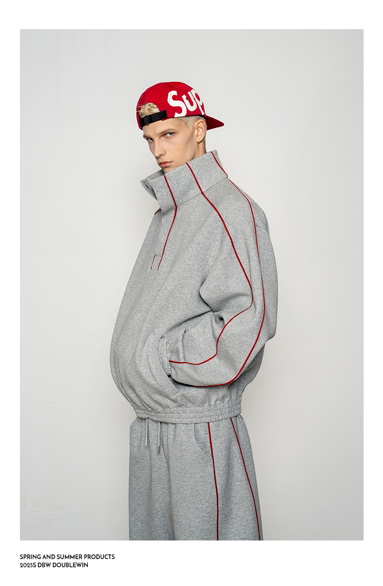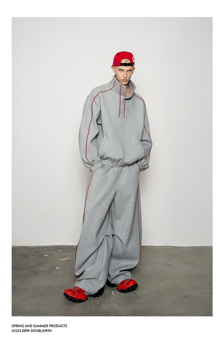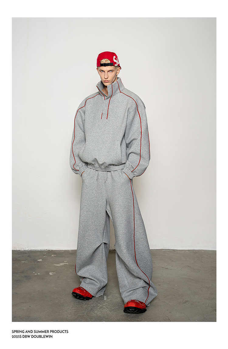Dbw Doublewin Niche Deconstructed Color-Blocked Air Layer Turtleneck Sweatshirt Men's Scimitar Casual Pants Sports Suit