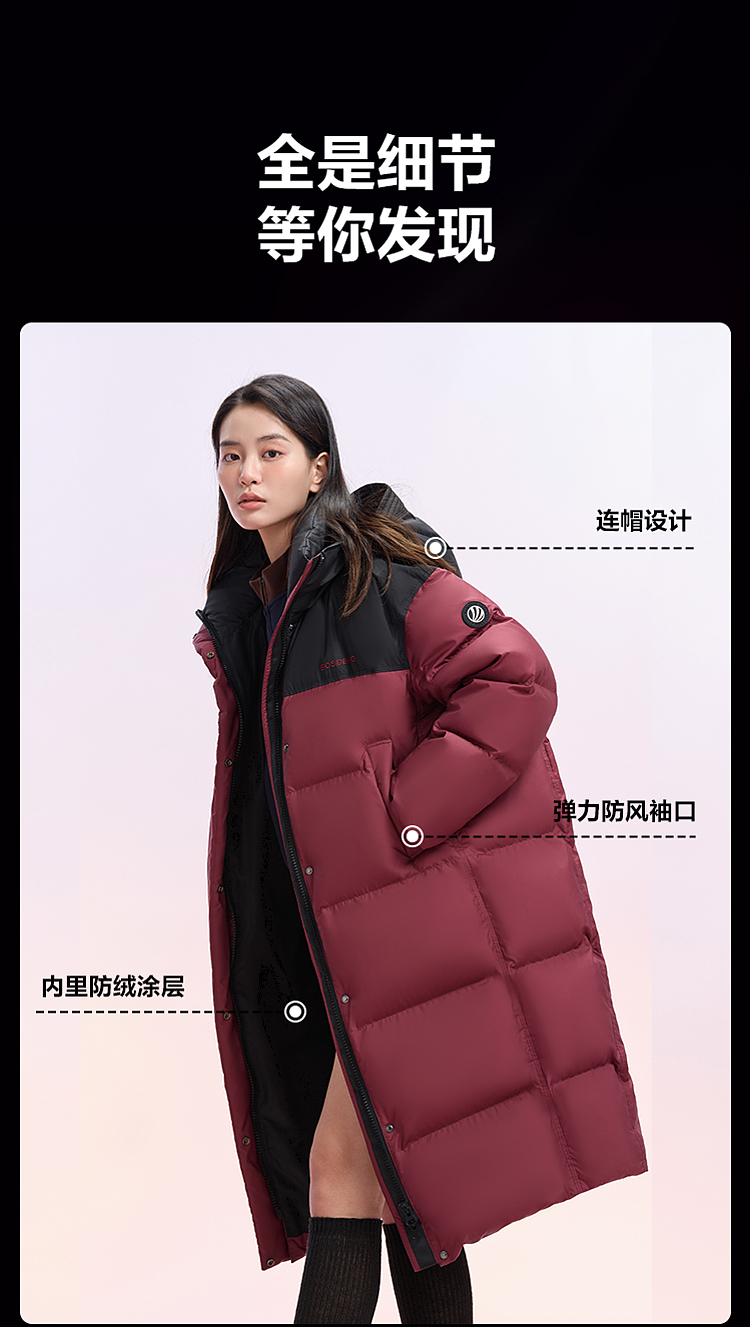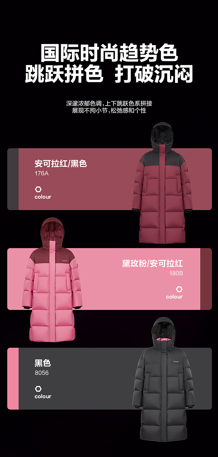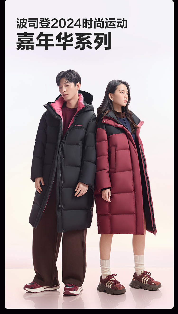 Bosideng Winter Fashion Sports Unisex Color-Blocked Mid-Length Thickened Warm down Jacket