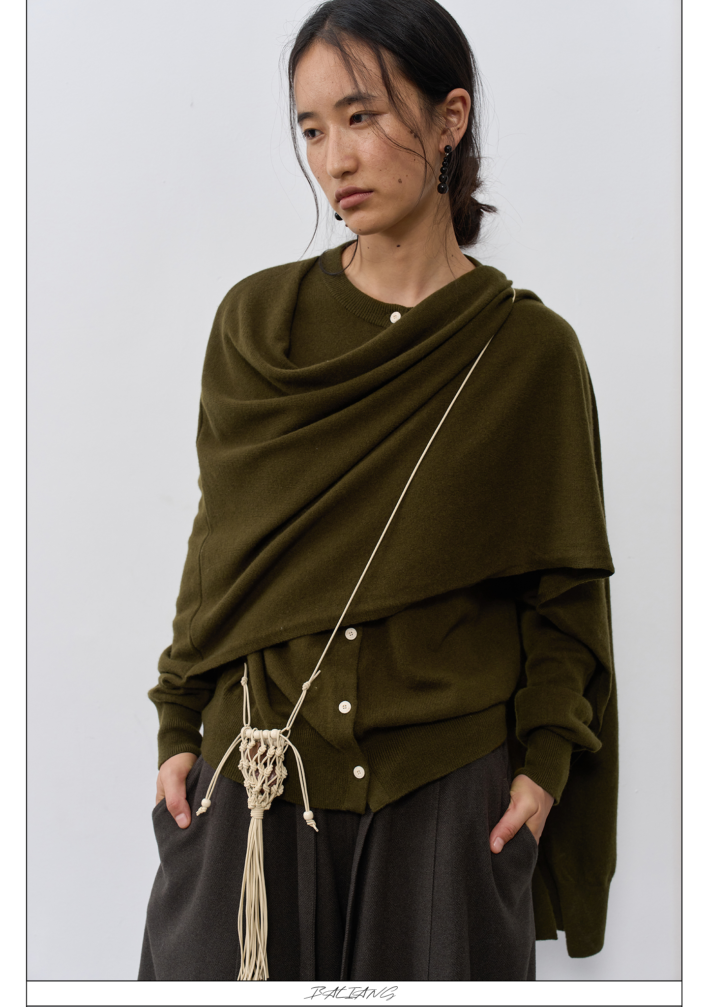 Baliang'Eight Liang''Tent' Merino Wool Wrapable Knitted Shawl Cardigan Sweater