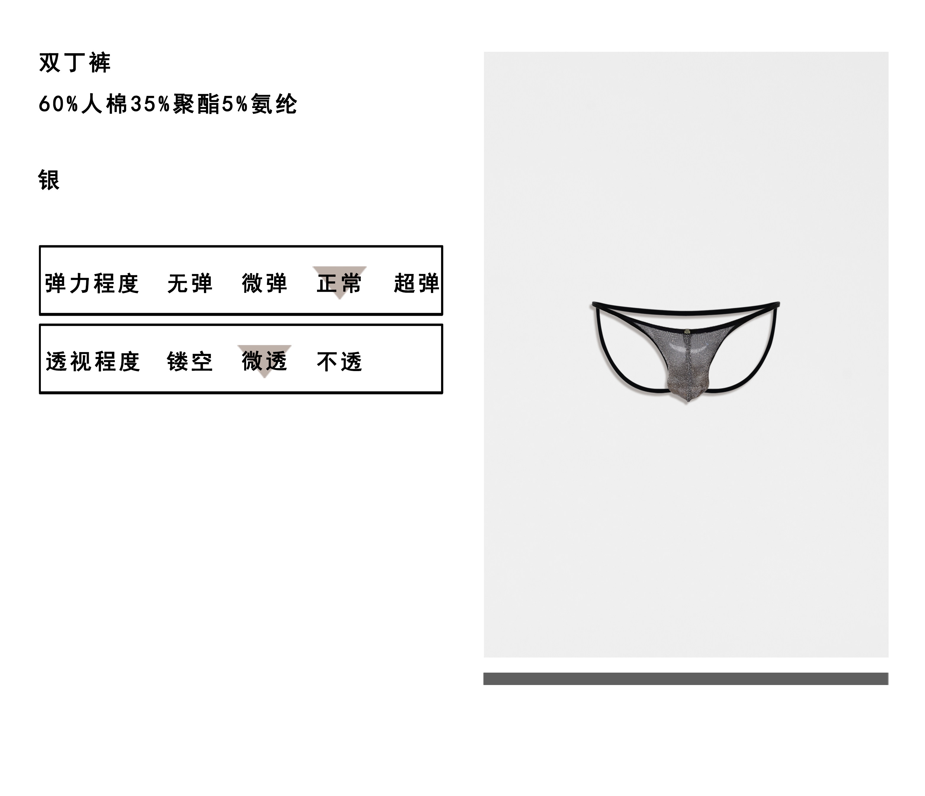 Original Love Lock Armor Ultra-Transparent Metallic Silver Low-Rise Double Thong Underwear, Love Comfort Color Designer Style 25 New Men's