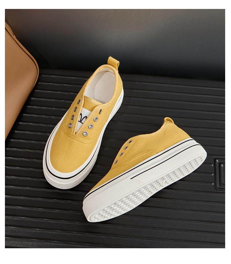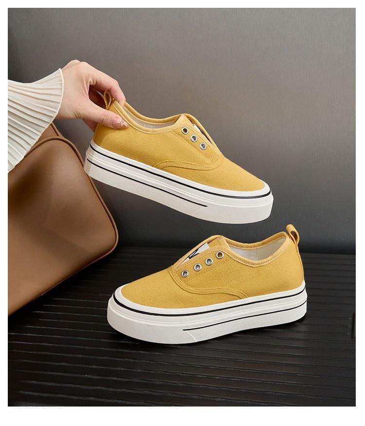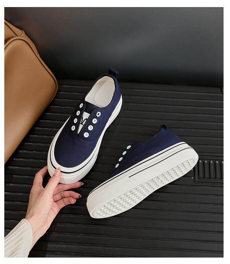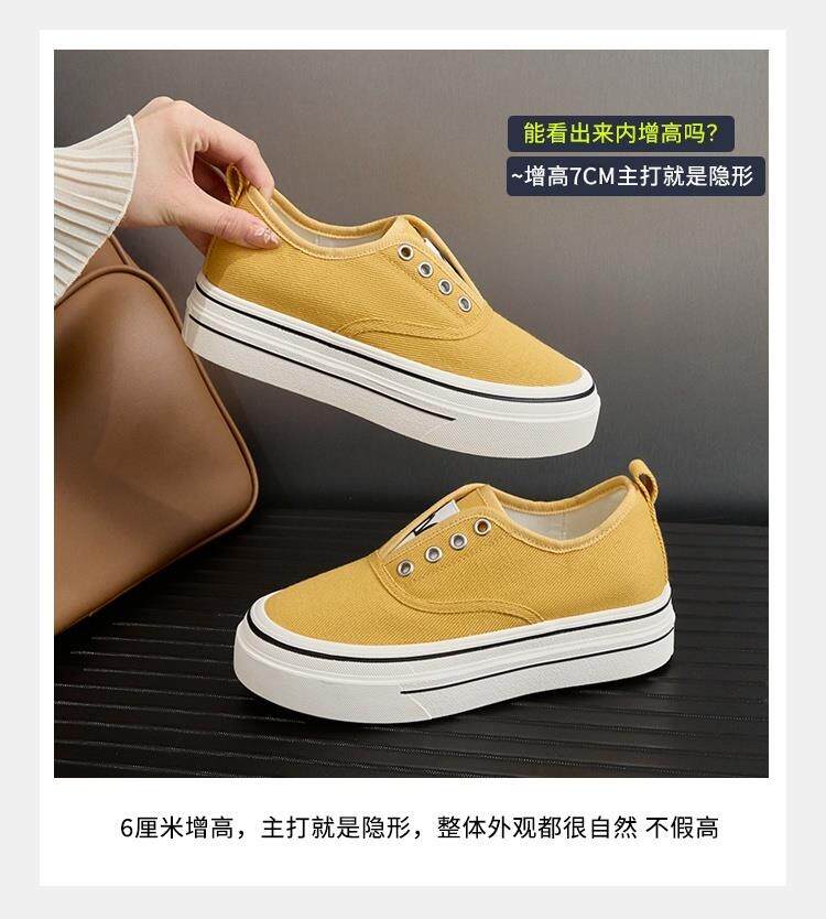 Height Increase of 7cm~ Thick-Soled Inner Height-Increasing Slip-On Canvas Shoes for Women 2026 New Style Lazy Shoes for Petite People Casual Sneakers