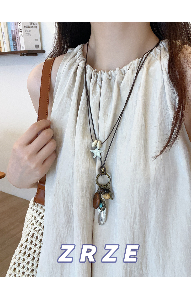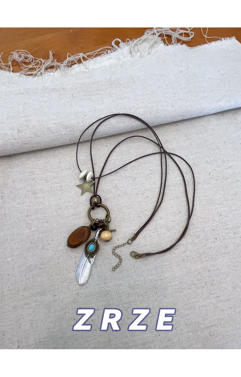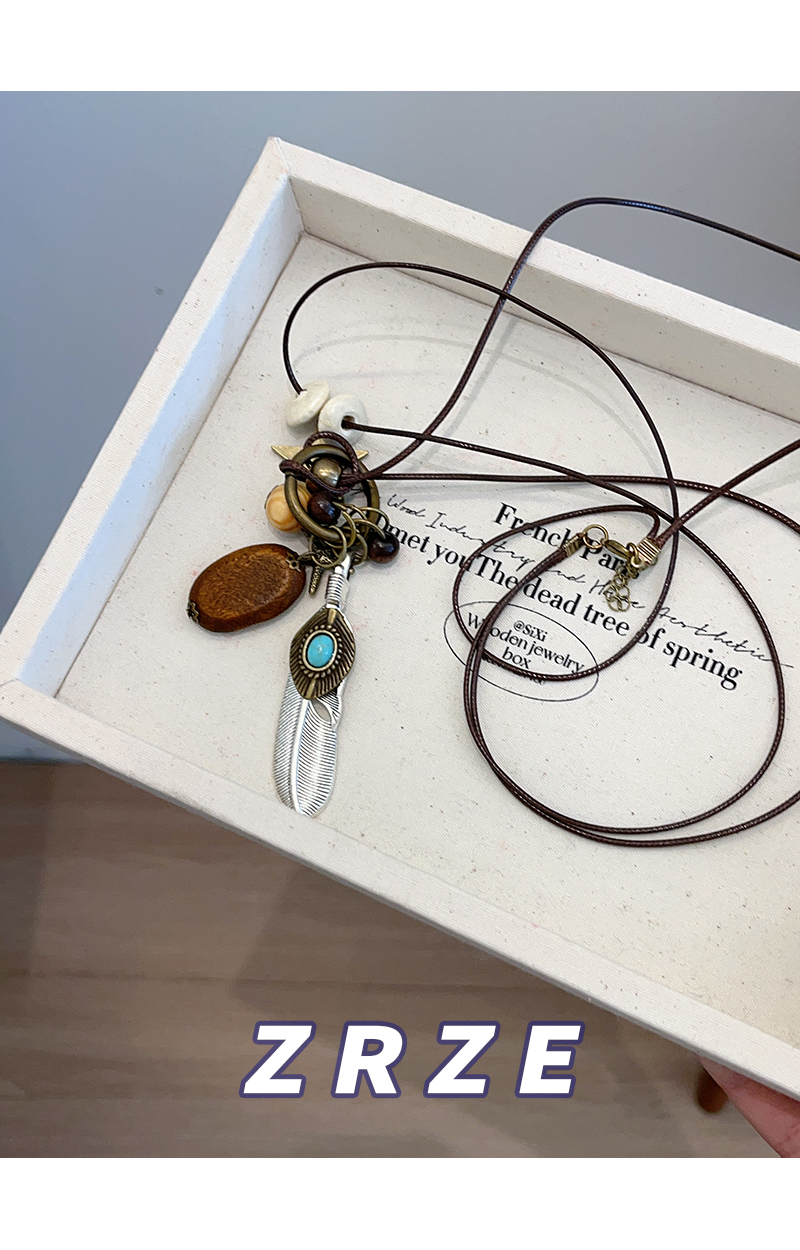 Zrze New Chinese Zen Style Long Feather Necklace for Women Vintage Ethnic Bohemian Pendant Accessories Sweater Chain