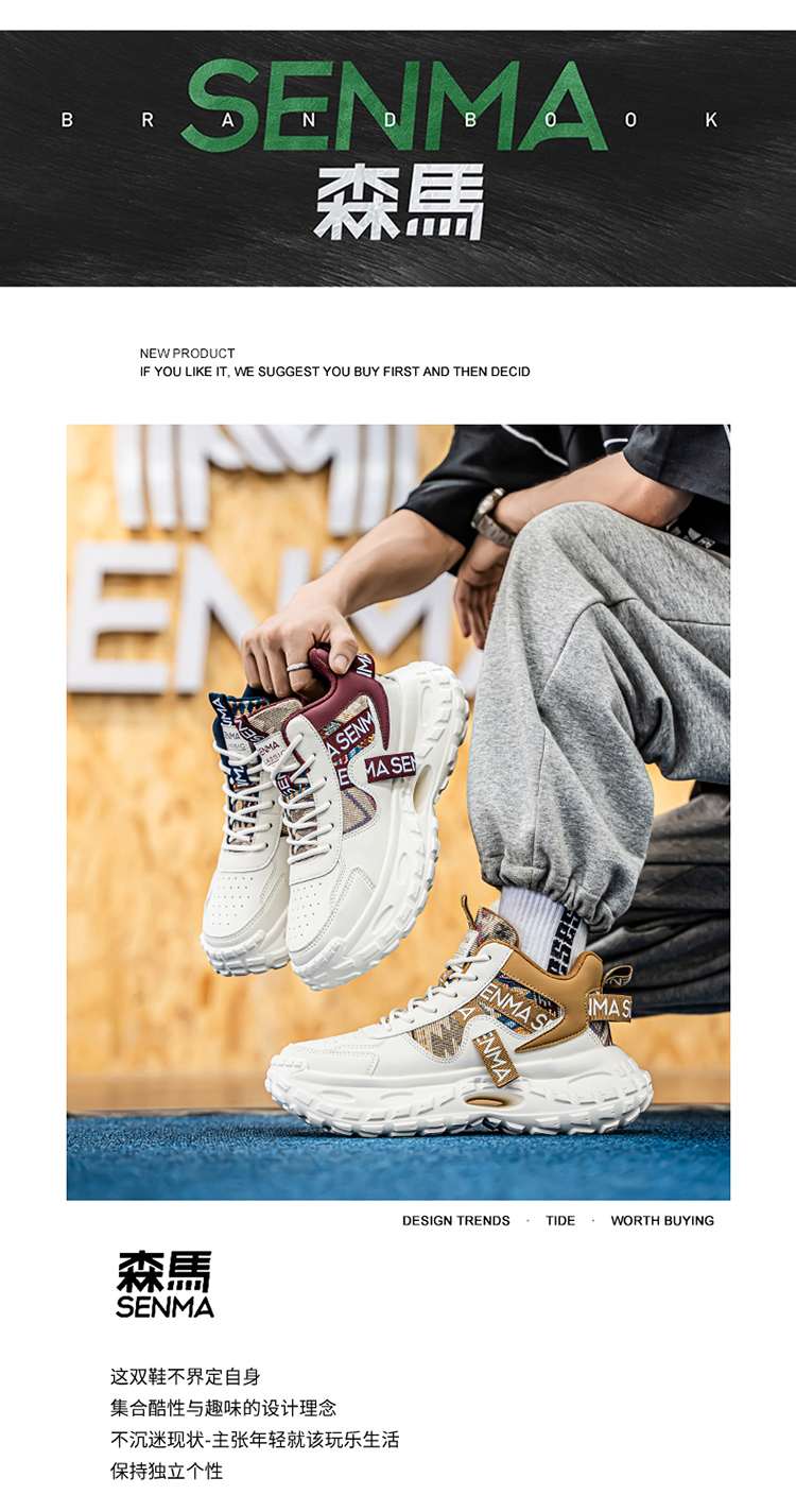 Semir Men's Sneakers 2025 Autumn New Korean Style Trendy Tire Sole Height-Increasing Casual High-Top Dad Shoes