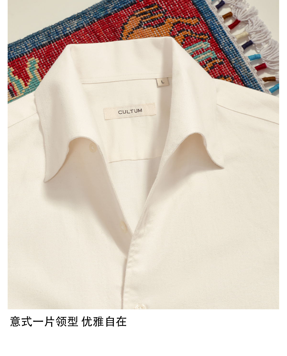 【100% Xinjiang Long-Staple Cotton Brushed for Warmth】Cultum Italian-Style Casual One-Collar Shirt Men's Long-Sleeve Shirt