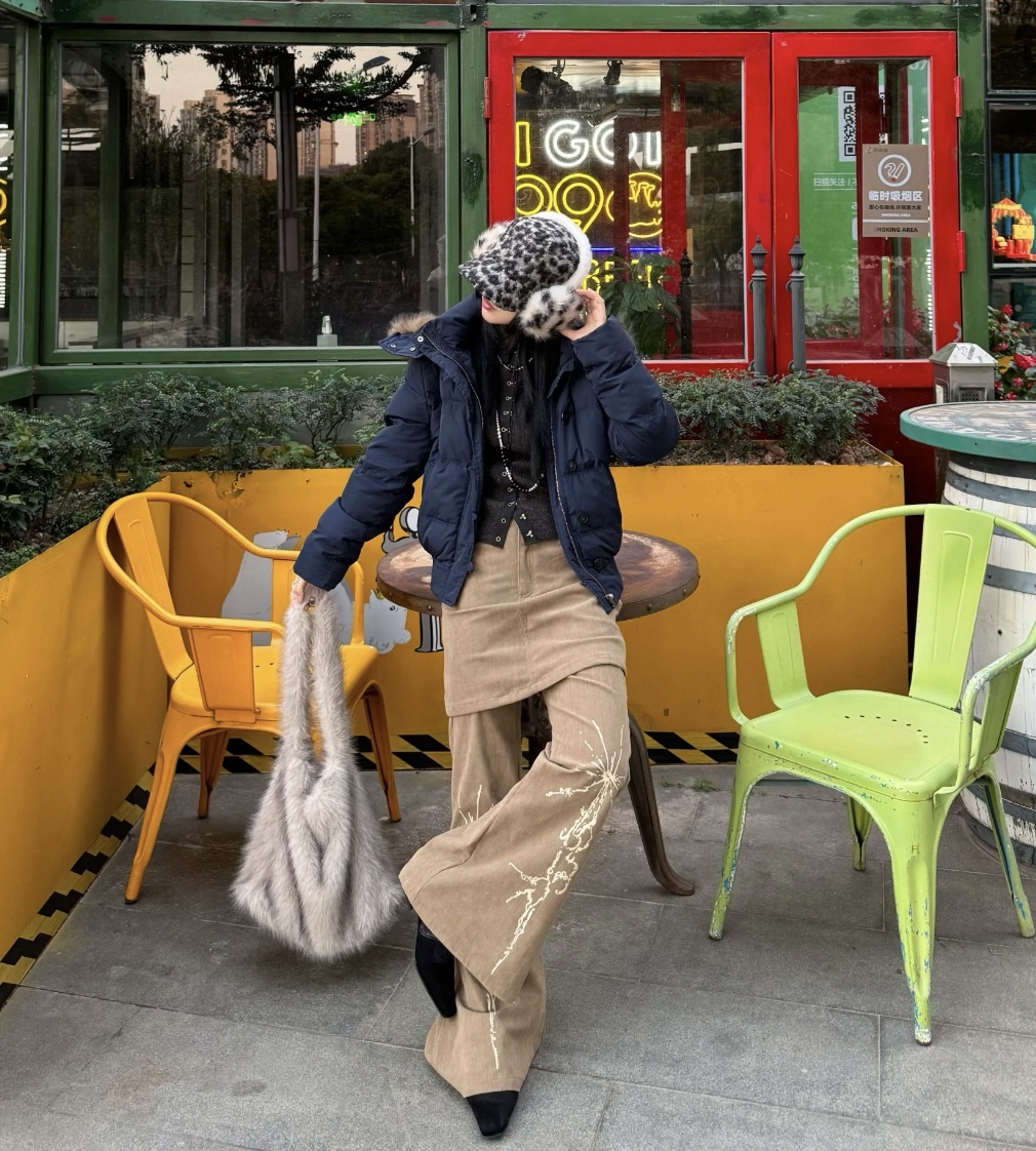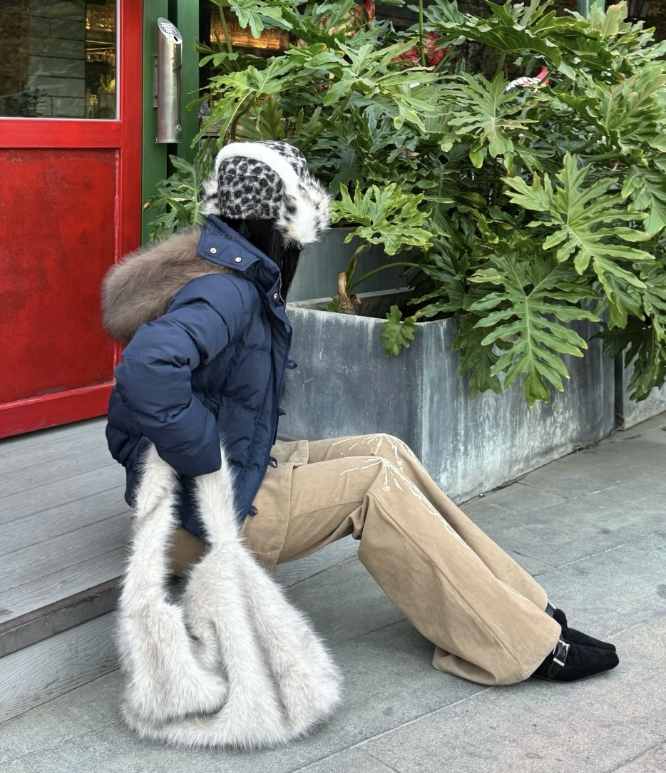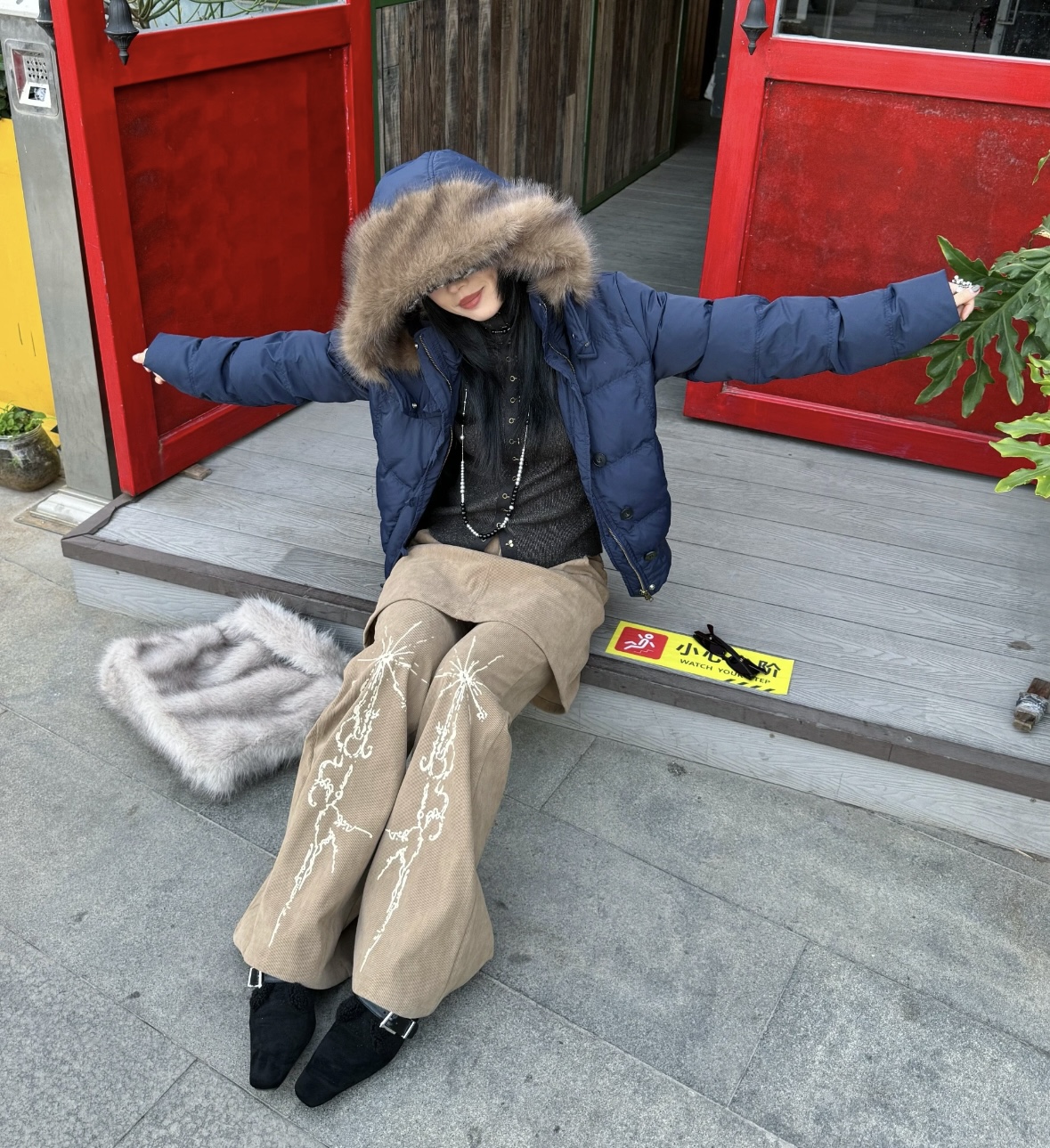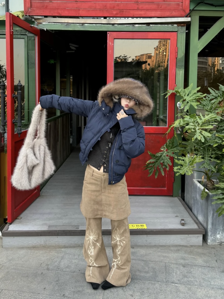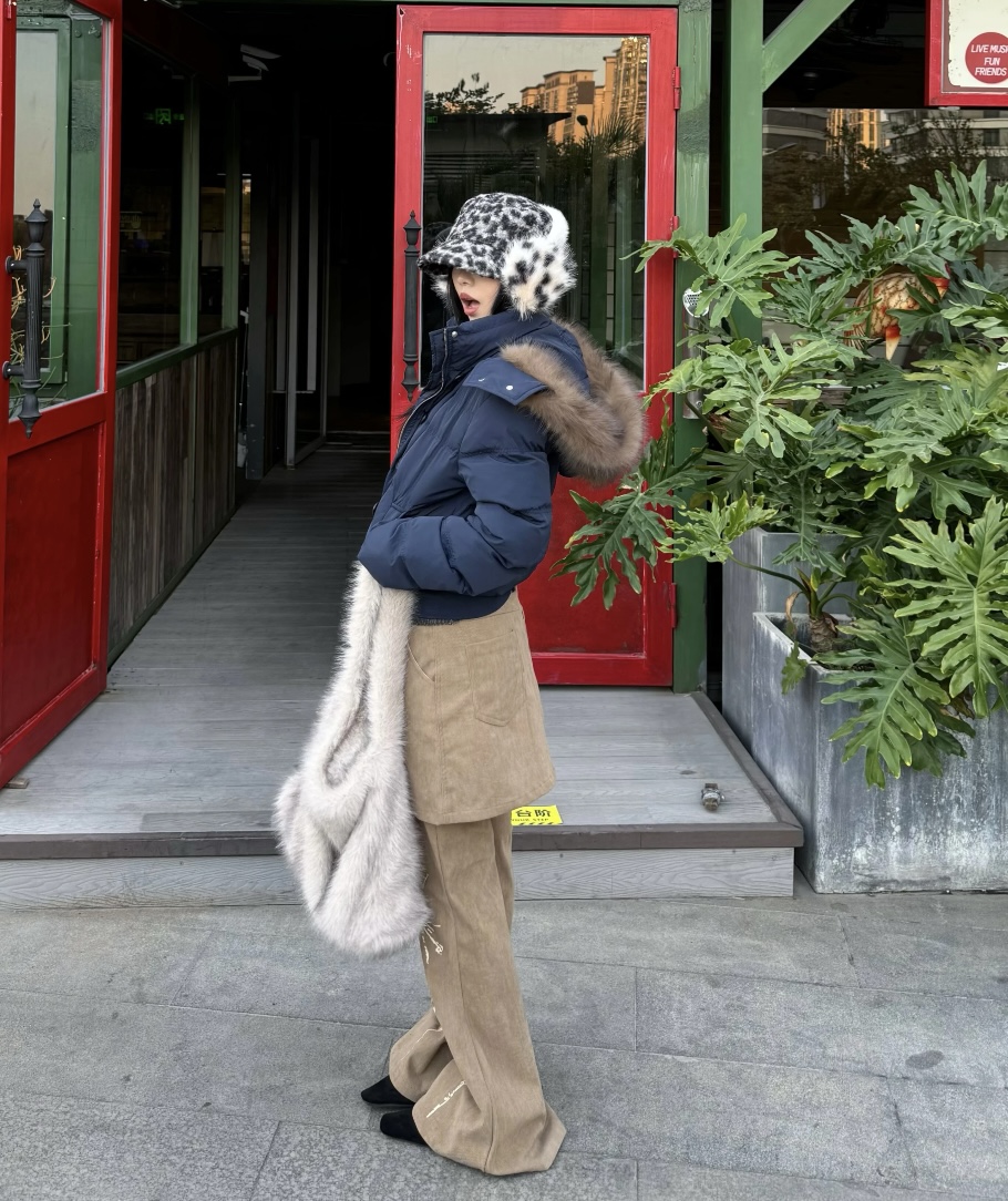 Fiona Navy Blue Short Cotton-Padded Jacket for Petite Women, 2025 Winter New Style, High-End Slimming Thickened Coat