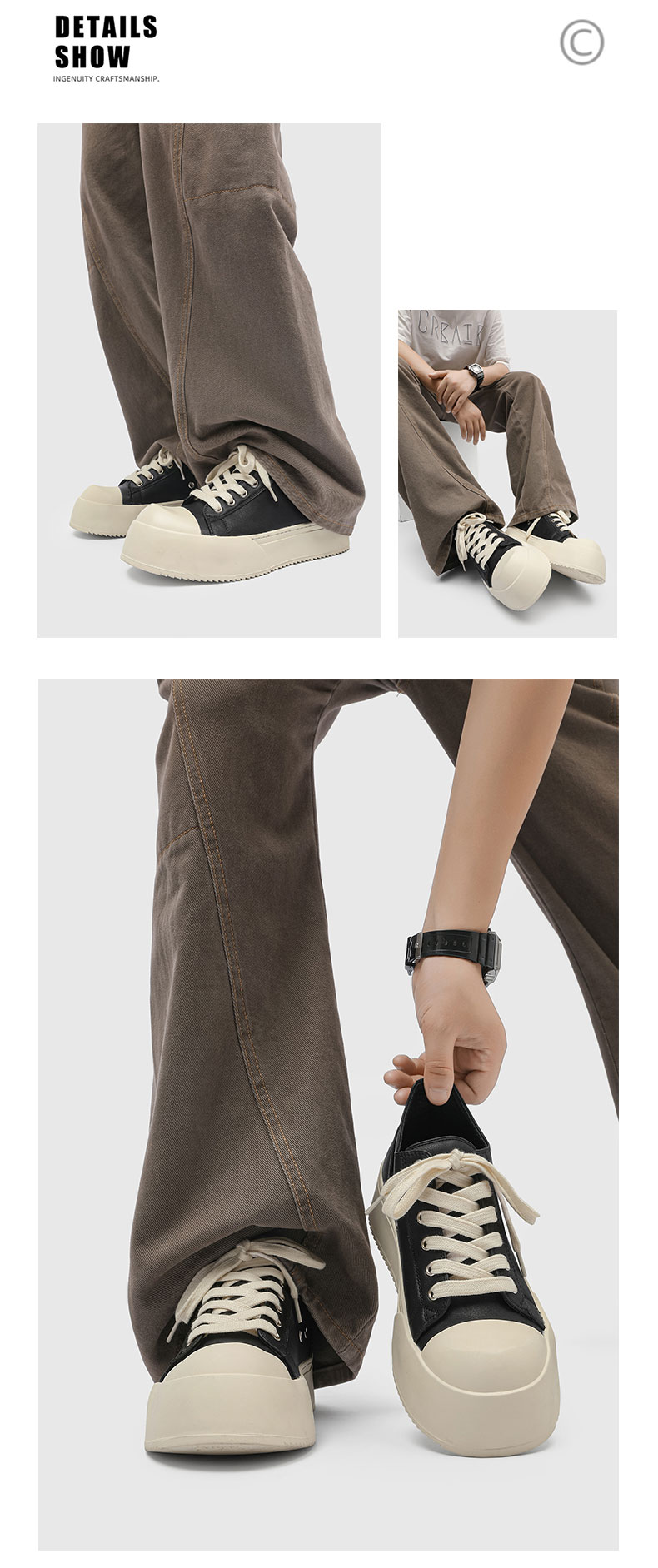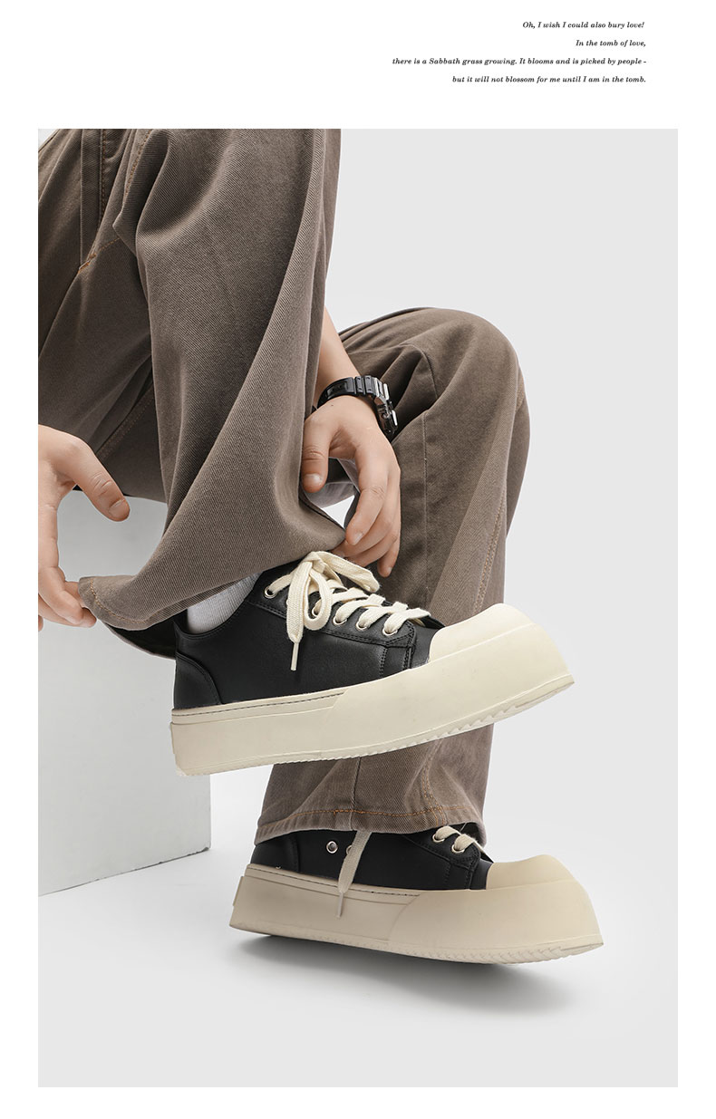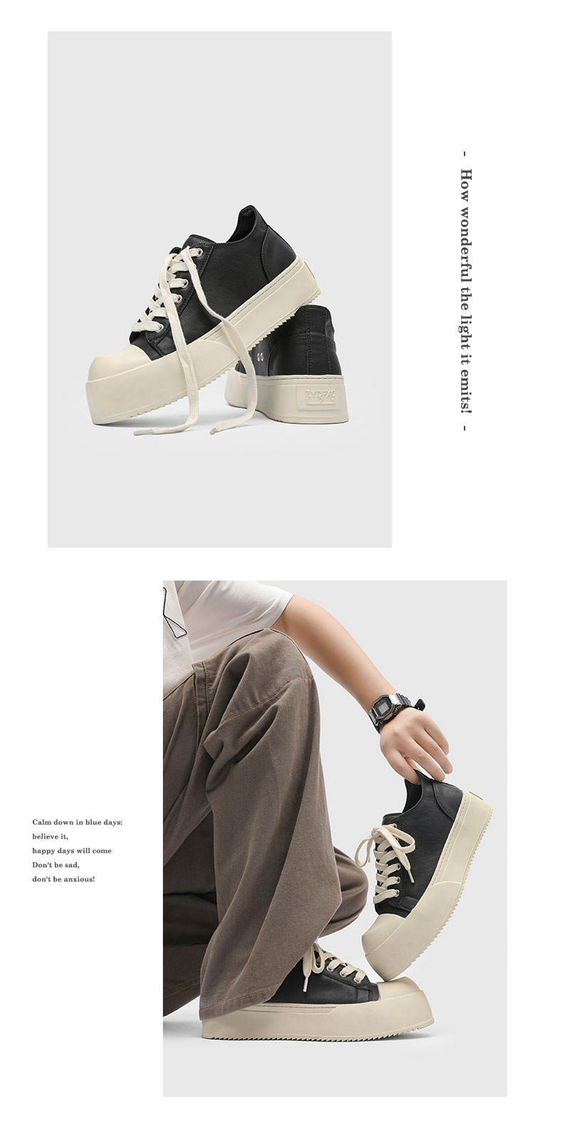 Winter Fleece-Lined Large-Toe Sneakers with a Milky Sole for Men, Invisible Height Increase of 10cm, Thick-Soled Derby Shoes, Trendy Men's Casual Leather Shoes