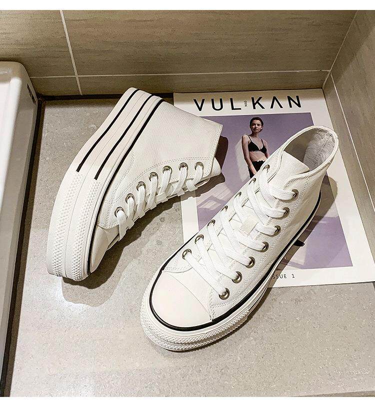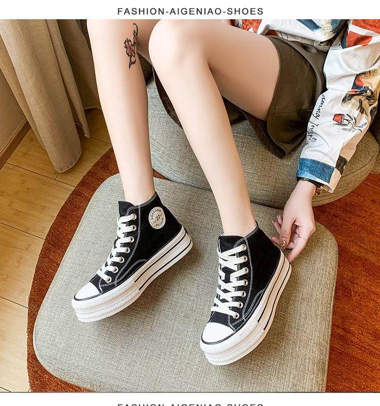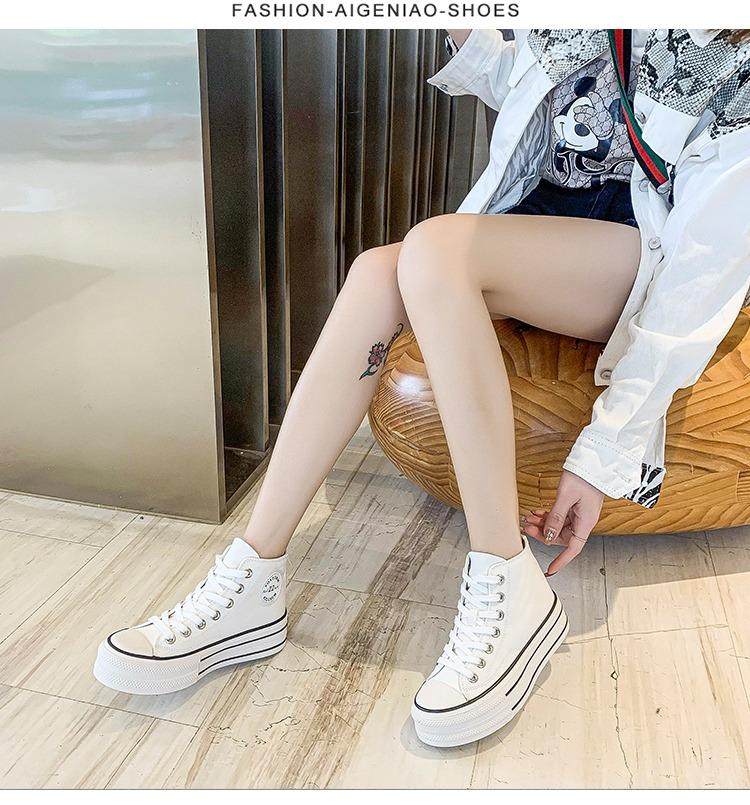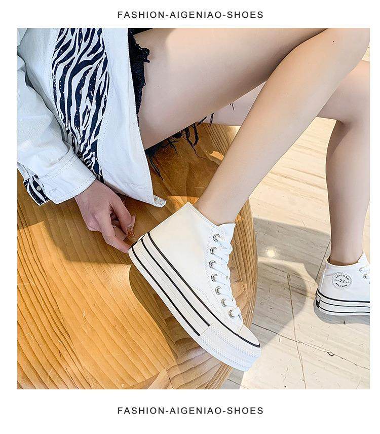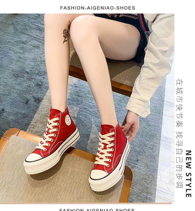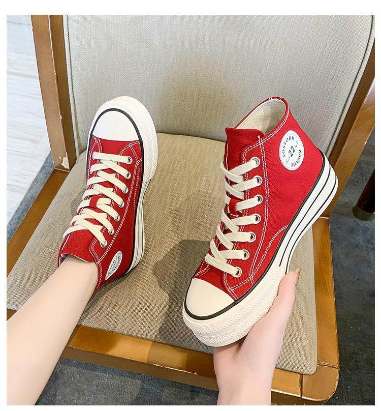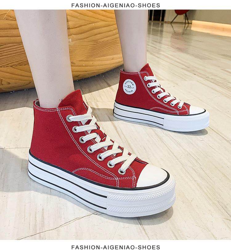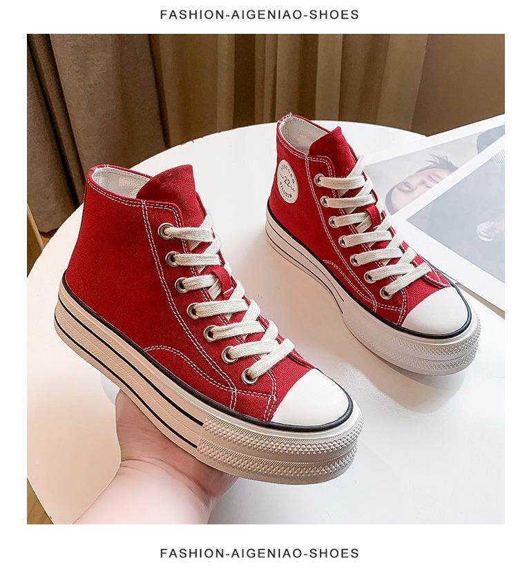 8cm Height Increase~Thick-Soled High-Top Canvas Shoes for Women 2026 New Model for Petite Individuals, Red Casual Shoes with Internal Height Increase