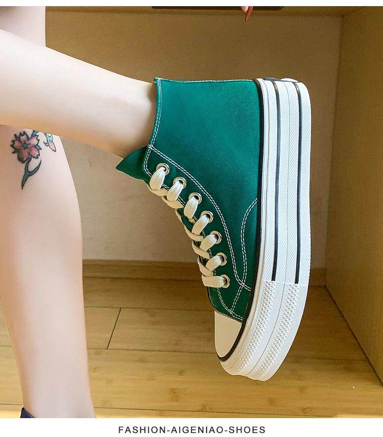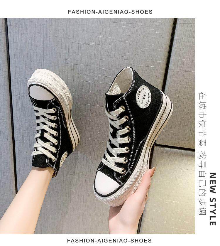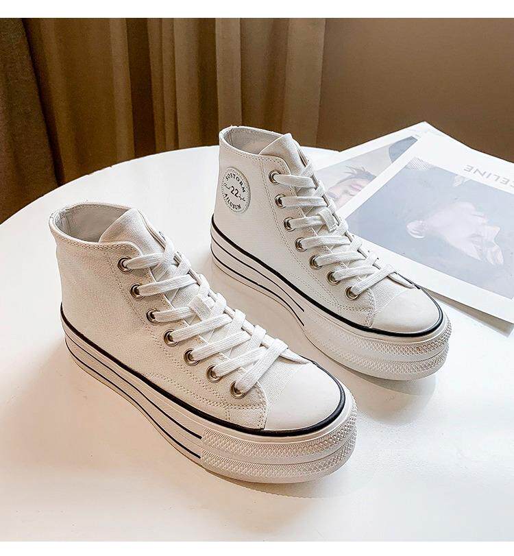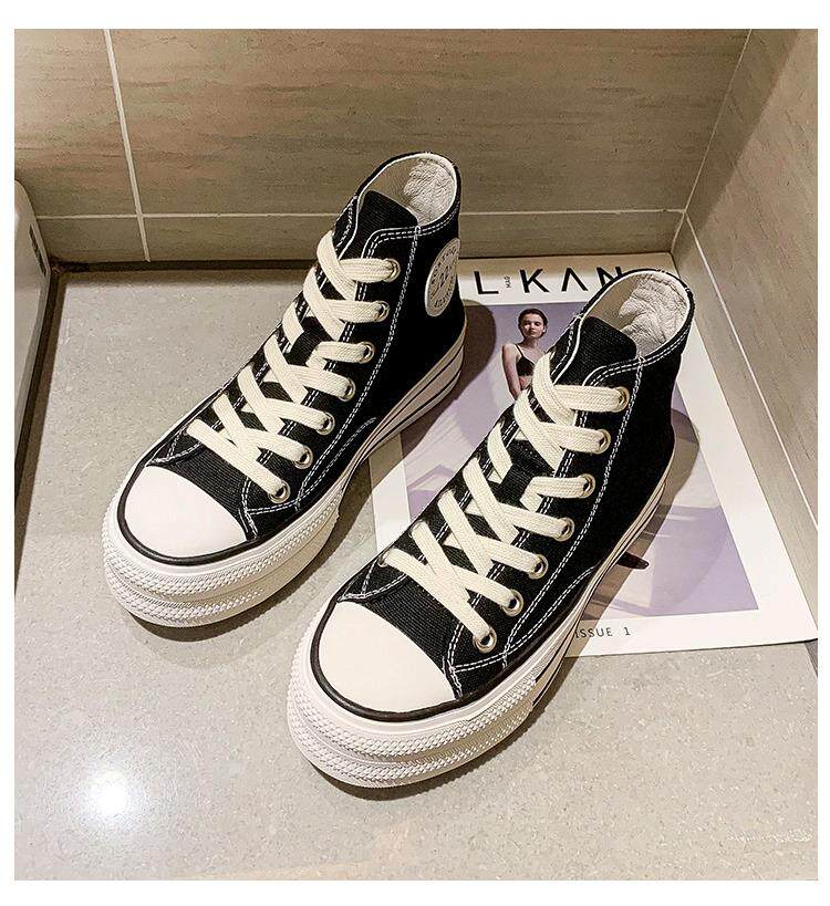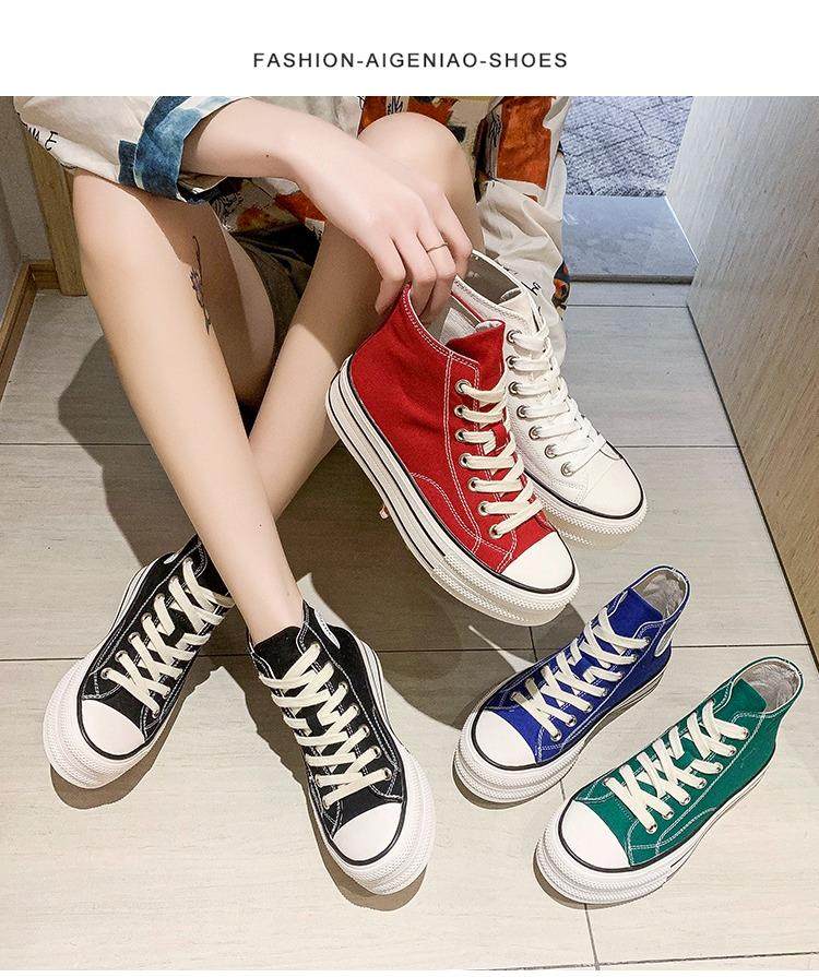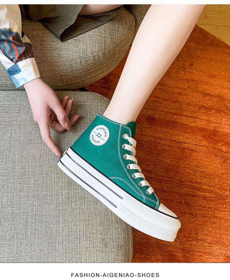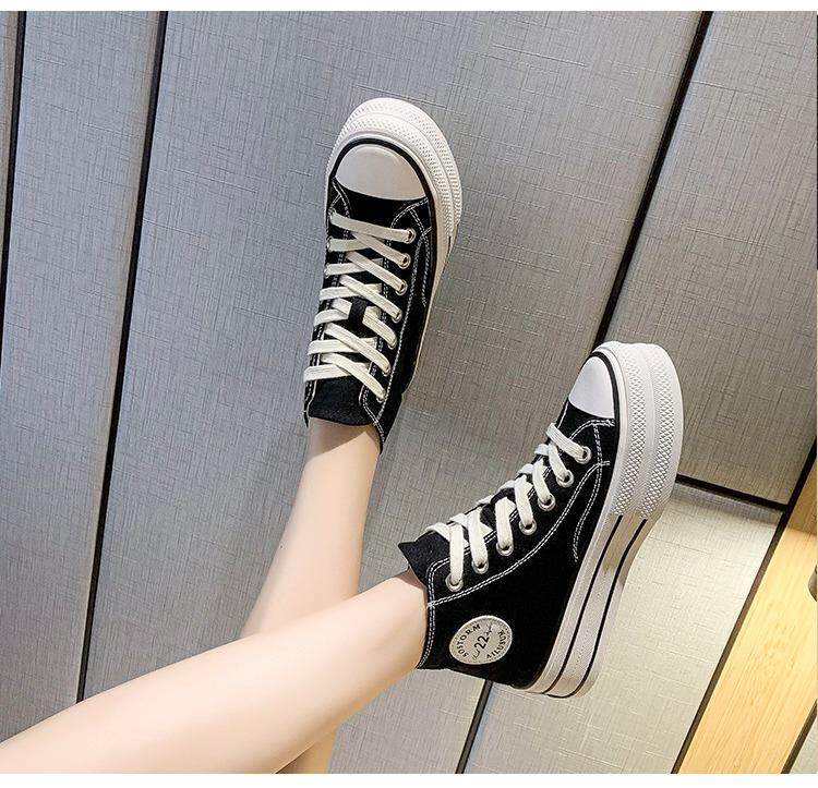 8cm Height Increase~Thick-Soled High-Top Canvas Shoes for Women 2026 New Model for Petite Individuals, Red Casual Shoes with Internal Height Increase